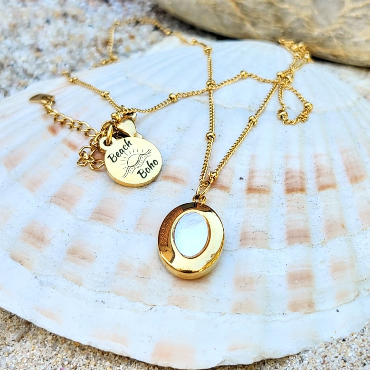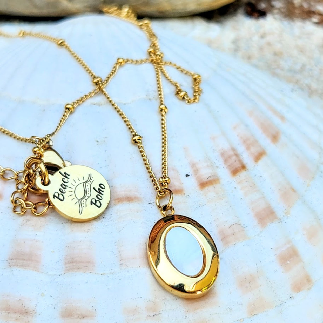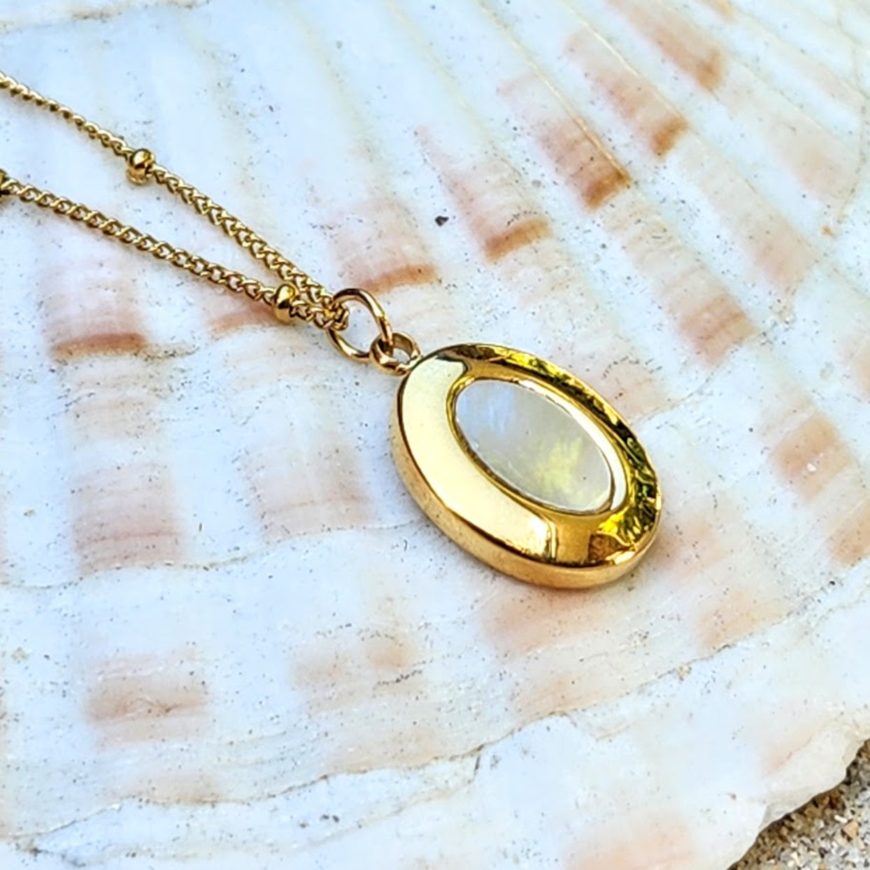 MOTHER OF PEARL - WATERPROOF 18K GOLD SHELL PENDANT NECKLACE