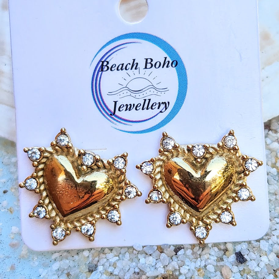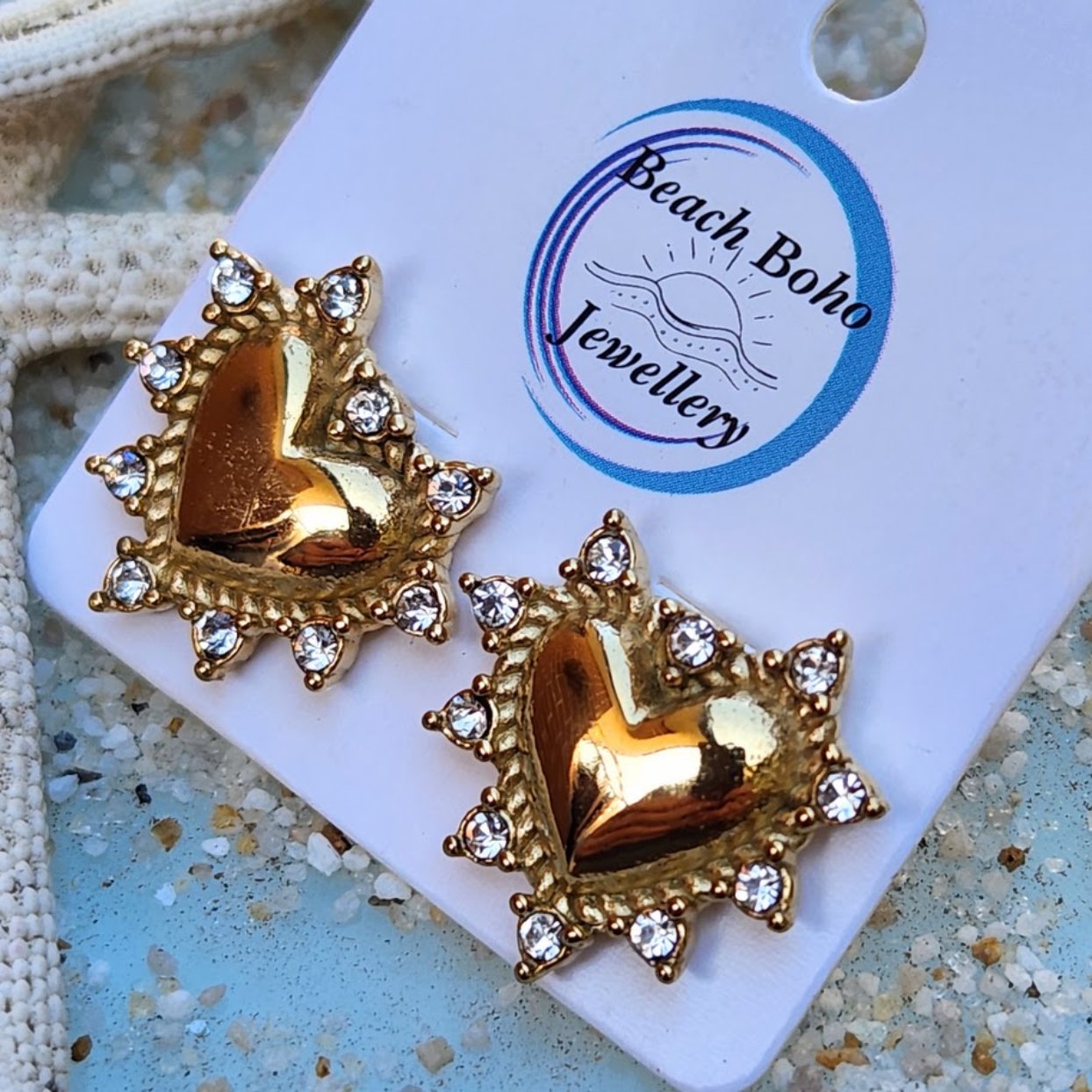 Waterproof Heart Earrings surrounded with stunning Cubic Zirconia 18k Gold Studs made with Titanium Steel Tarnish Resistant Jewellery