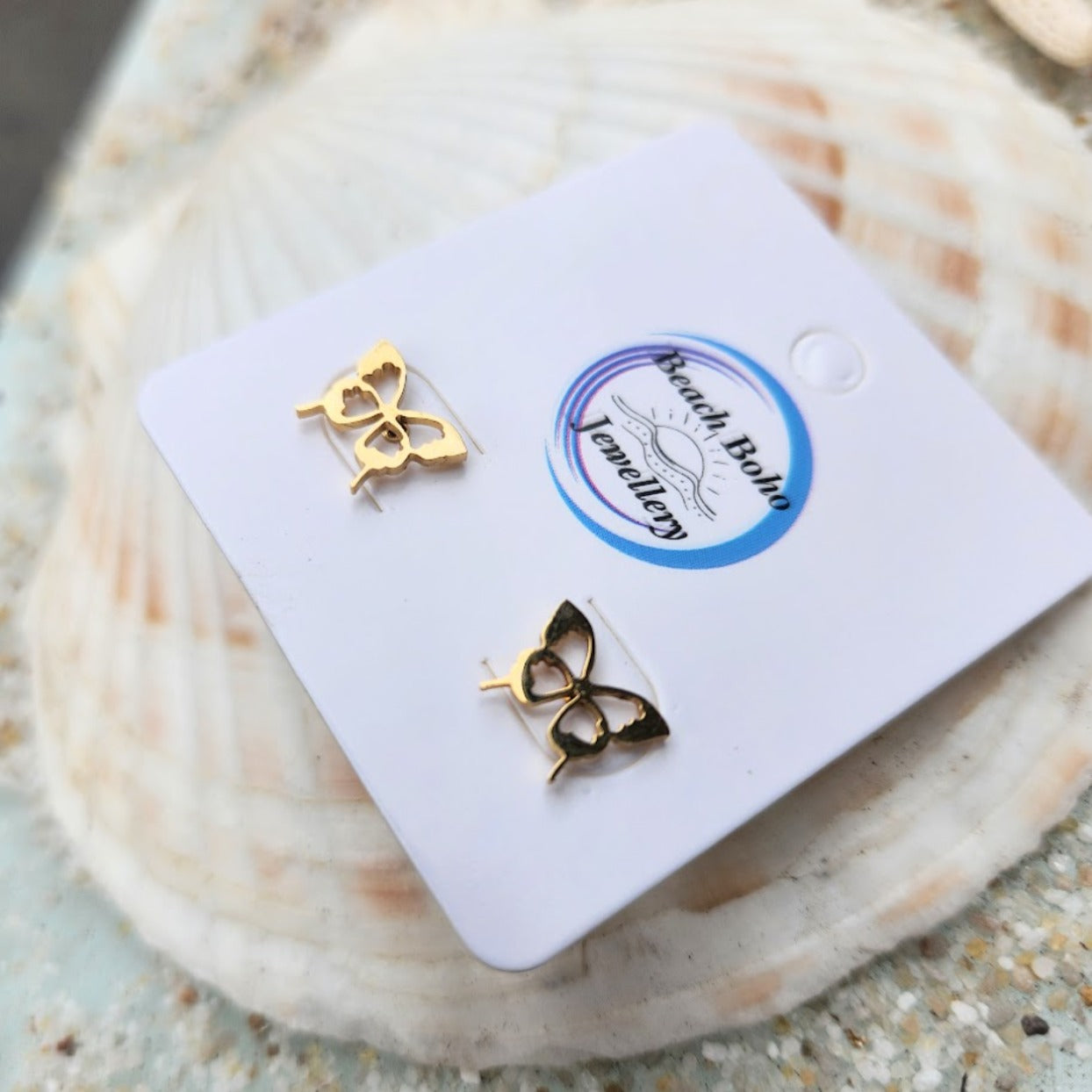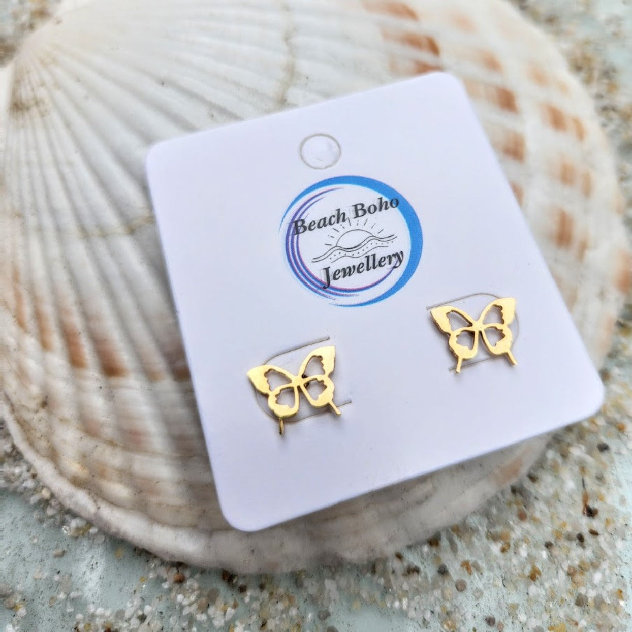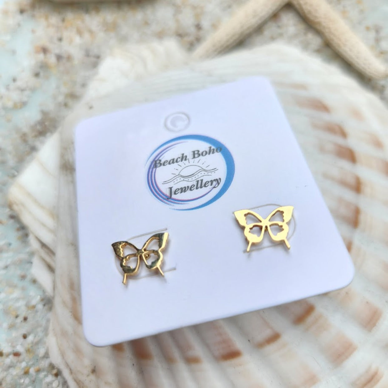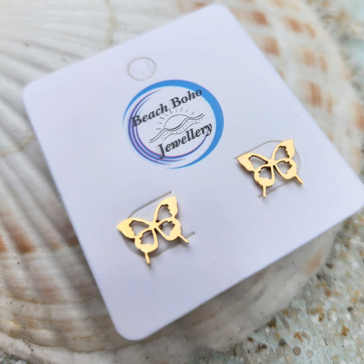 Sweet & Petite...18k Gold Butterfly Stud Earrings made with Titanium Steel Tarnish Resistant Jewellery 10 mm width