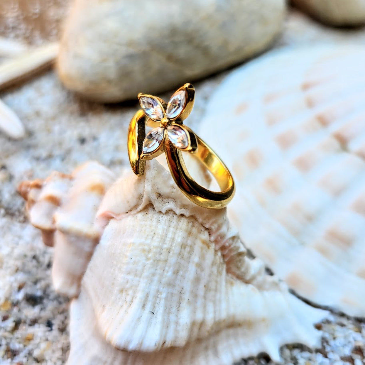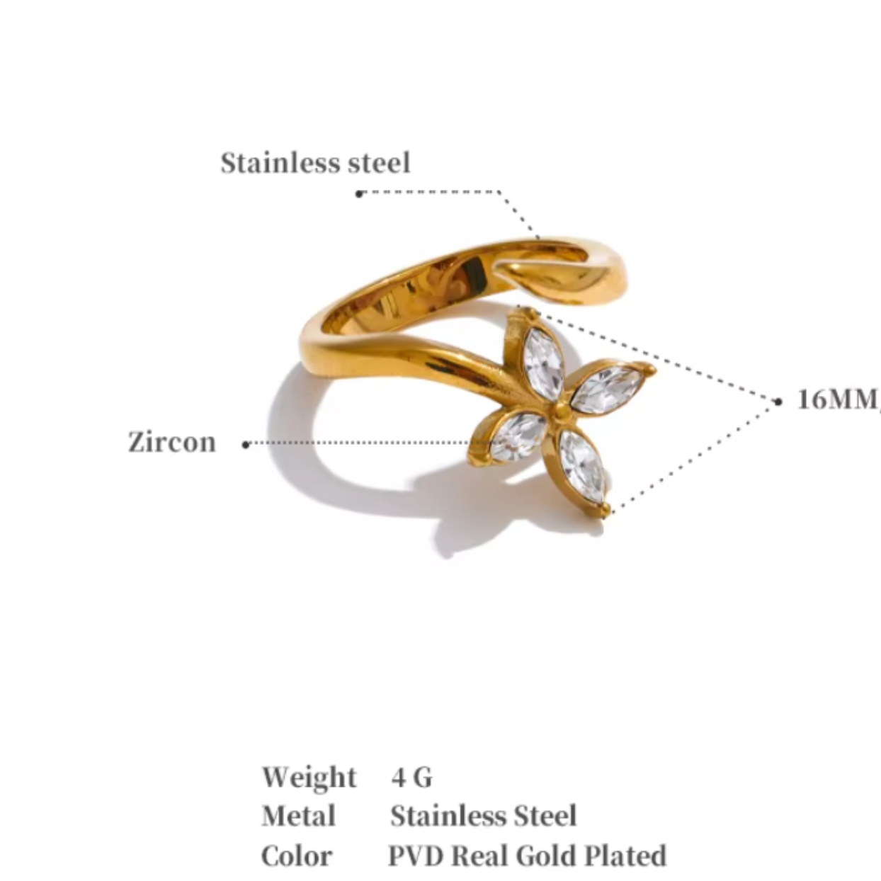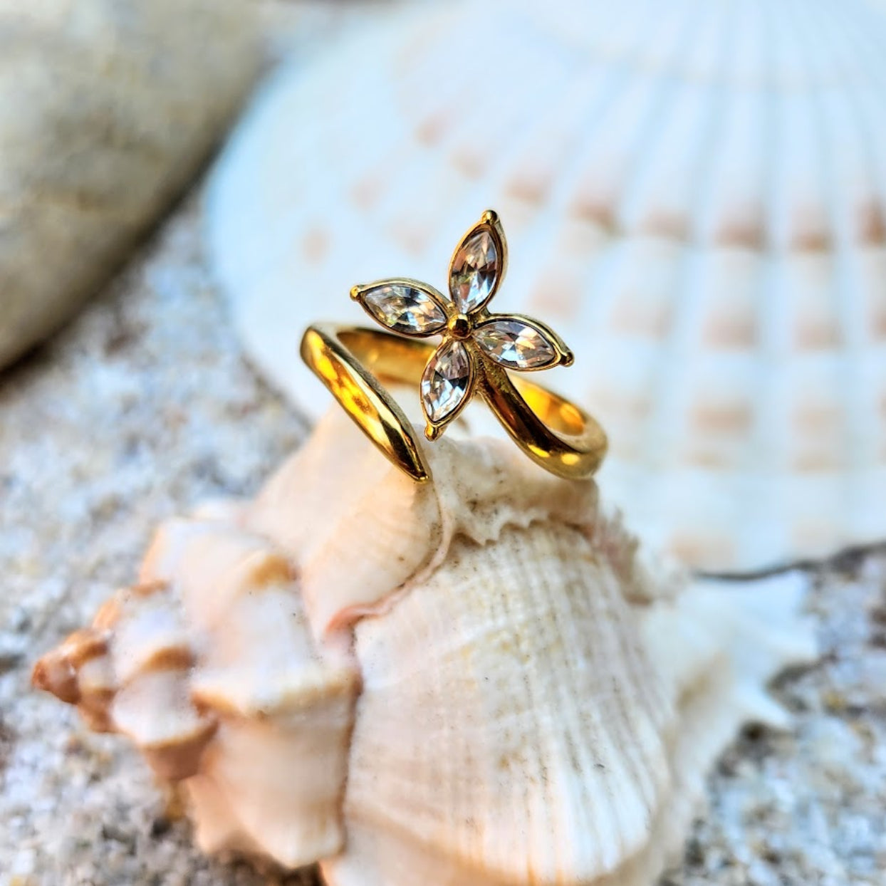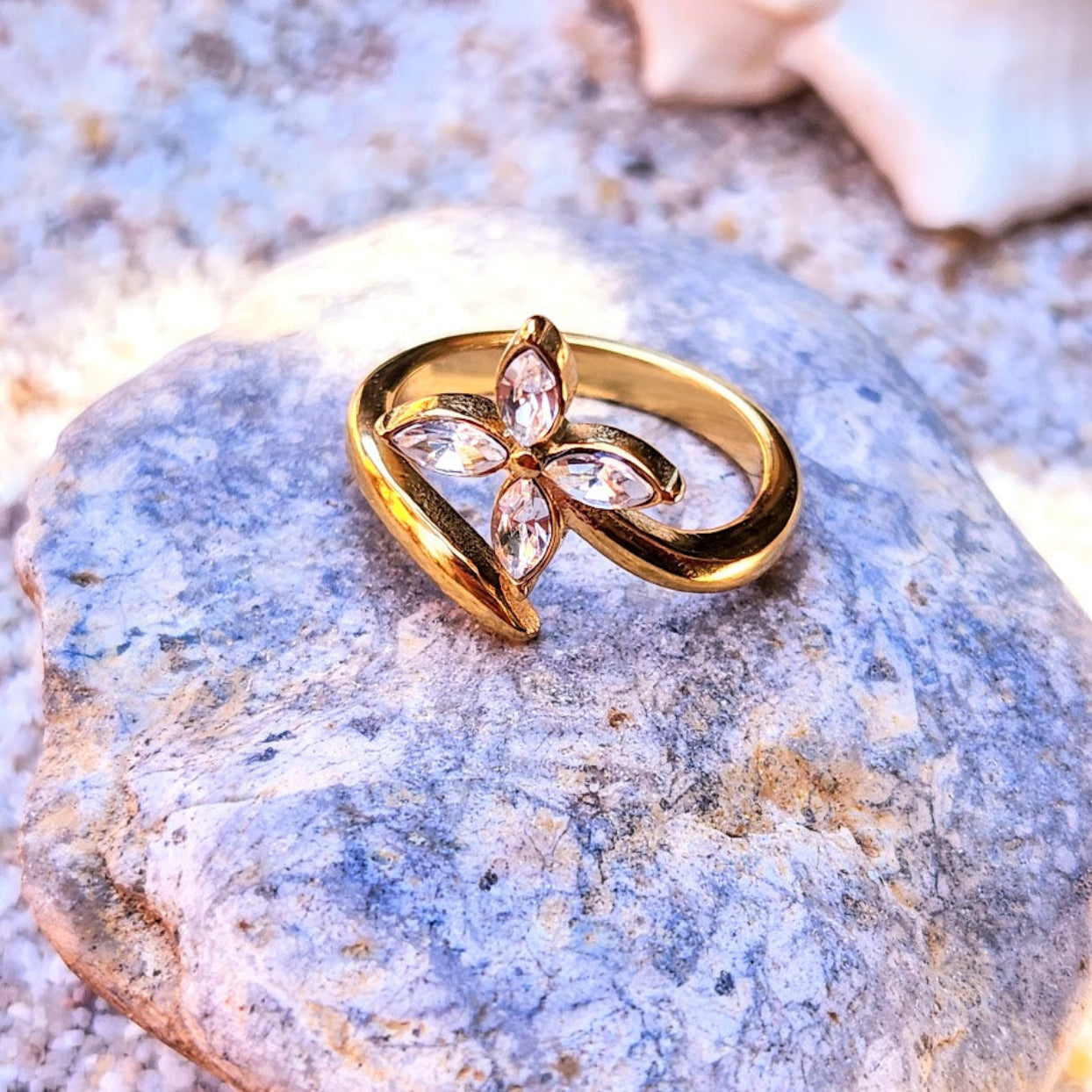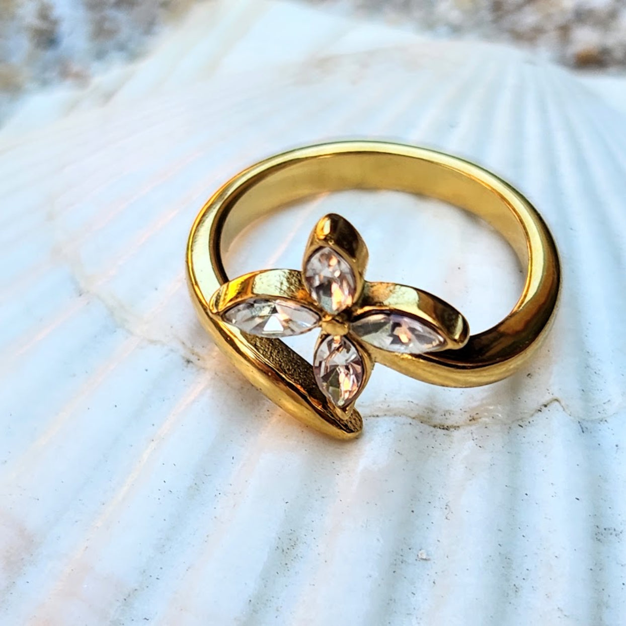 DAISY FLOWER - CUBIC ZIRCONIA WATERPROOF 18K GOLD RING