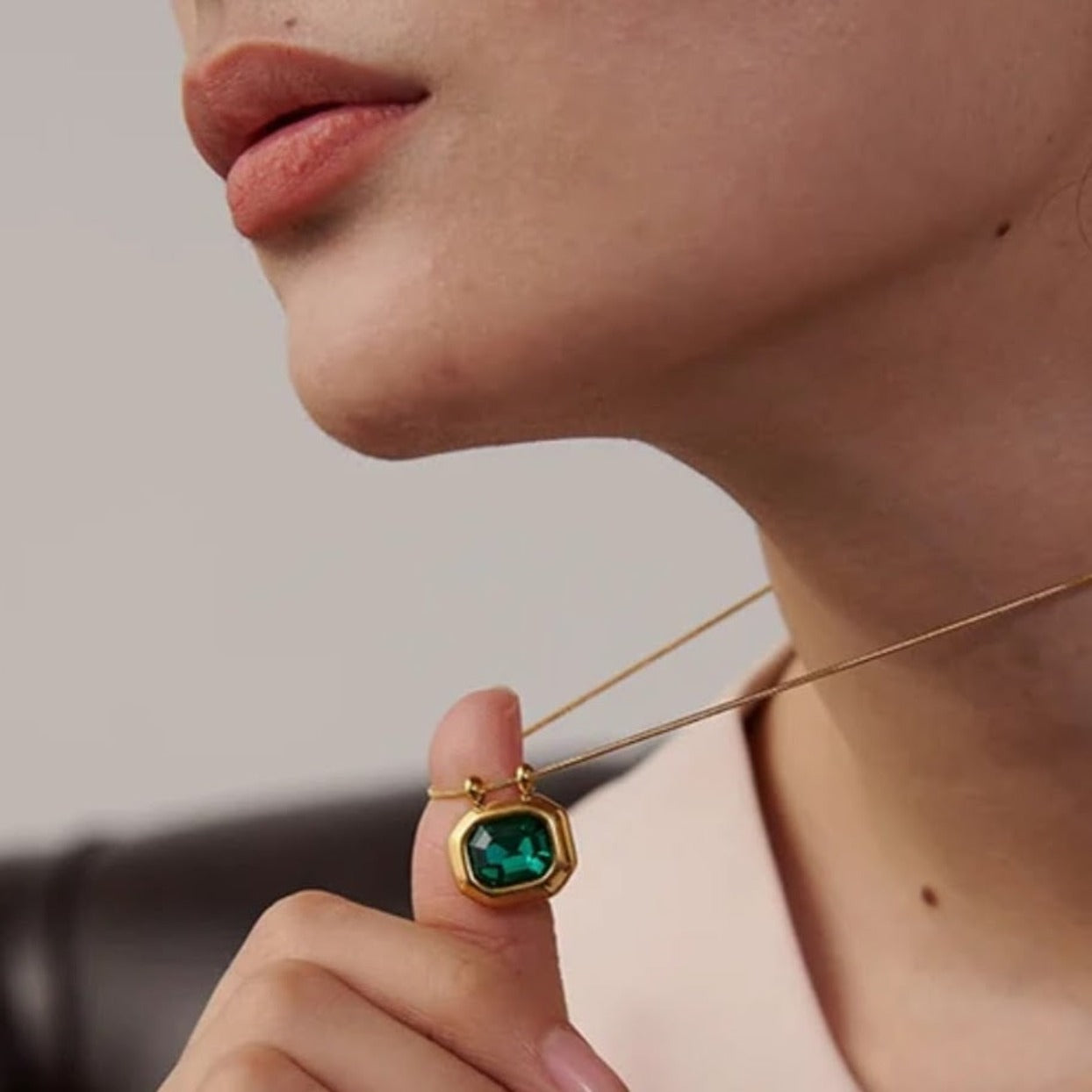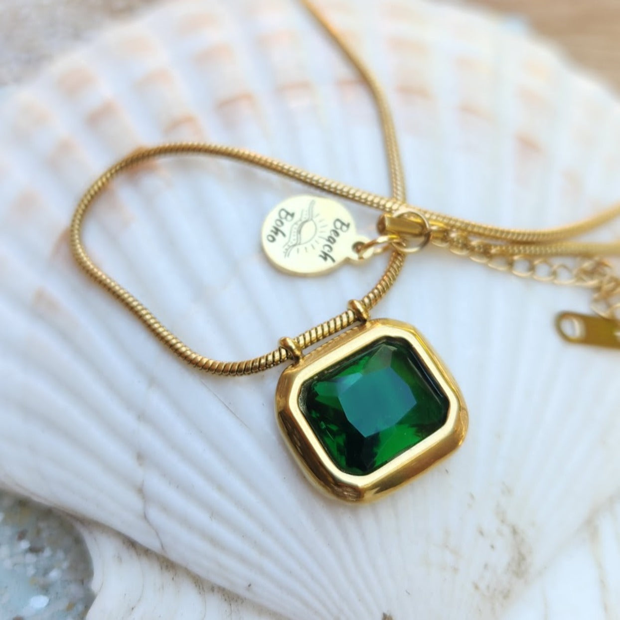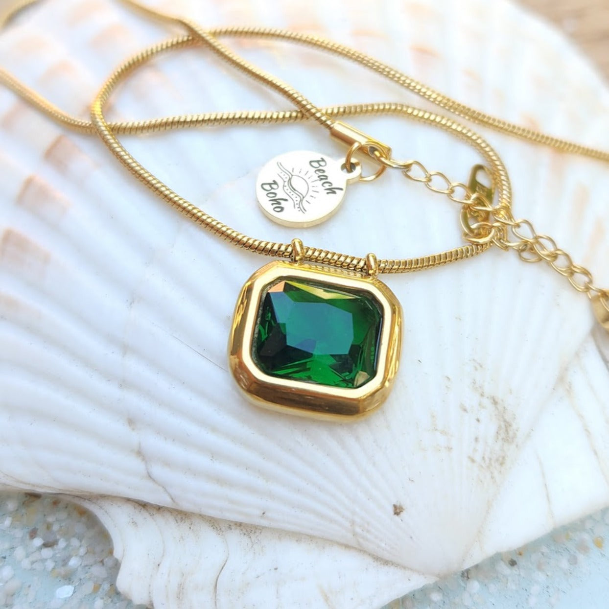A very special Necklace - Emerald Or Crystal Coloured Cubic Zirconia with a 18k Snake Chain Waterproof Necklace