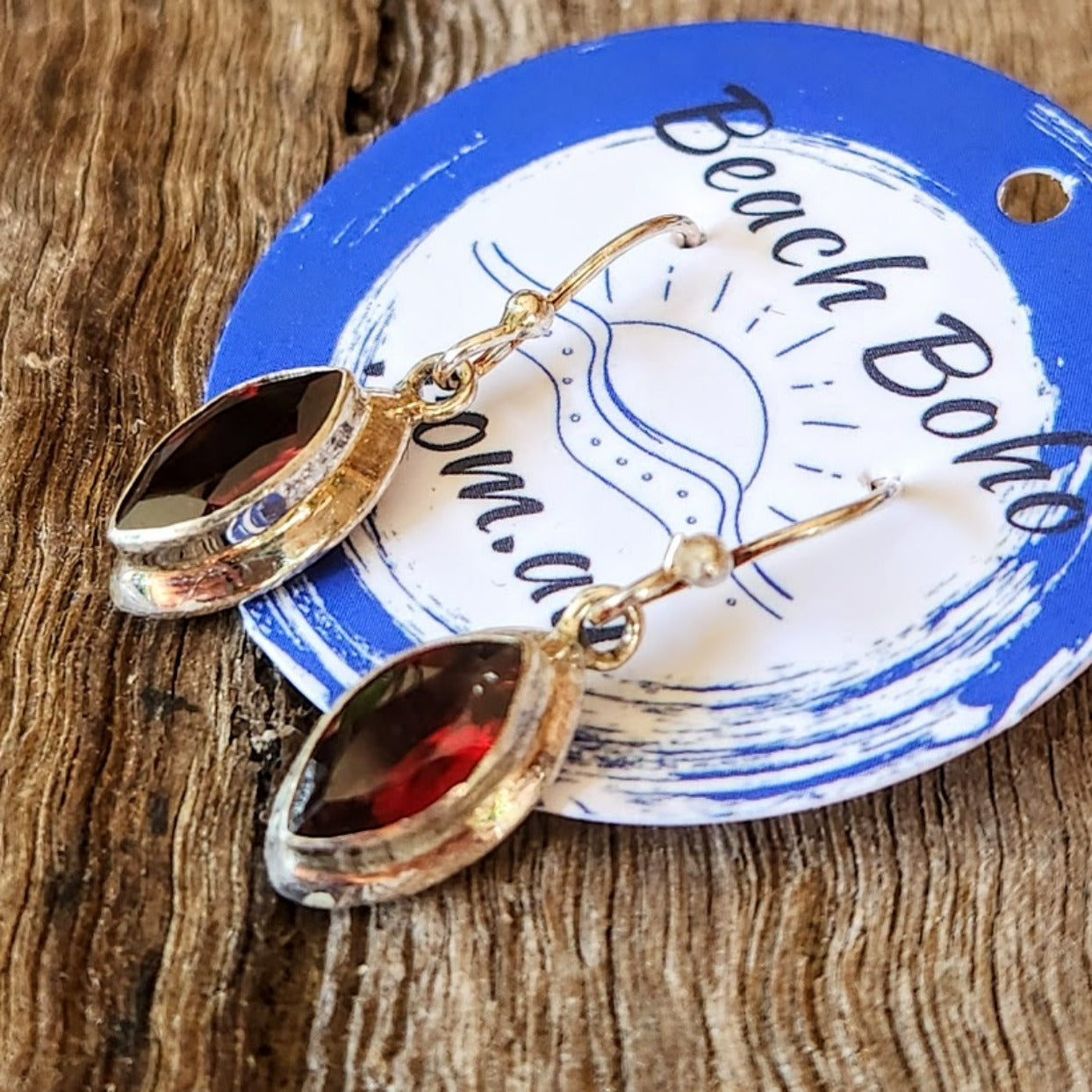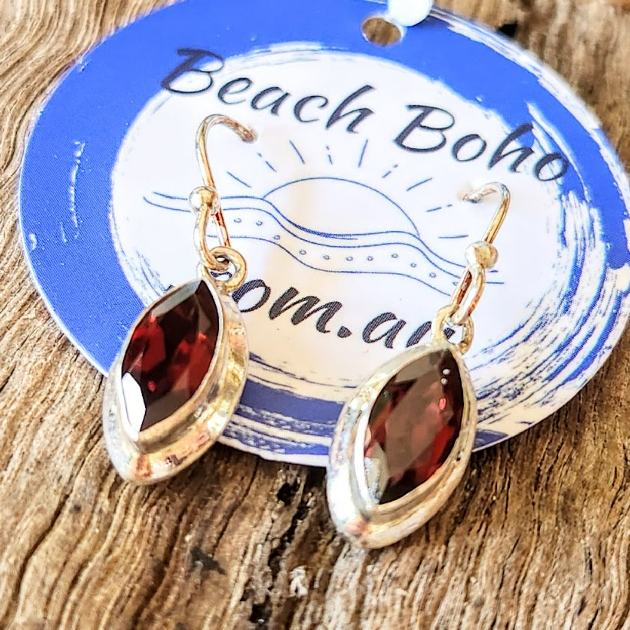 Beautifully lightweight, stunning Deep Red Garnet Crystal / Stone Earrings / comes with a Silver Cleaning Cloth free of Charge