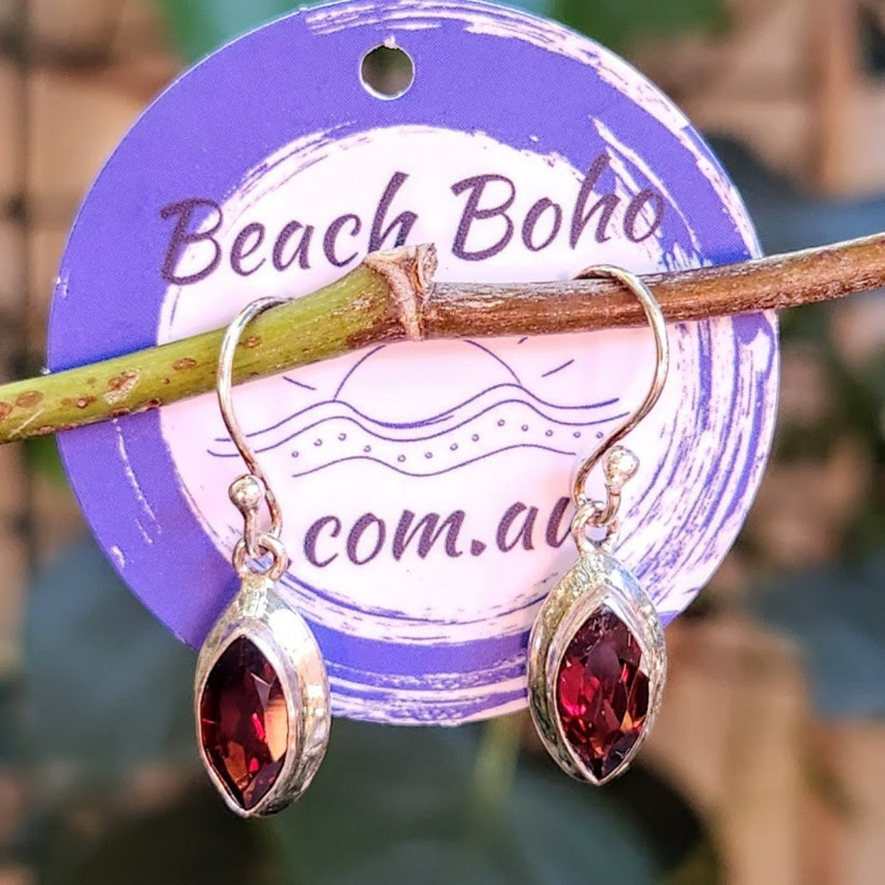 EYE OF LOVE - GARNET 925 DROP HOOK EARRINGS