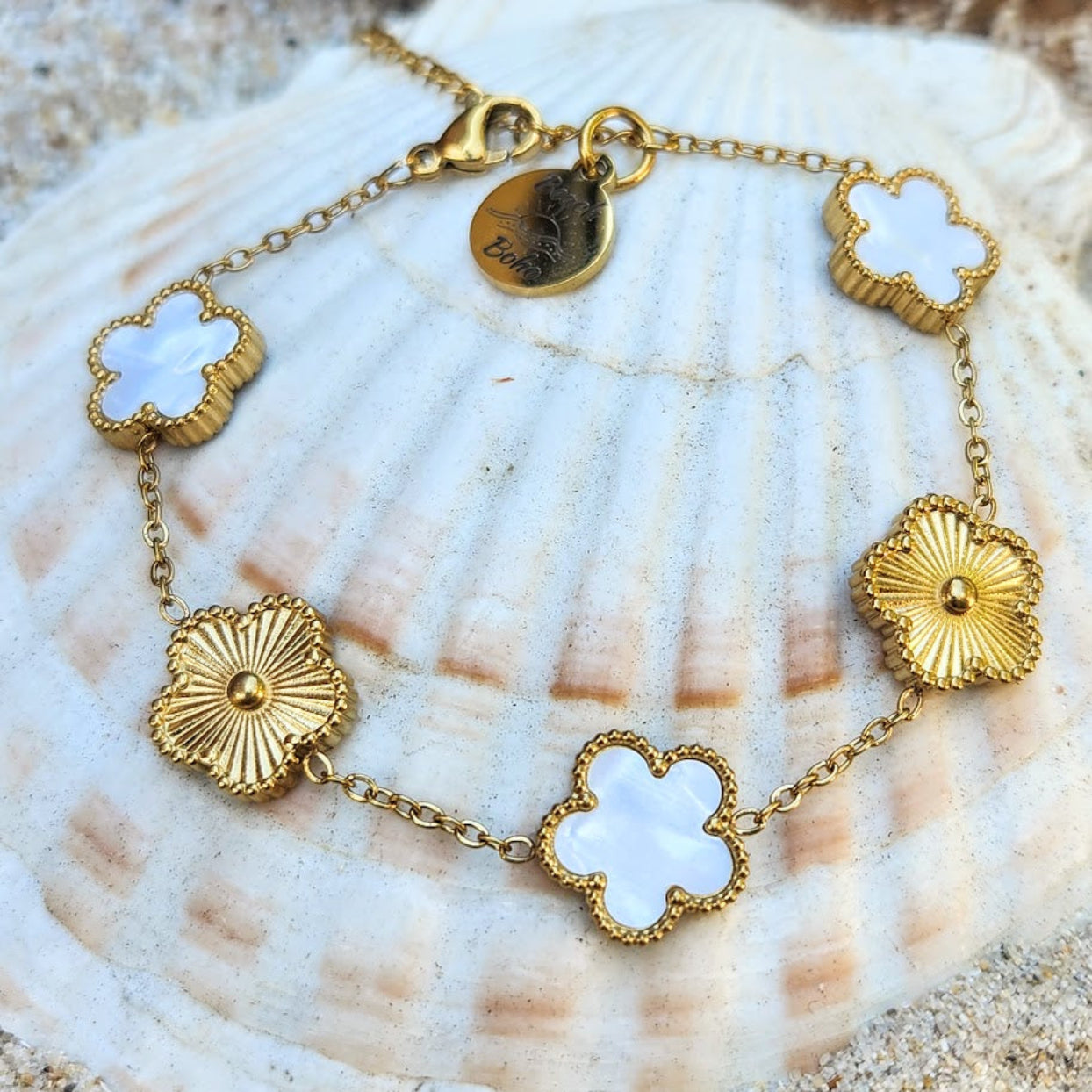 FOUR LEAF CLOVER - GOLD WHITE OR BLACK 18K GOLD WATERPROOF CHAIN BRACELET
