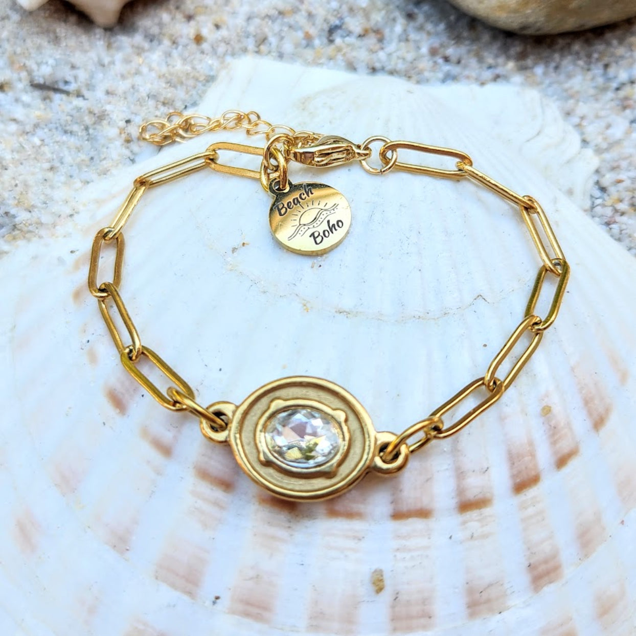 CRYSTAL DREAMS - CHOICE OF RUBY / CRYSTAL OR EMERALD 18K GOLD WATERPROOF CHAIN BRACELET