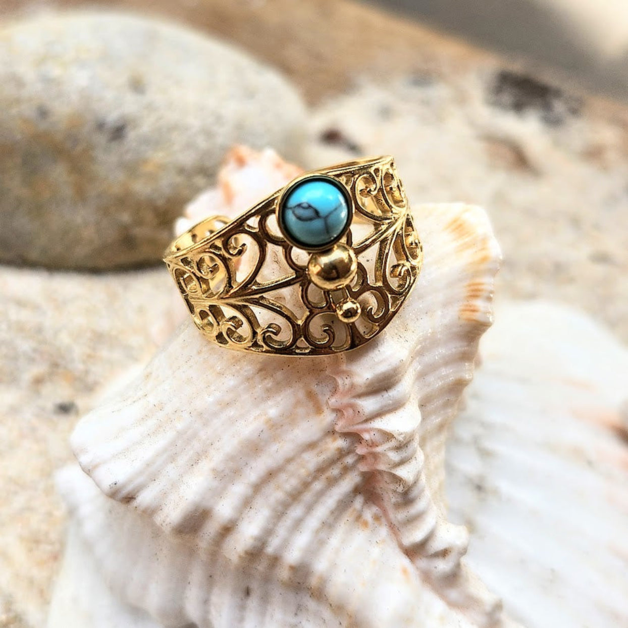 EMBOSSED TURQUOISE - ADJUSTABLE WATERPROOF 18K GOLD RING