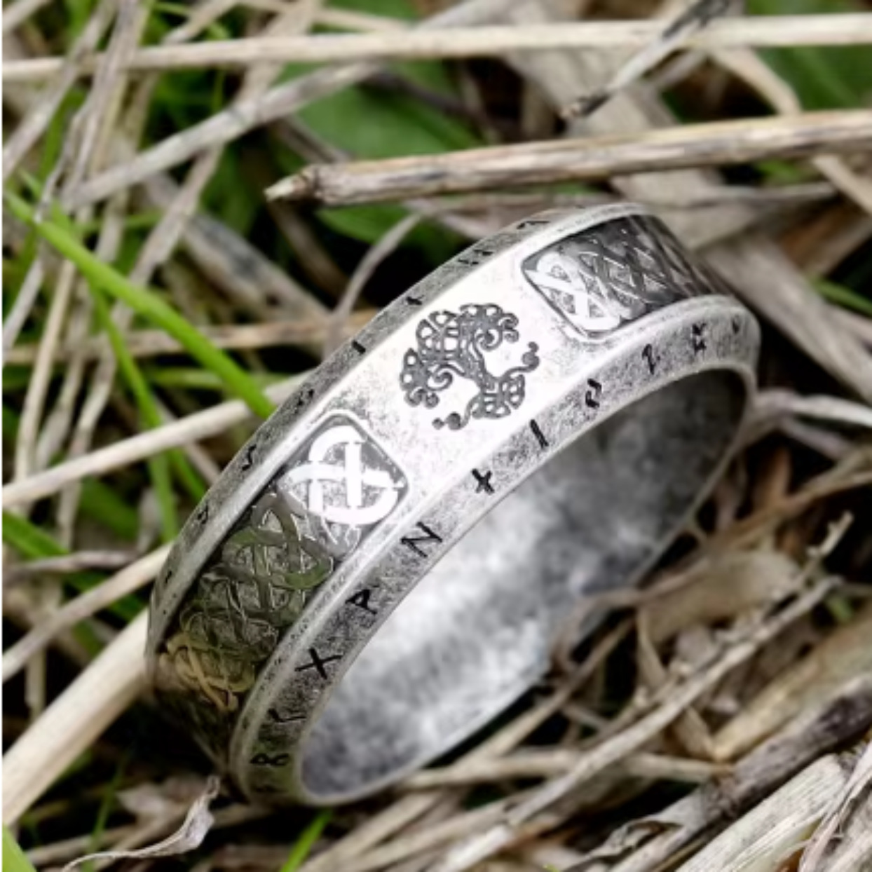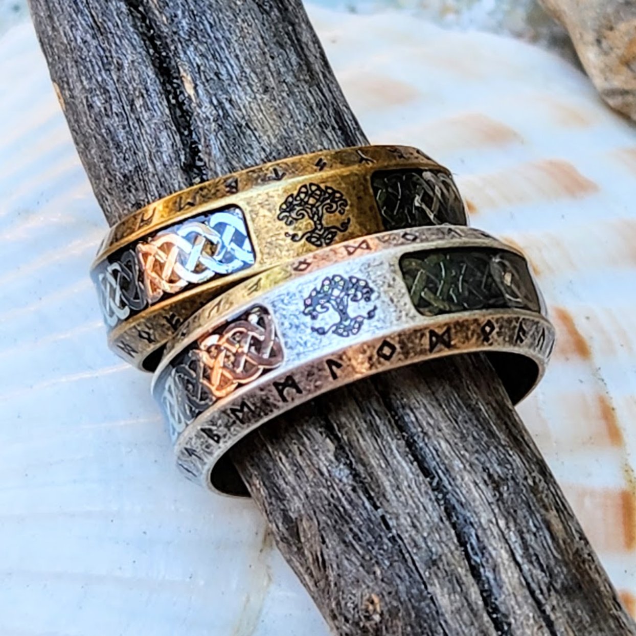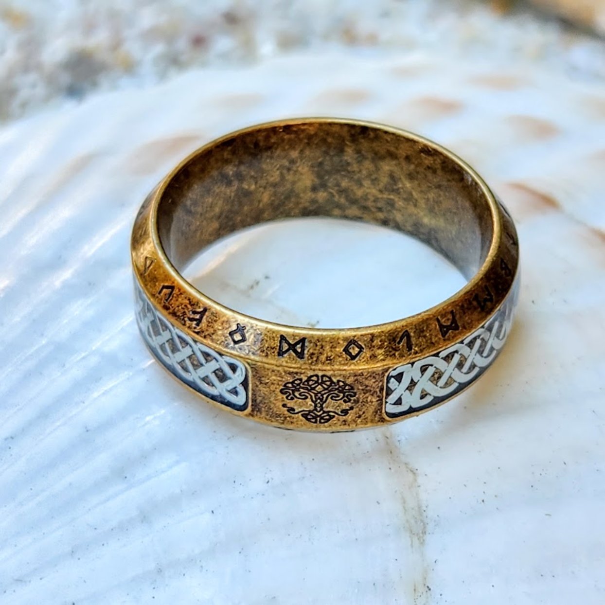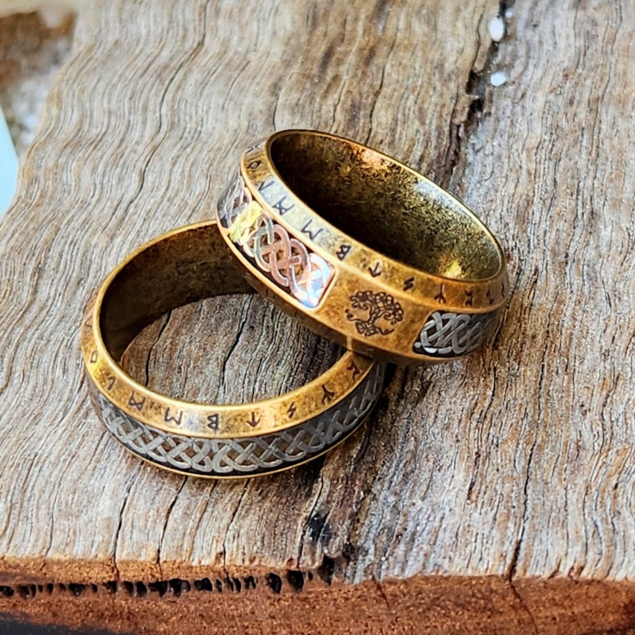 VINTAGE BRONZE OR SILVER TREE OF LIFE RUNES - WATERPROOF RINGS