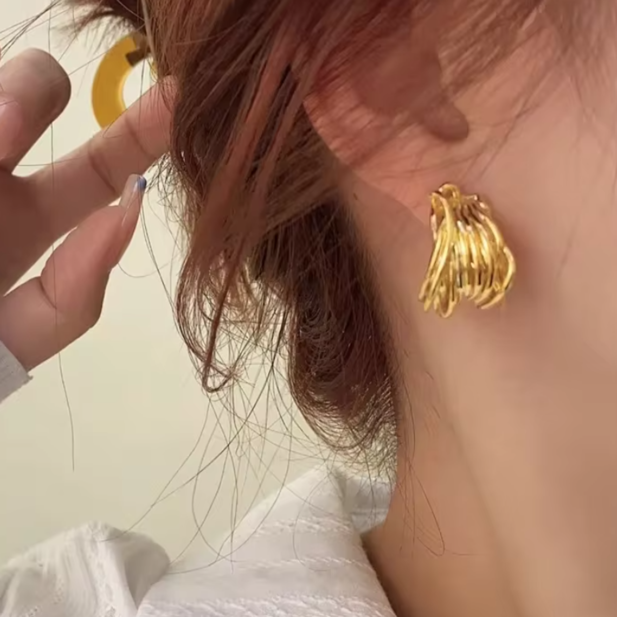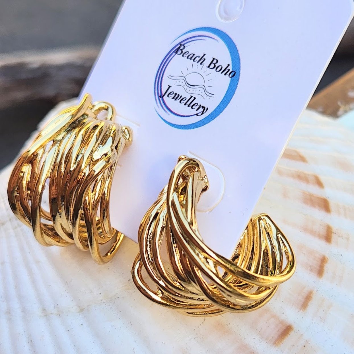 Waterproof Gold Wraps Wire Style Earrings 18k Gold Studs made with Titanium Steel Tarnish Resistant Jewellery