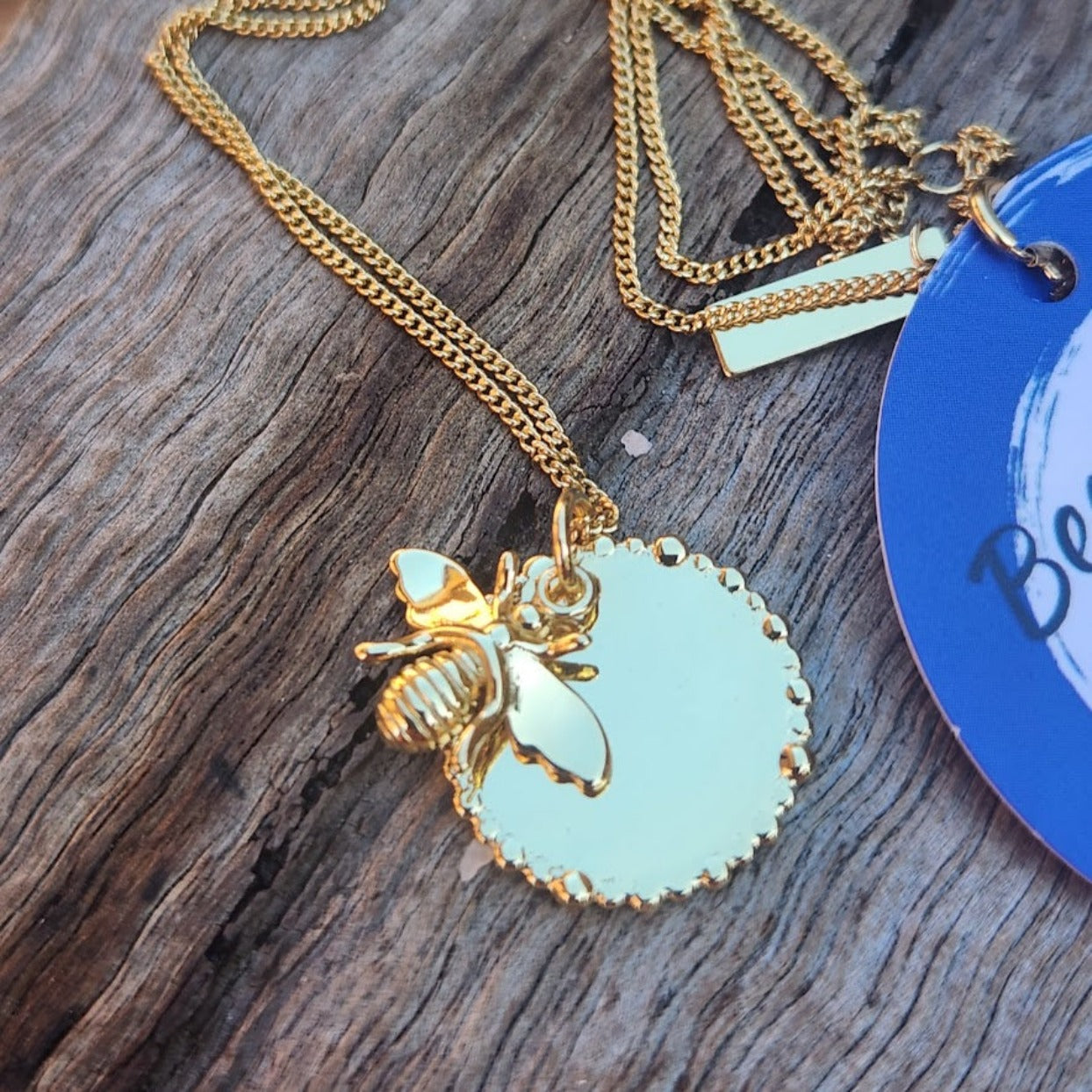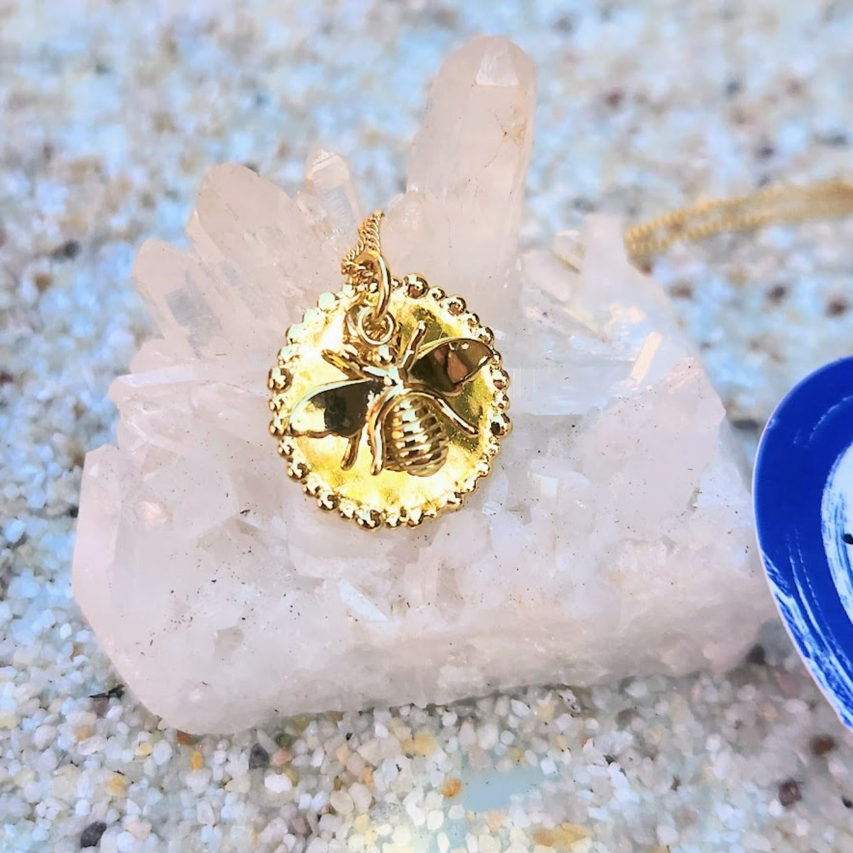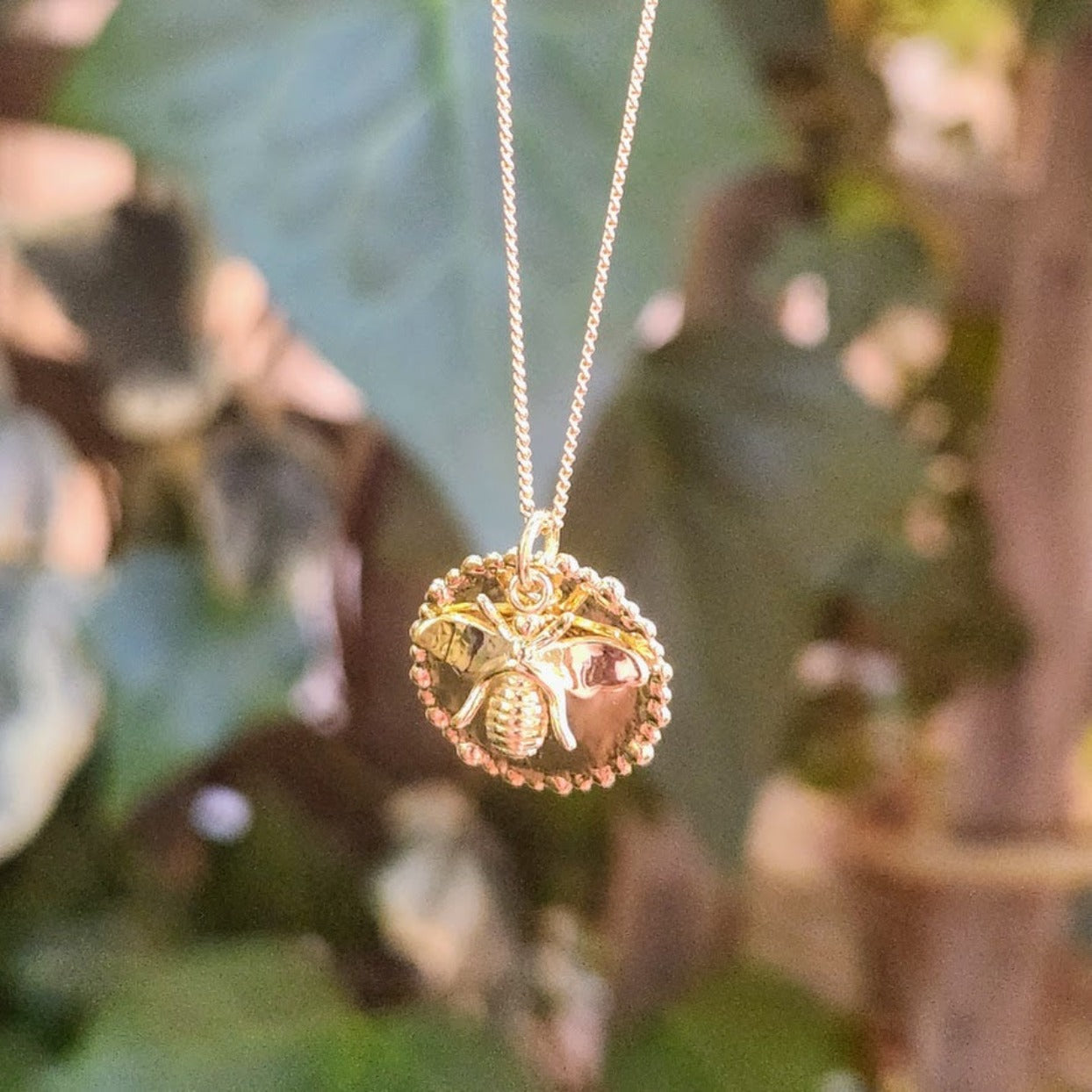 14 ct Gold Plated Over 925 Sterling Silver Bee on Disc Necklace