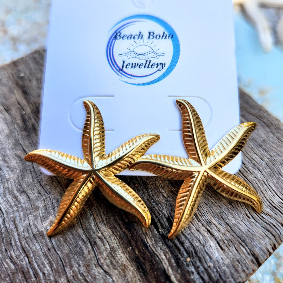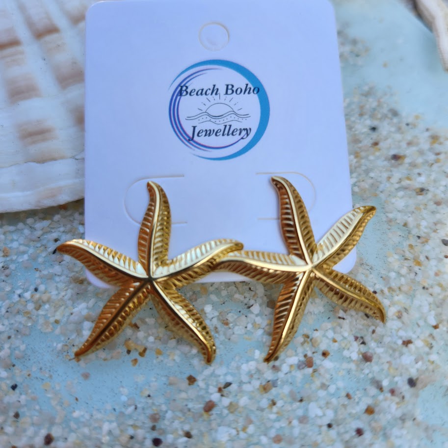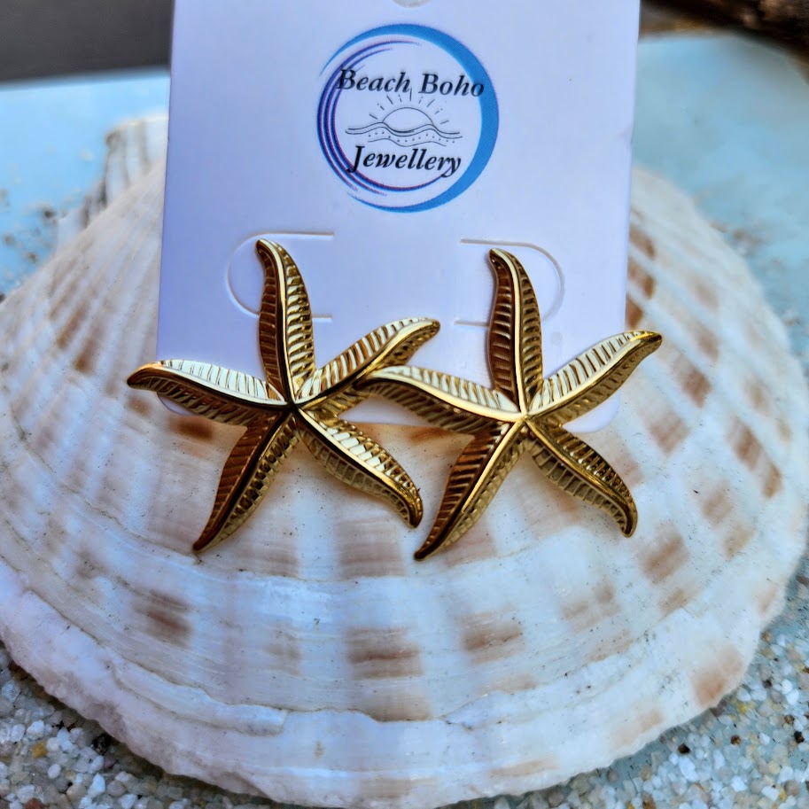 Waterproof Starfish Earrings 18k Gold Studs made with Titanium Steel Tarnish Resistant Jewellery