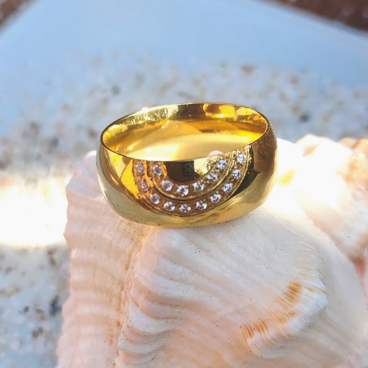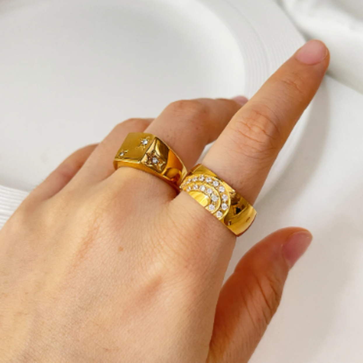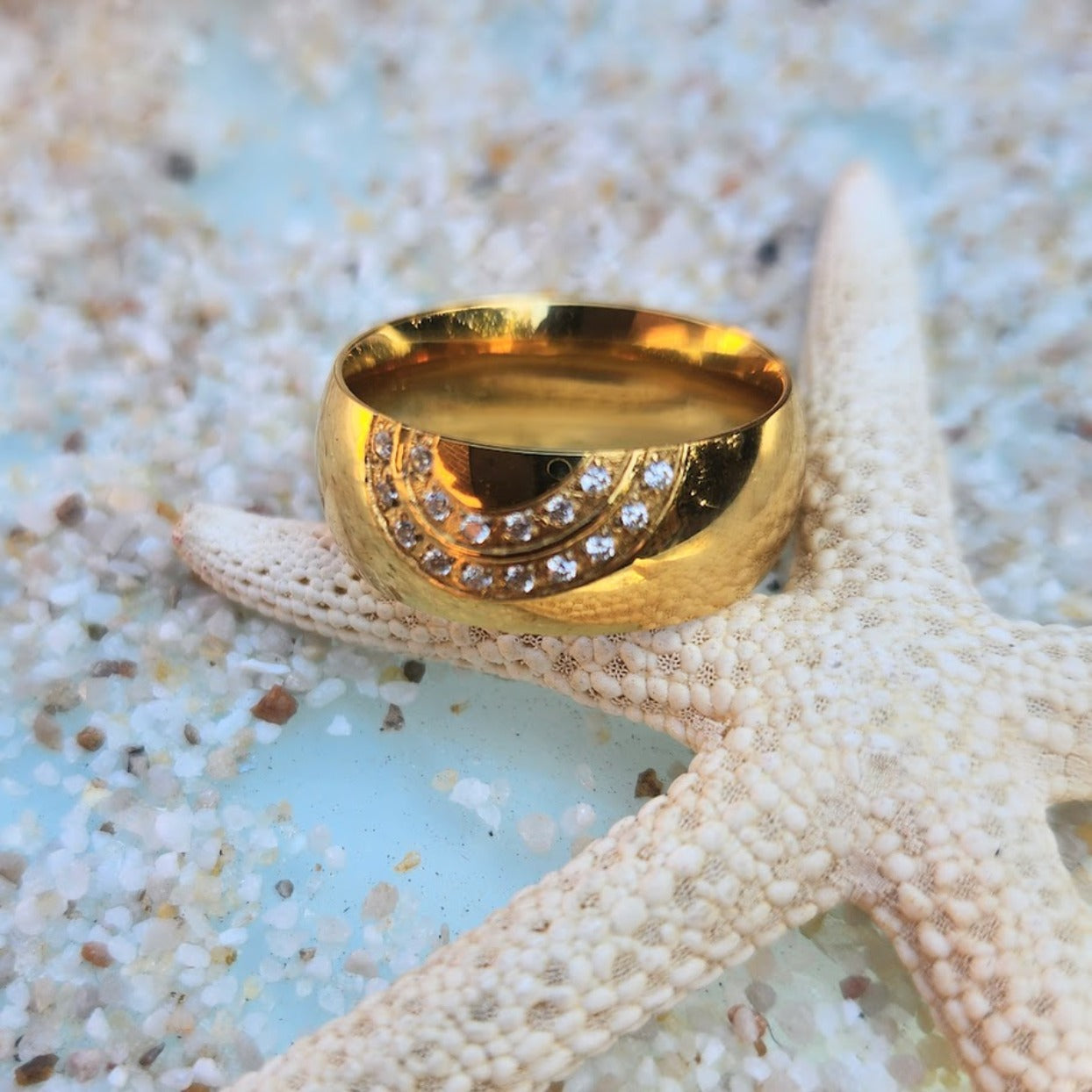 Cubic Zirconia Star Gold Arch Band Ring / 18k Gold Plated Water Proof / Sweat Proof / Hyper Allergenic / Use at Gym, swimming... yours to enjoy