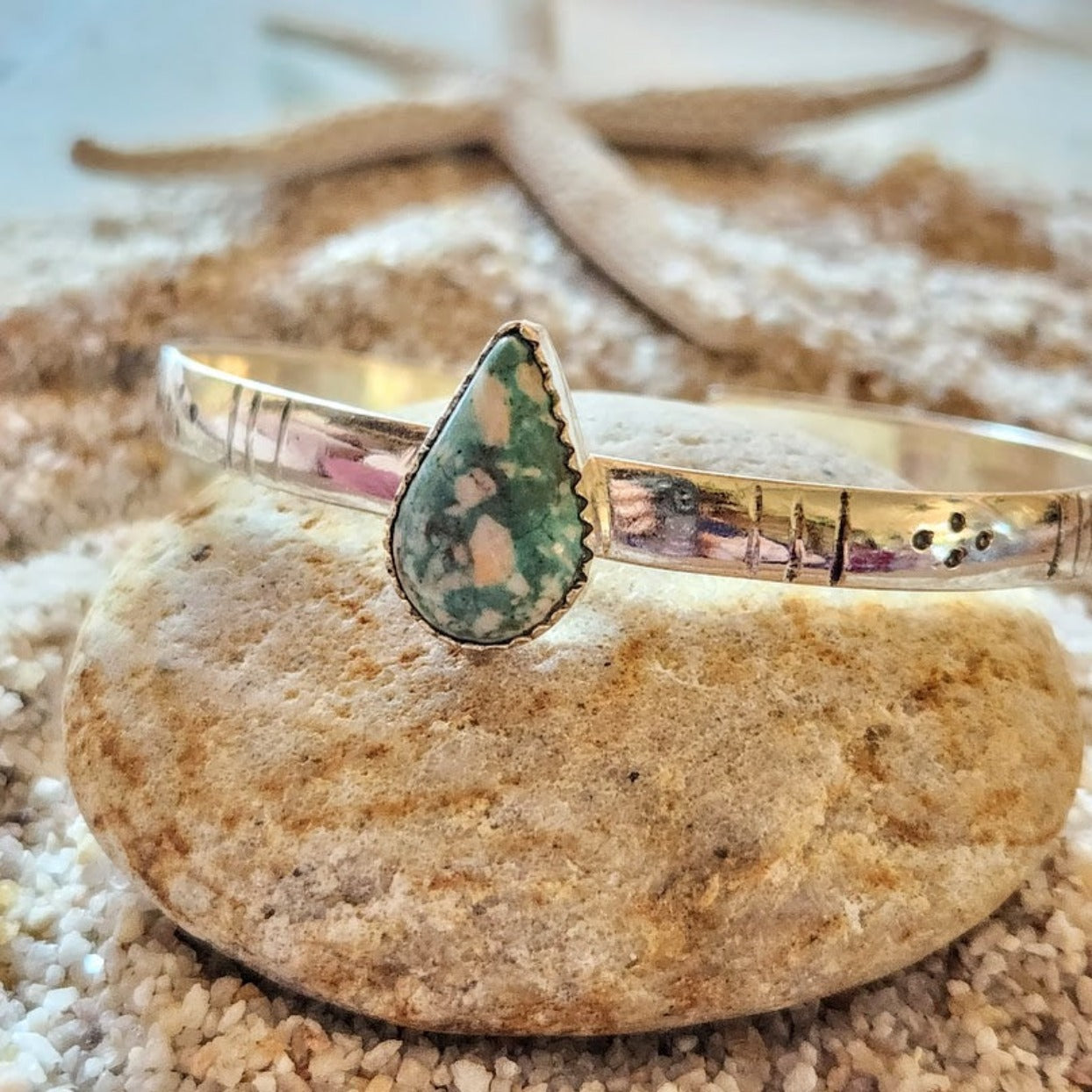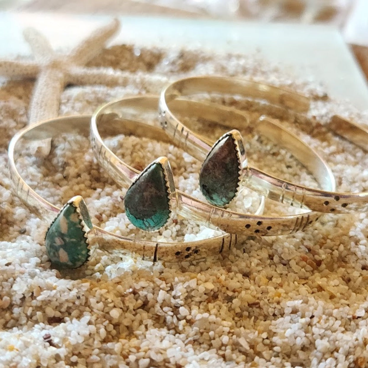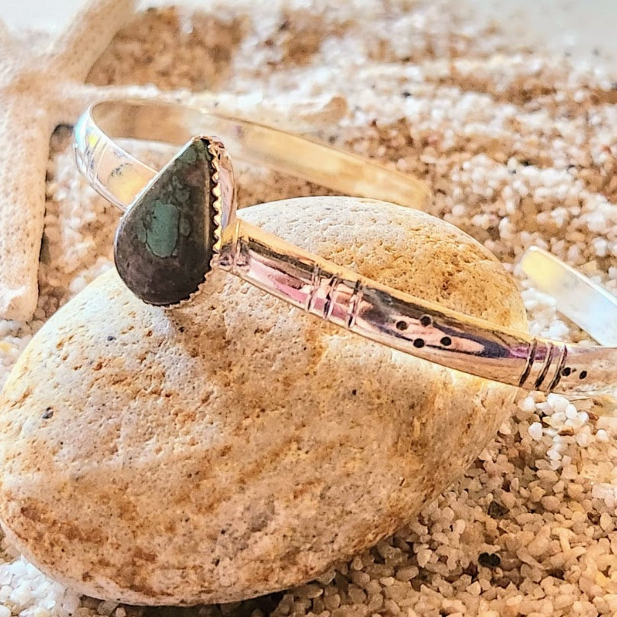 GREEN TEARDROP NAVAJO 925 SILVER CUFF