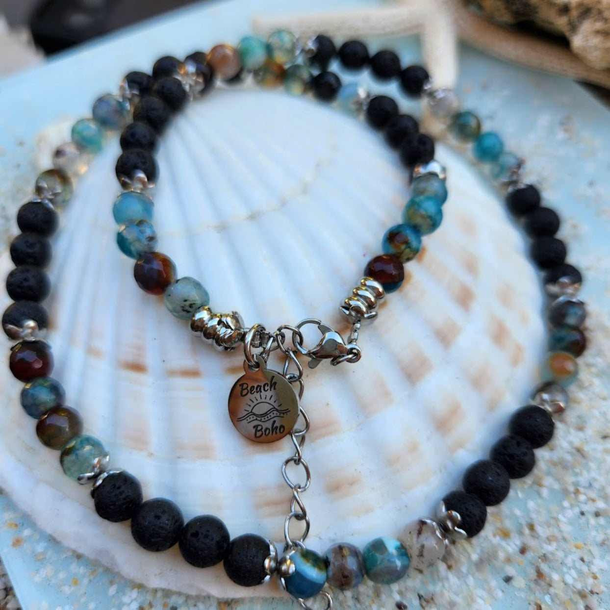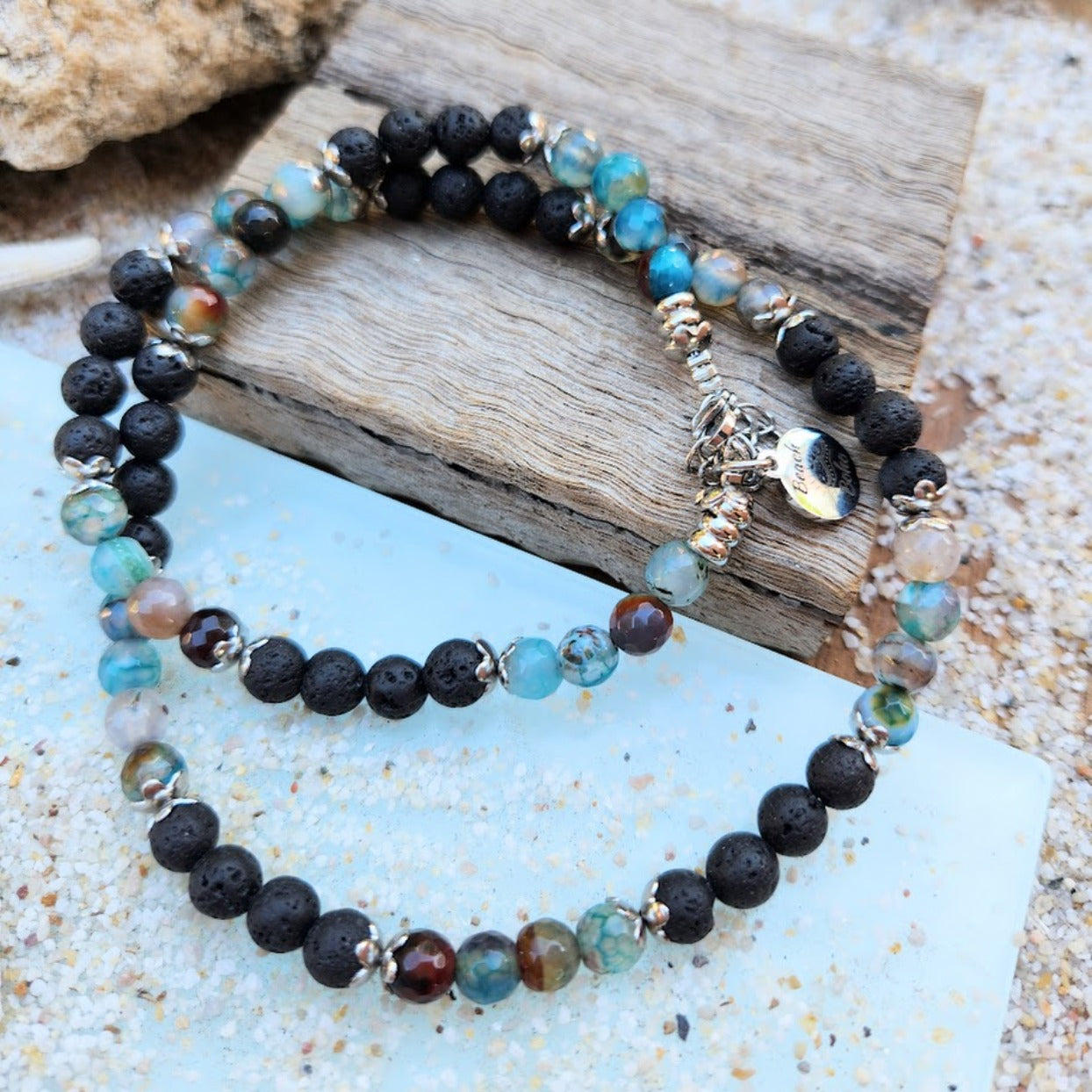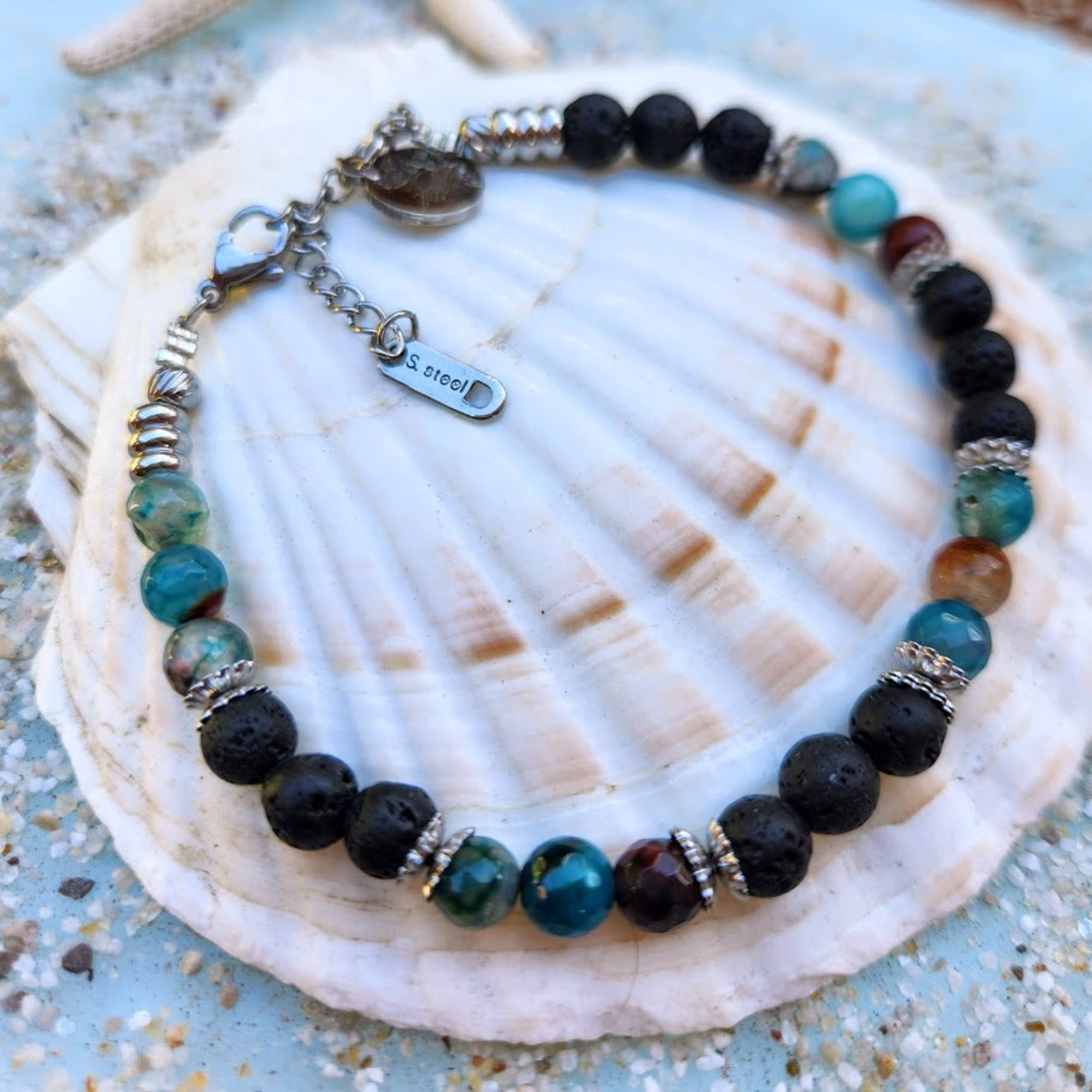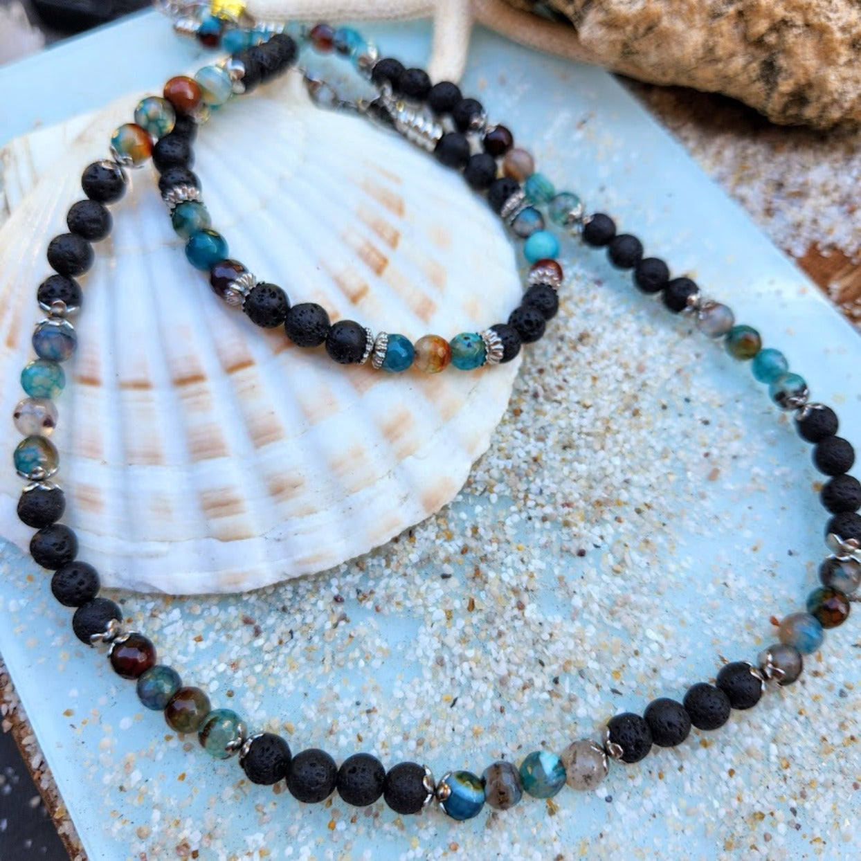 HANDMADE BRACELET & NECKLACE SET - MEN'S AGATE & SILVER WATERPROOF