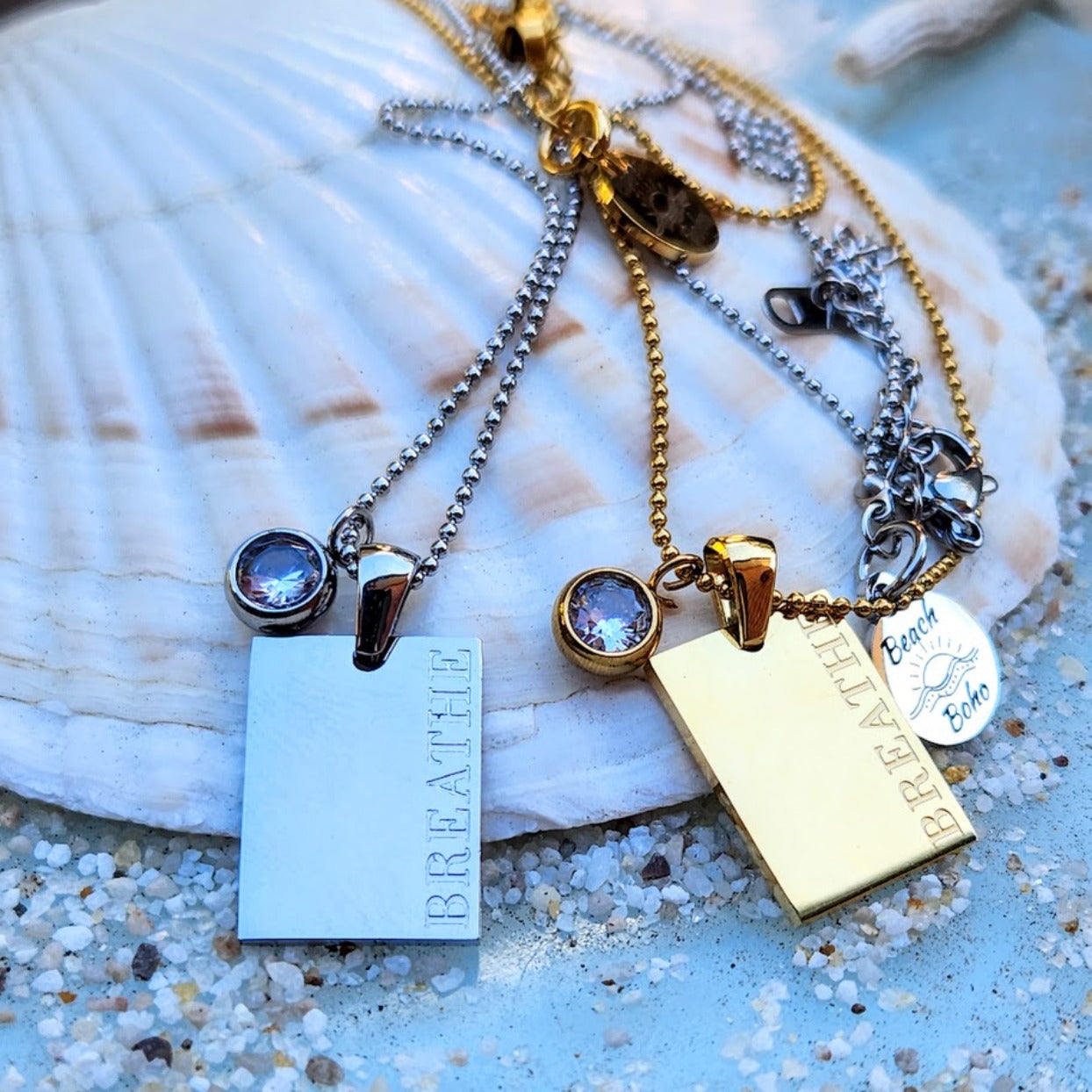 We all need a little something to get us through our days... these beautiful little Necklaces remind us, to Breath and that the world is yours!