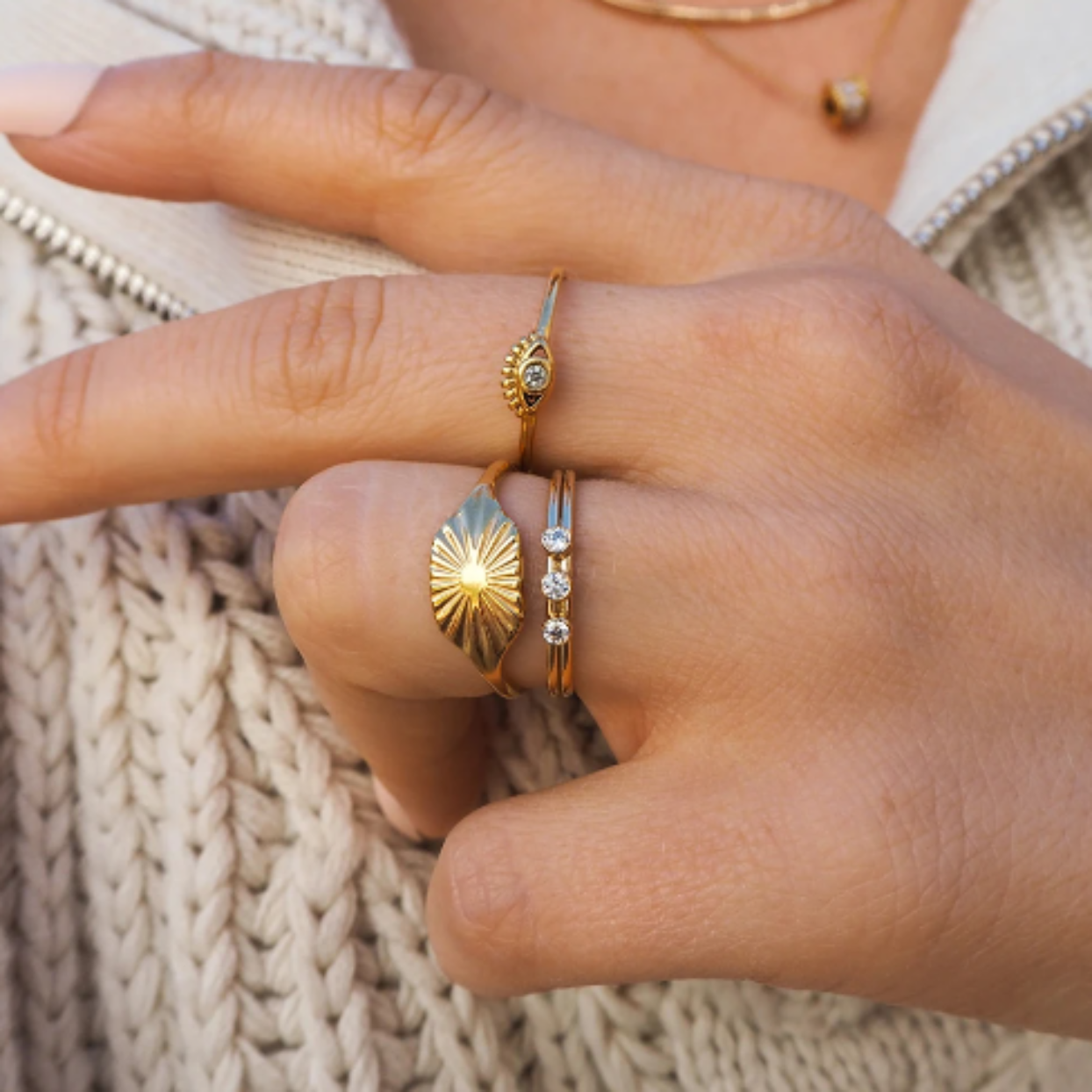 SUN SUN - ADJUSTABLE WATERPROOF SIGNET GOLD RINGS