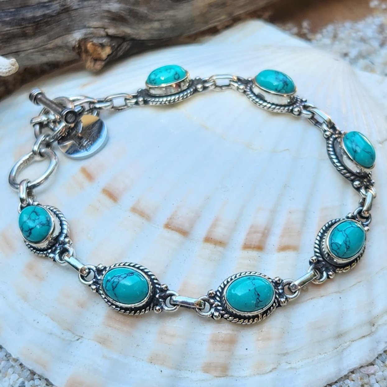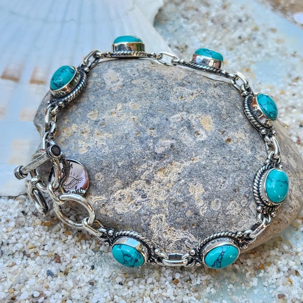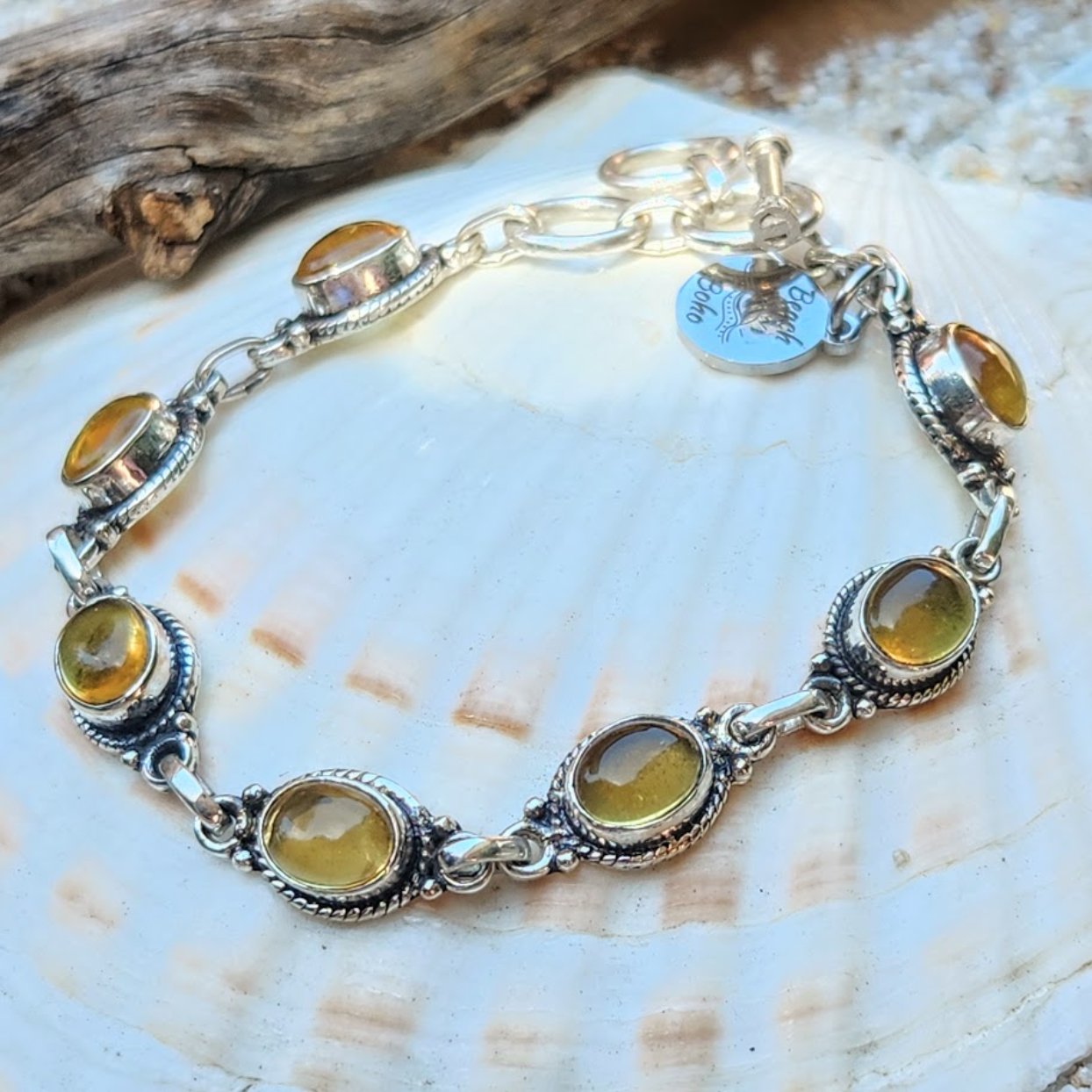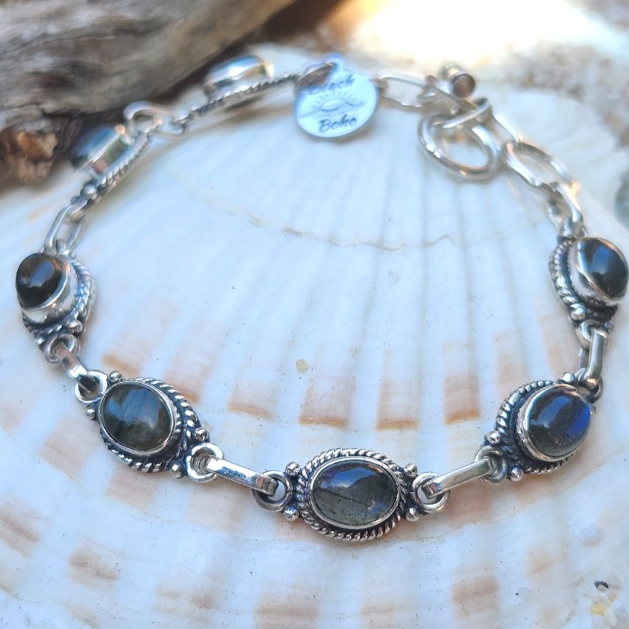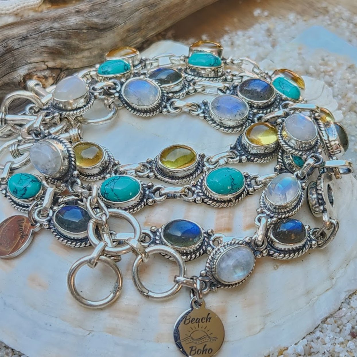 QUARTRO GEMS - TURQUOISE / LABRADORITE / MOONSTONE OR CITRINE GEMSTONE 925 BRACELET