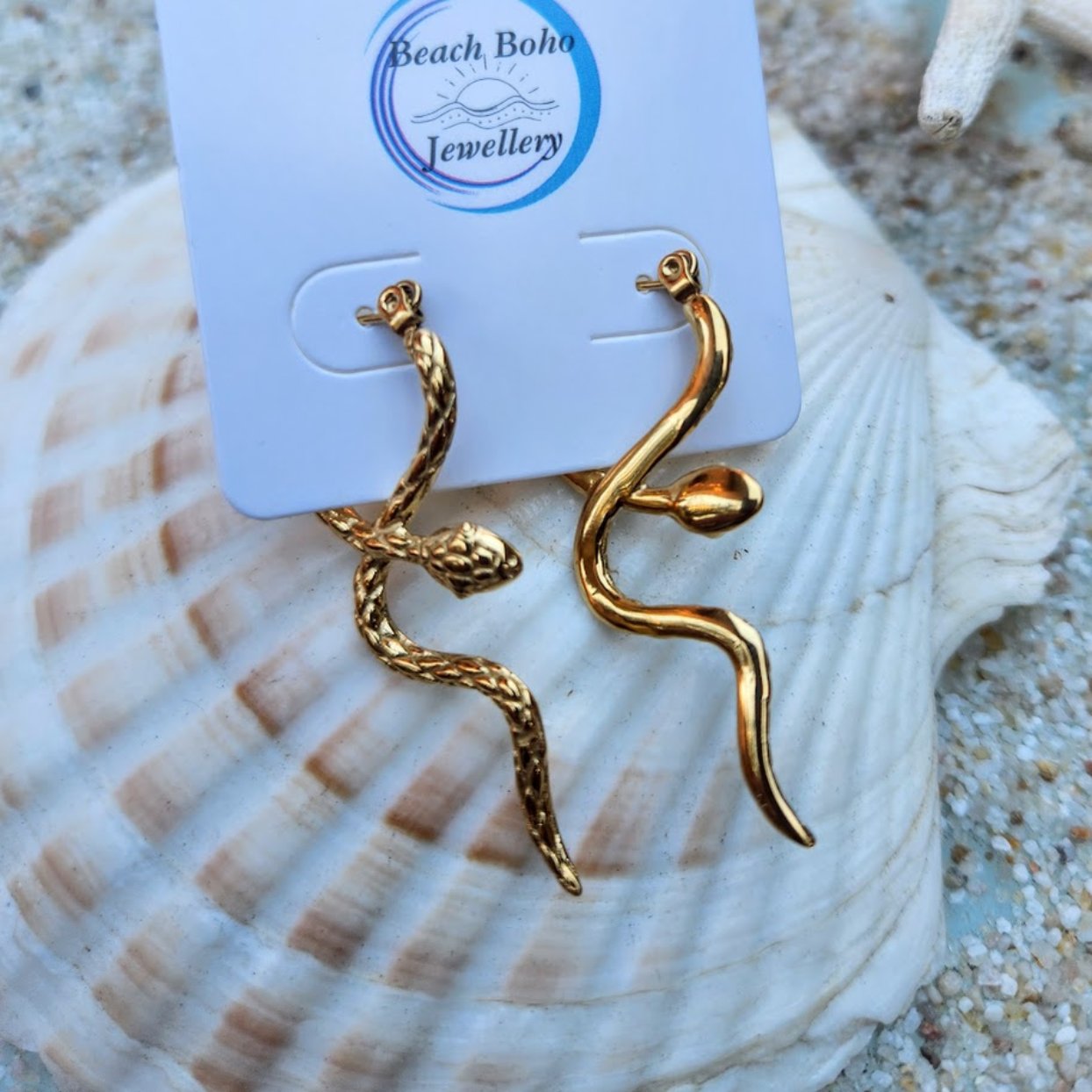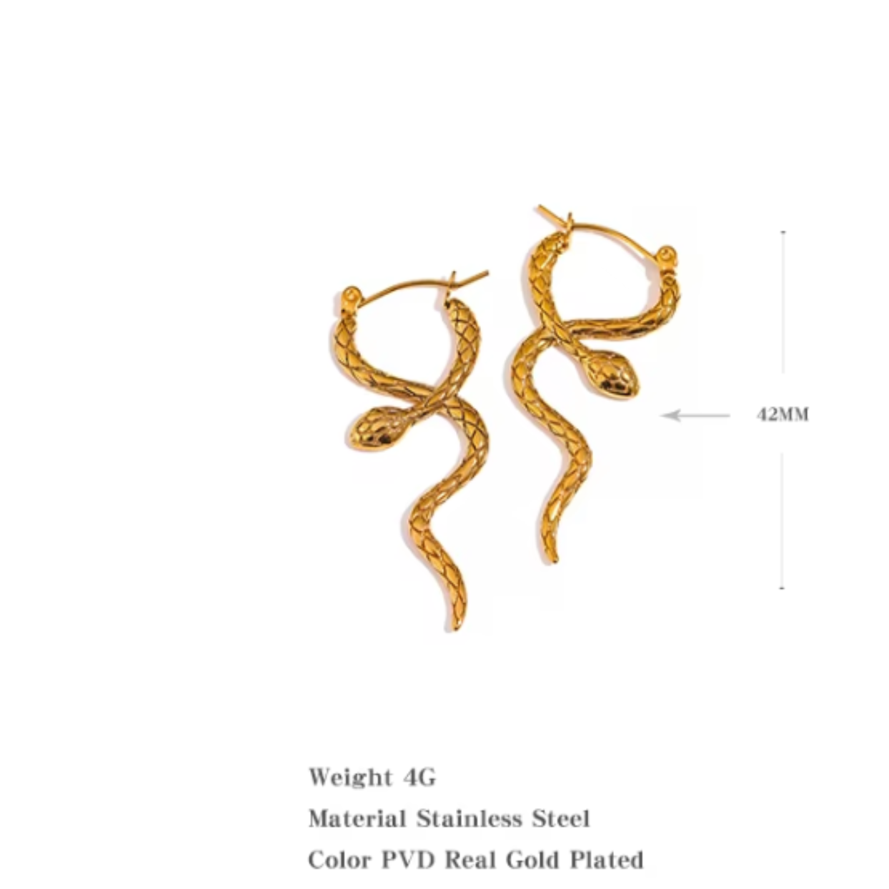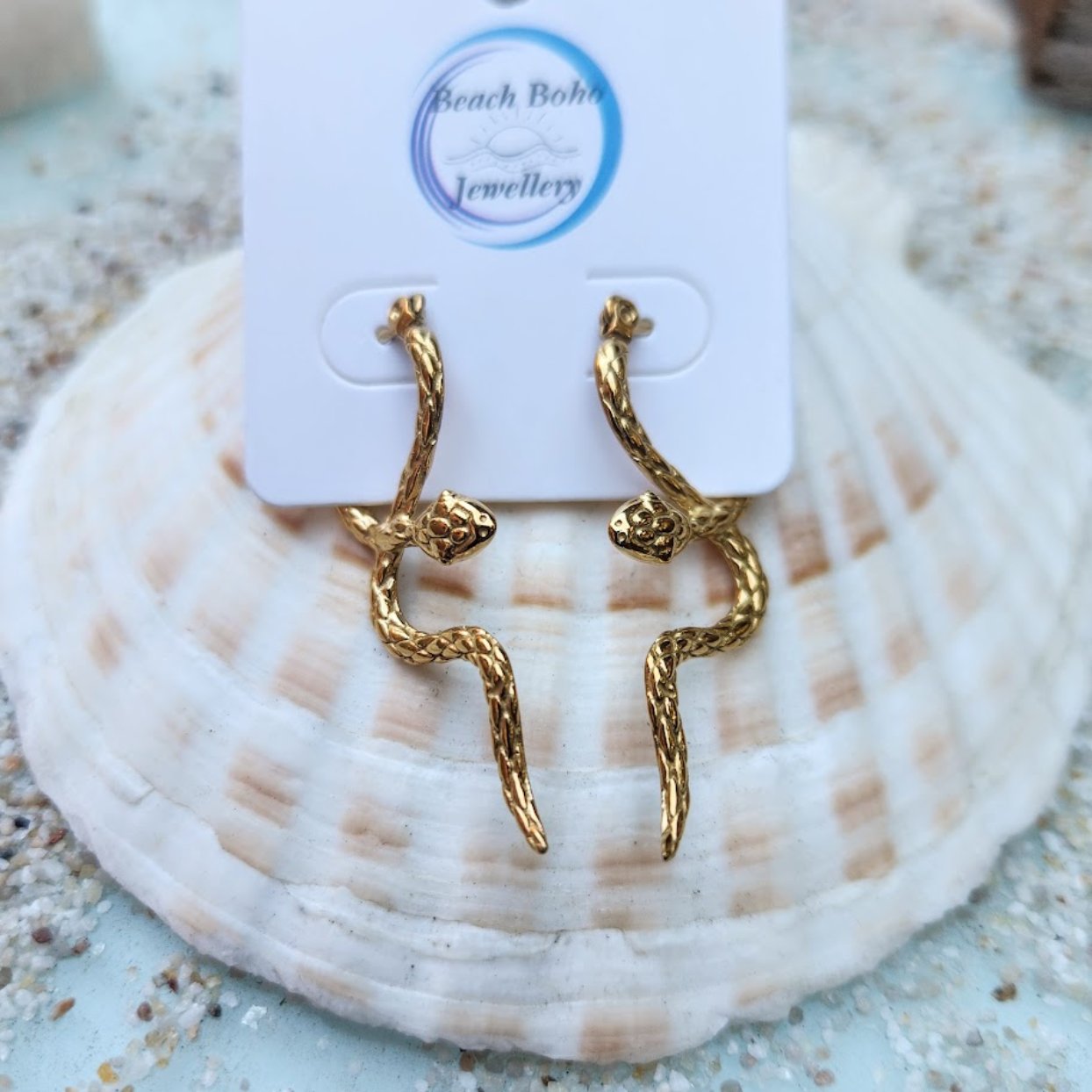 18k Gold Plated Unique Snake Hoop Earrings made with Titanium Steel Tarnish Resistant Jewellery 4.2 cm long