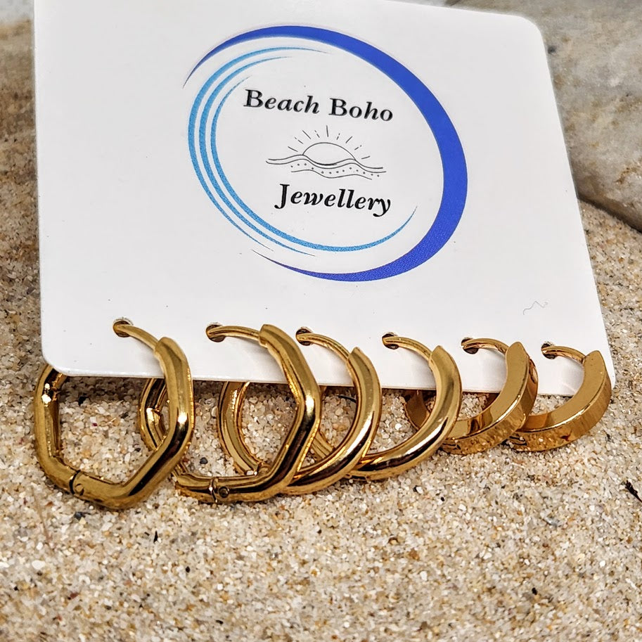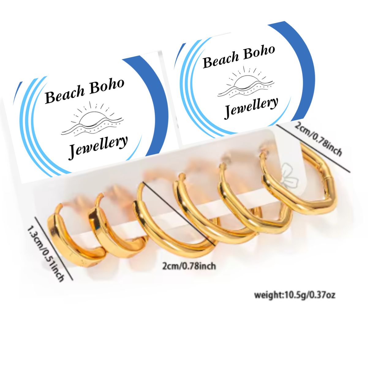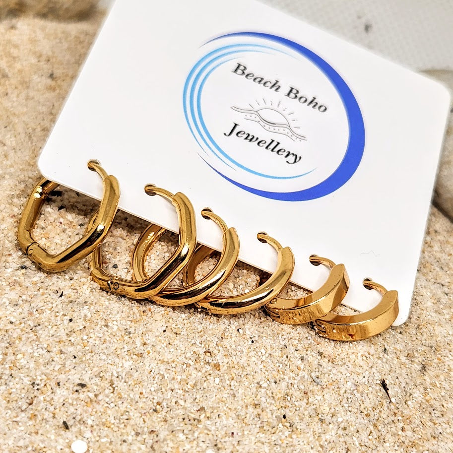 Set of 3 / 18k Gold Plated Huggie Hoop Earrings incredibly comfortable & made with Titanium Steel Tarnish Resistant Jewellery 2 x 20 mm (0.78mm in thickness) & 1.3 mm round (0.51 mm thickness). Perfect to wear all the time!