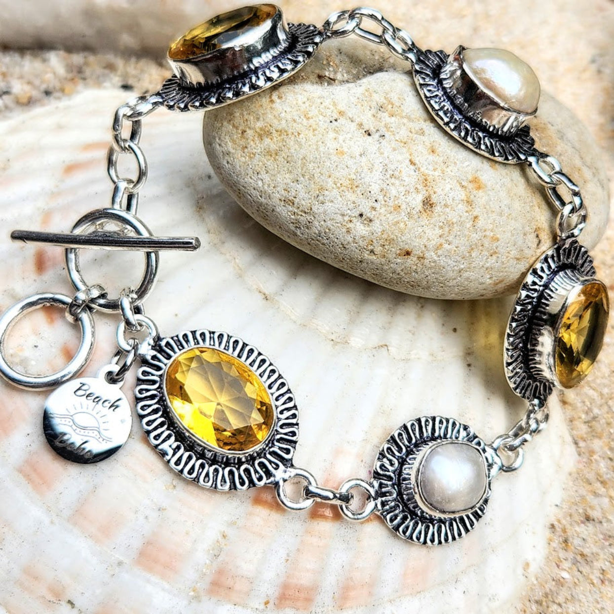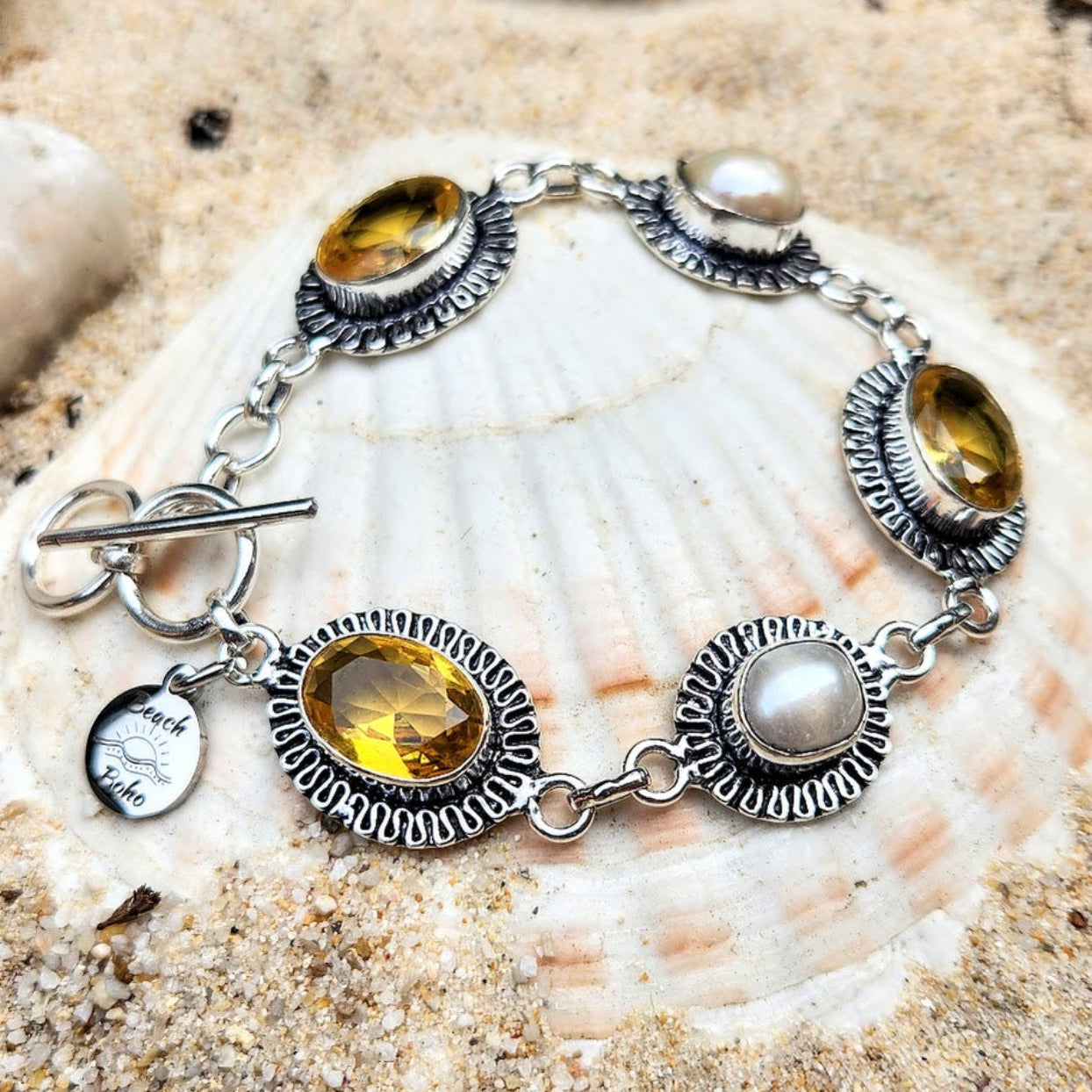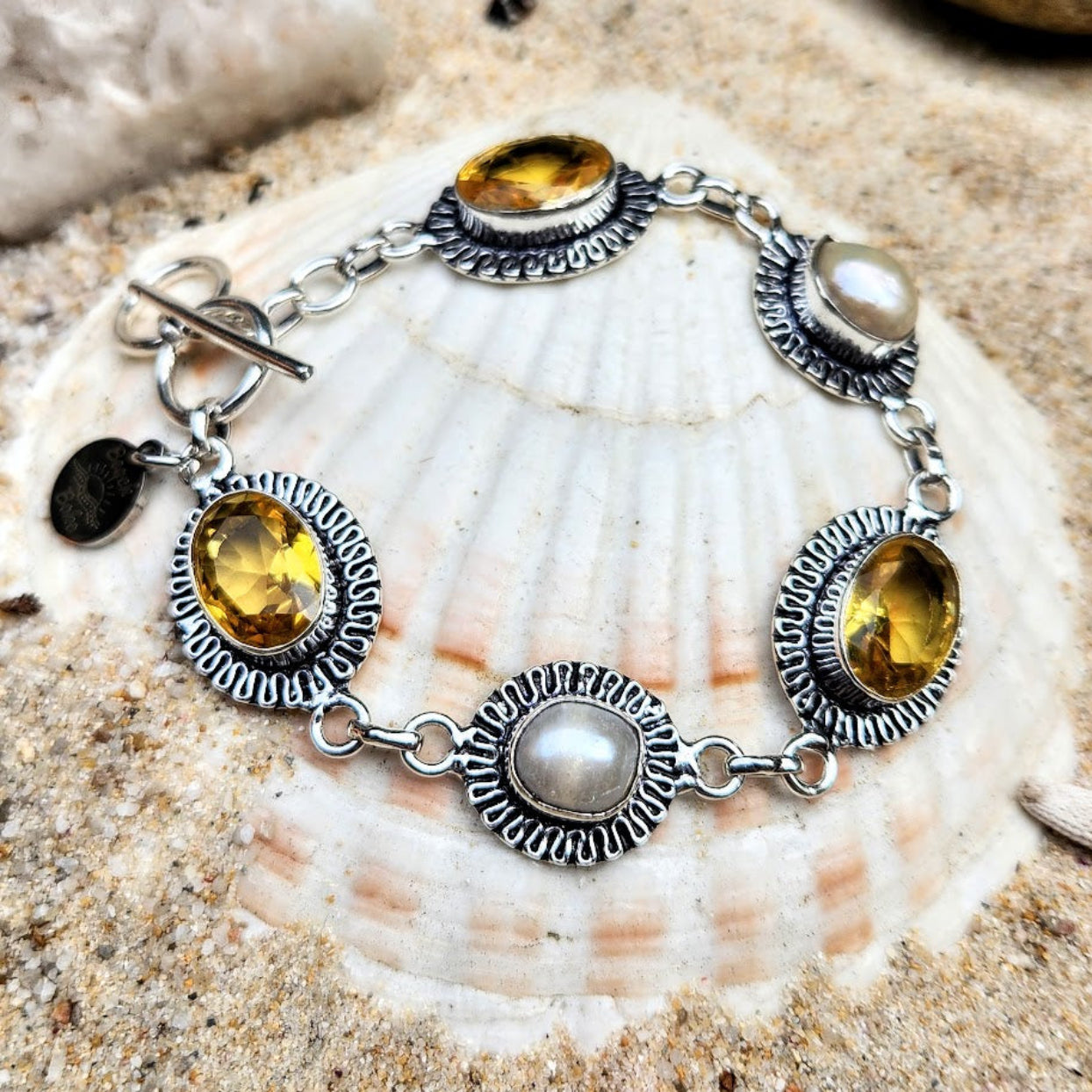 SUNSHINE BAROQUE - FRESH WATER BAROQUE PEARLS' & CITRINE 925 BRACELET