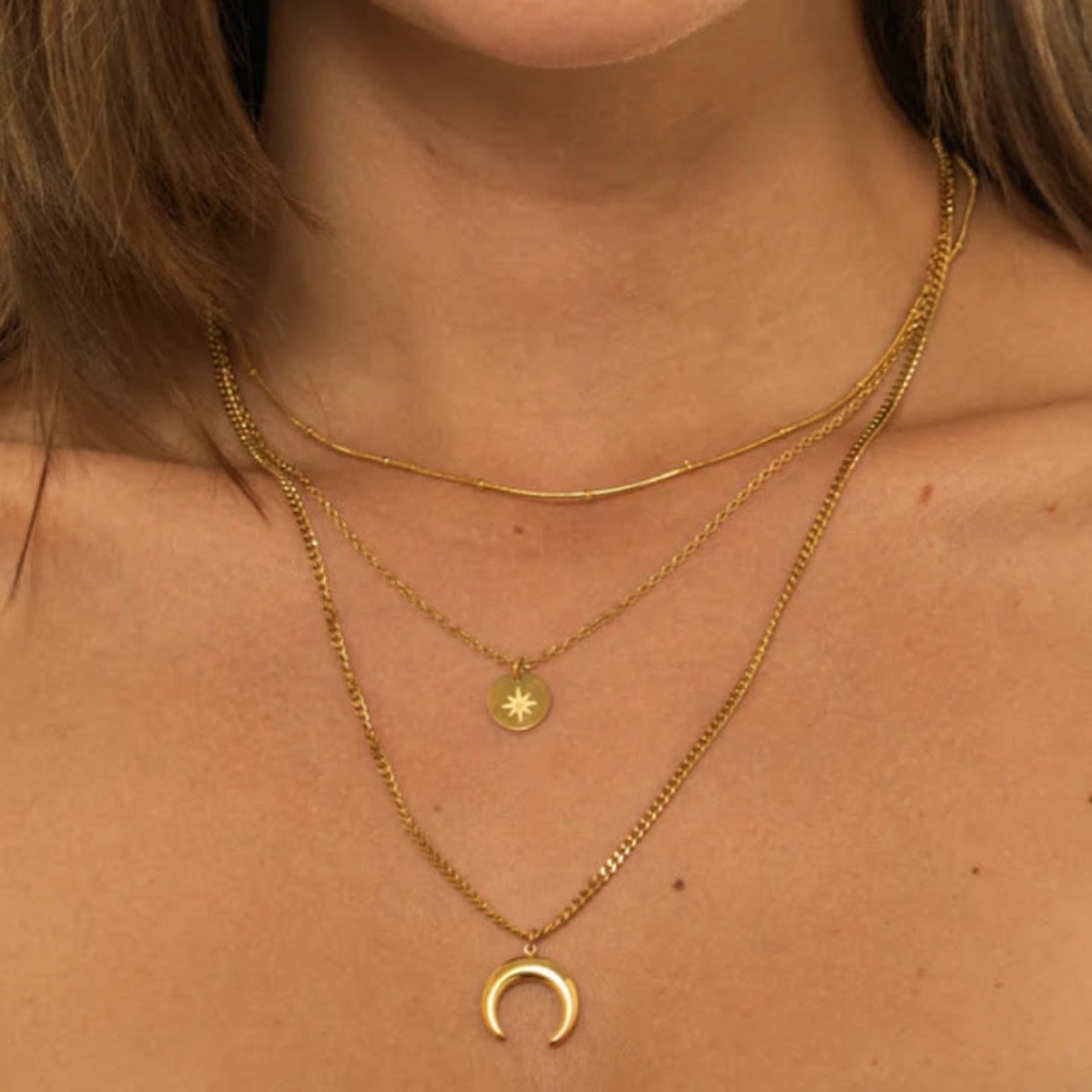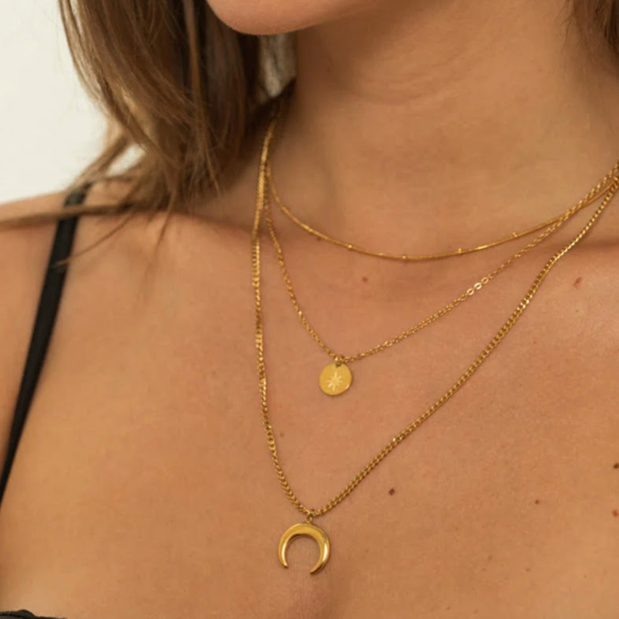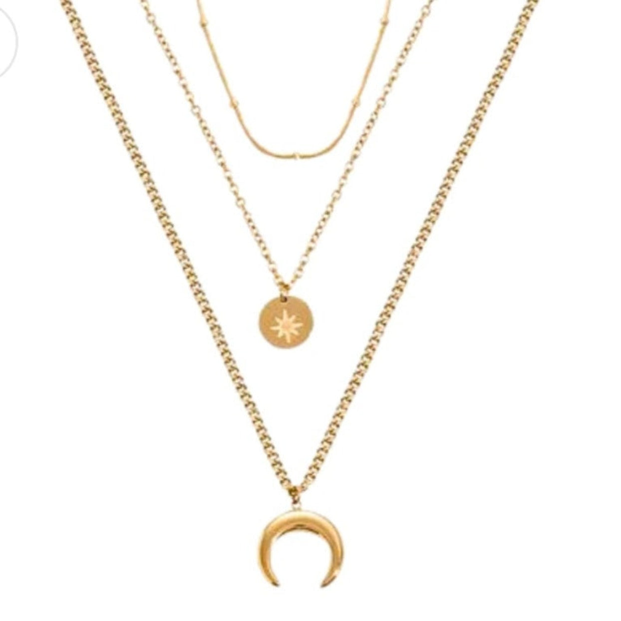 LAYERED MOON & STAR GOLD WATERPROOF NECKLACE