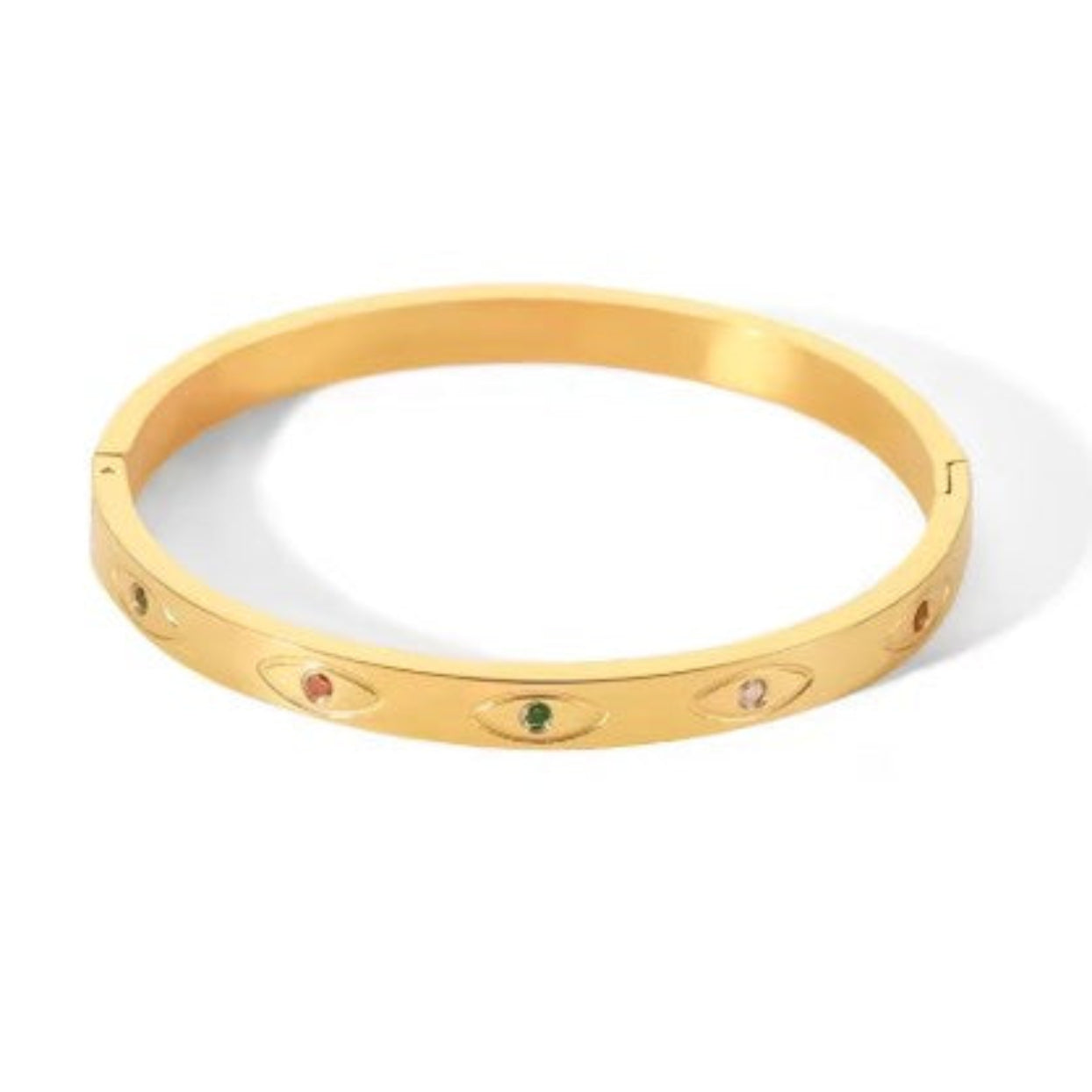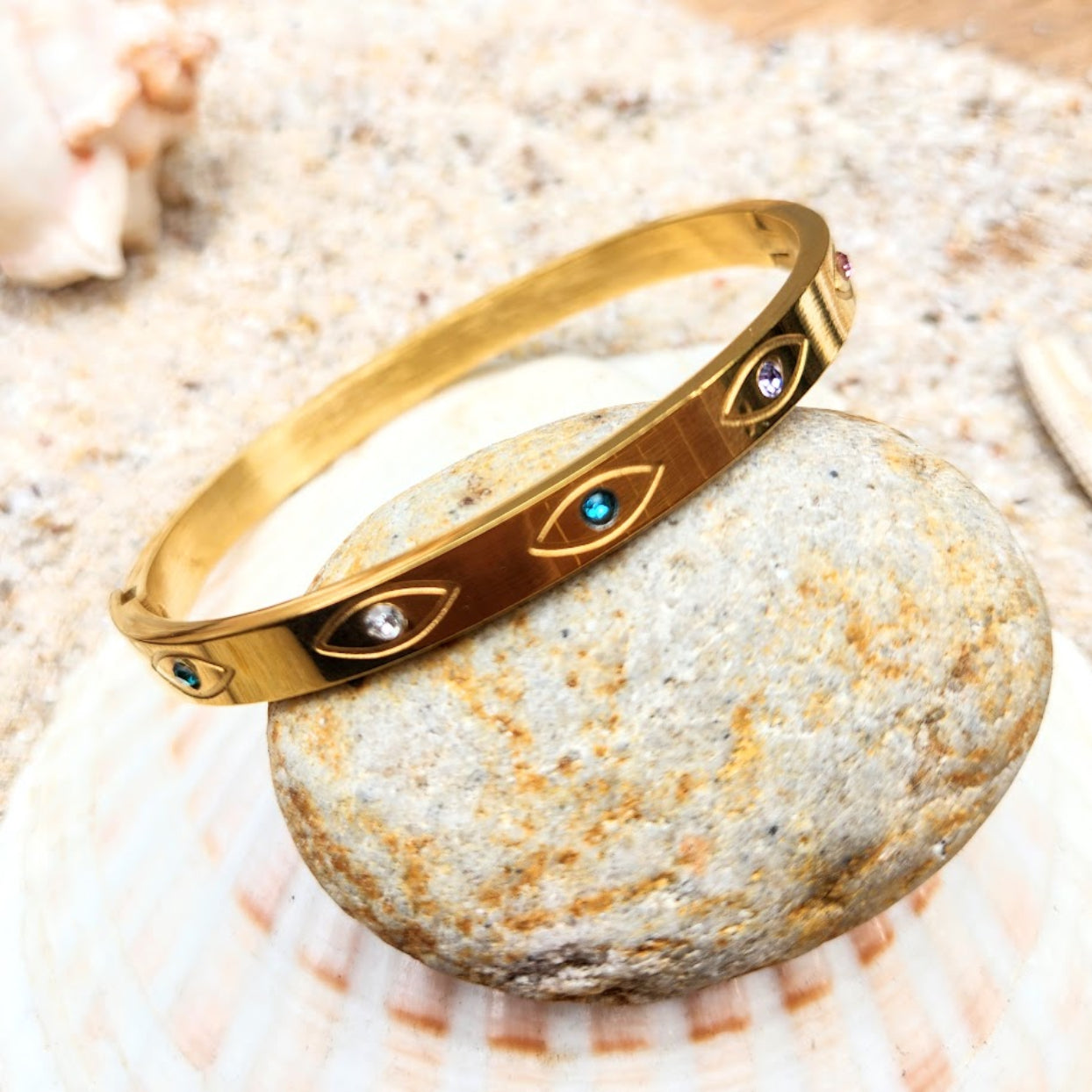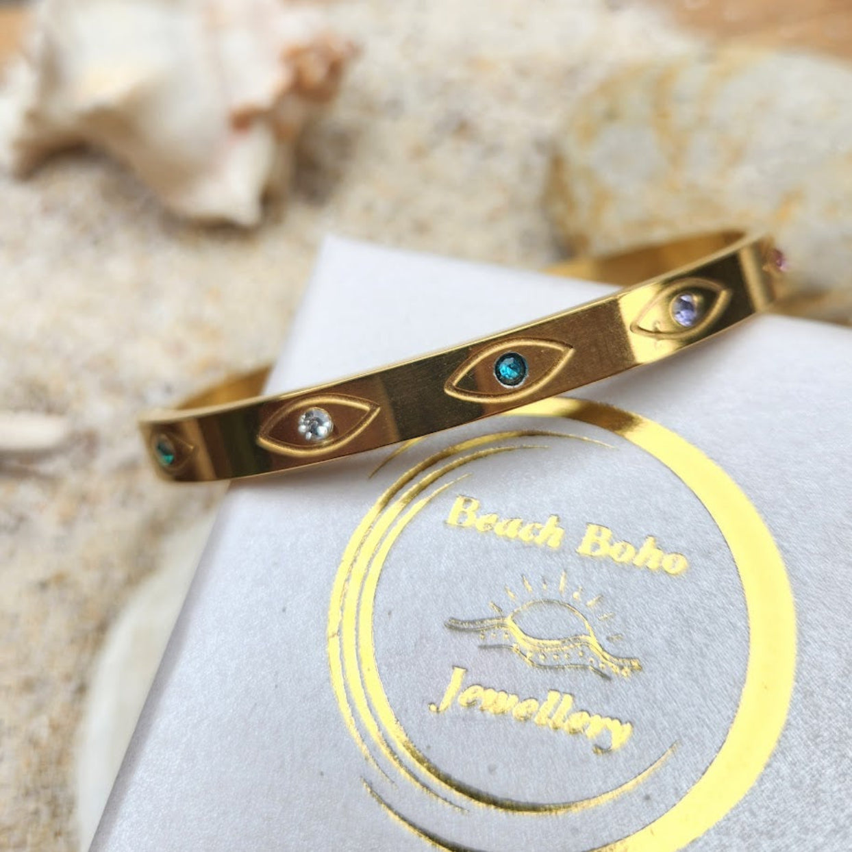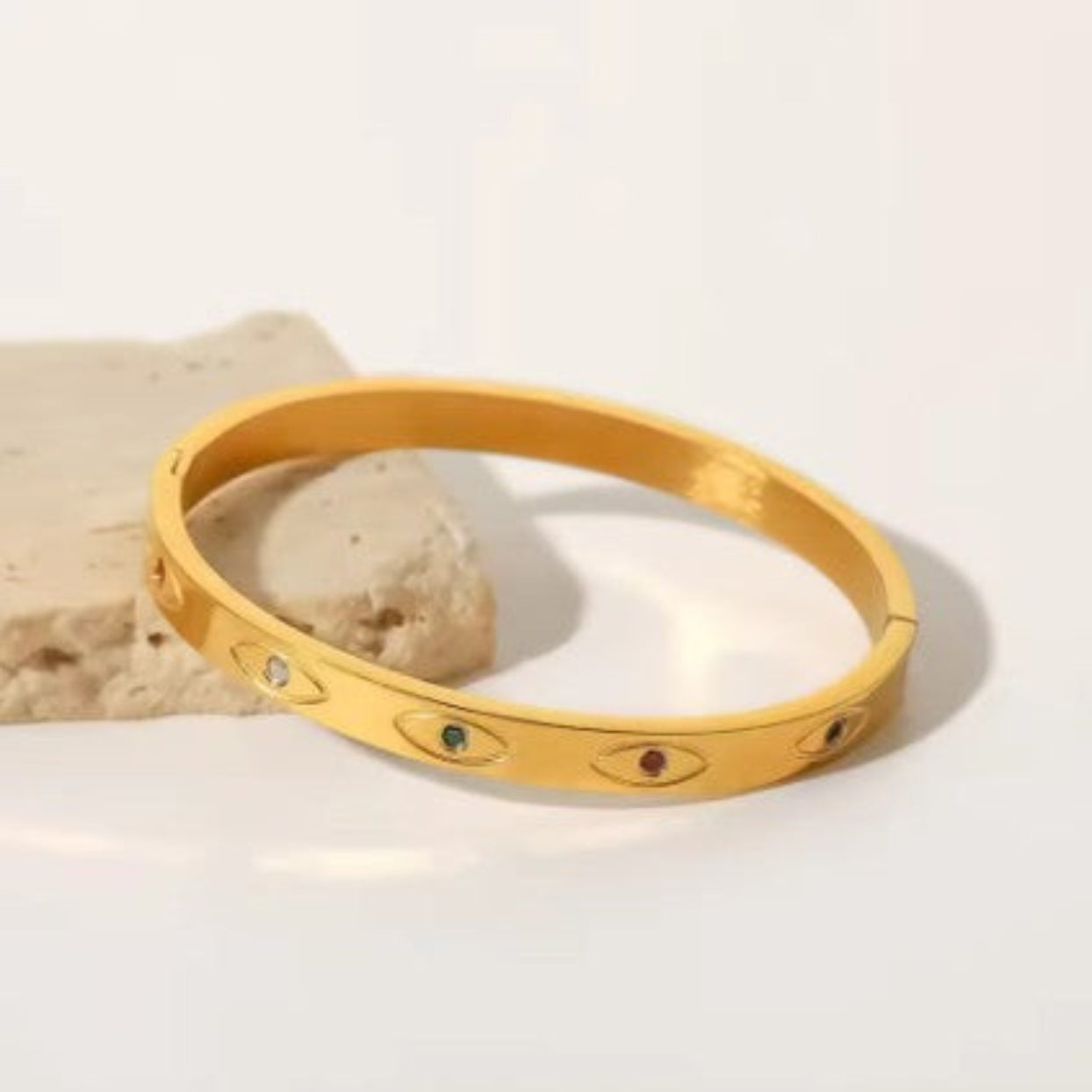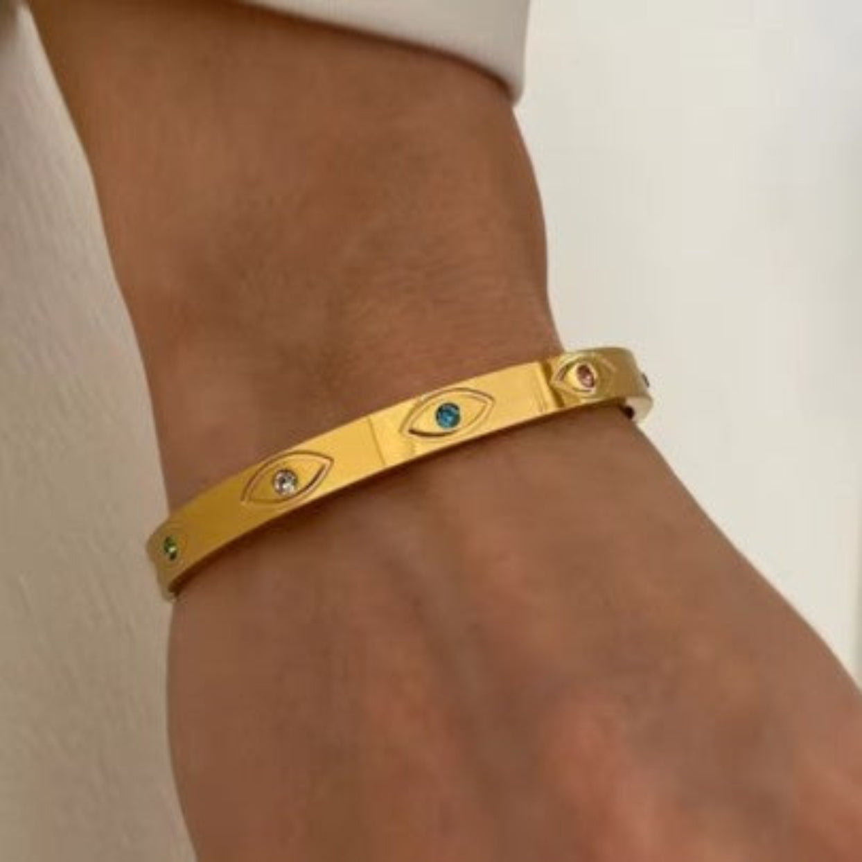 SEE ALL - 18 CT GOLD EVIL EYE WATERPROOF CZ CUFF BRACELET
