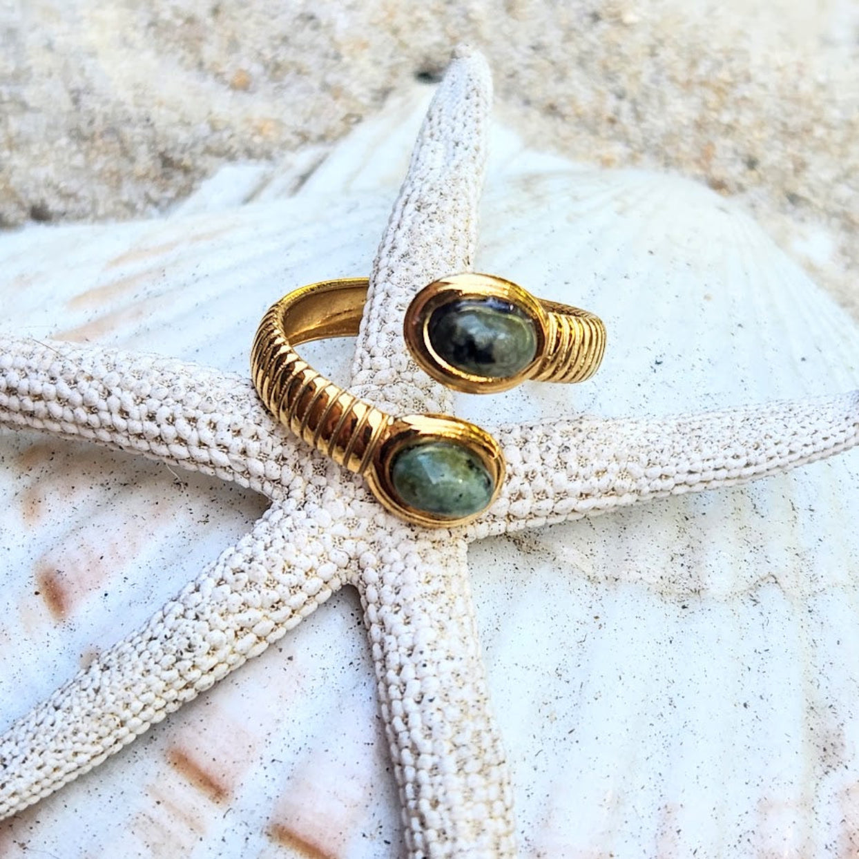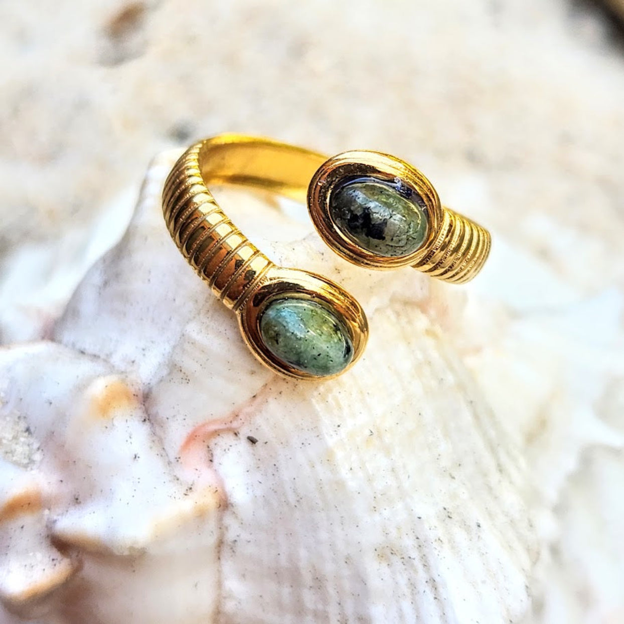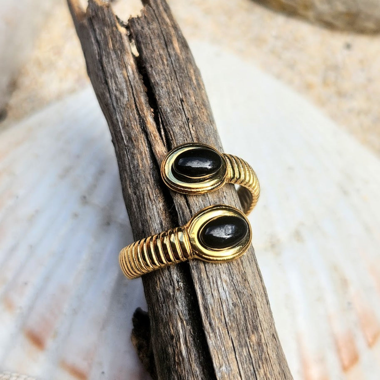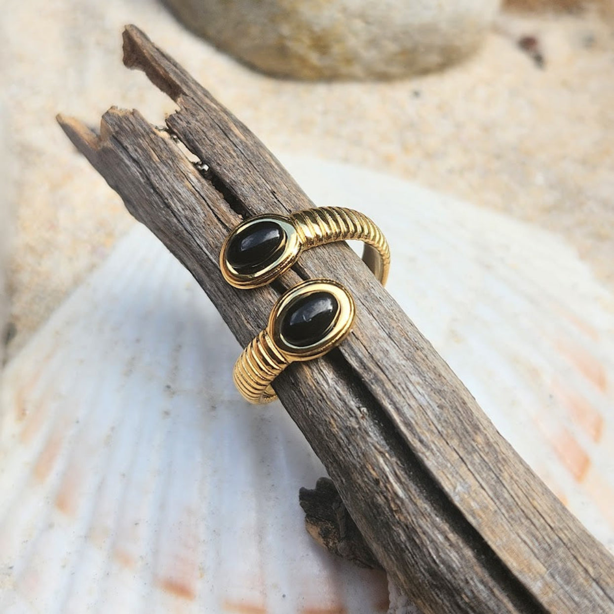 DOUBLE TURQUOISE OR ONYX - WATERPROOF ADJUSTABLE 18K GOLD RINGS