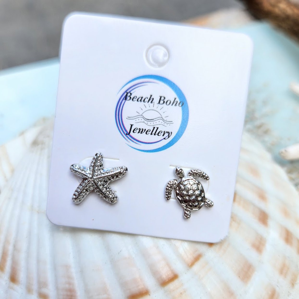 925 Silver plated Turtle Stud Earrings with 925 Posts