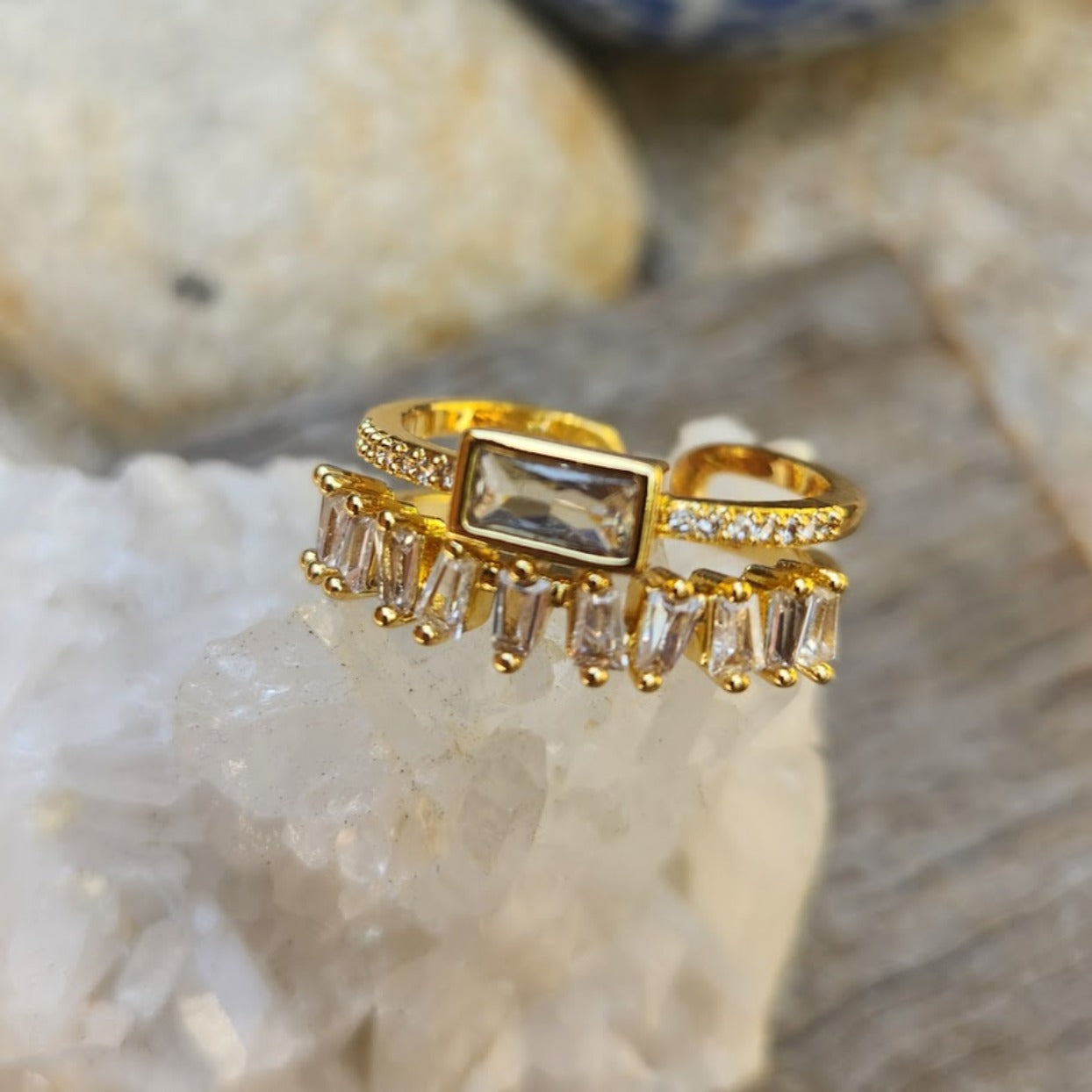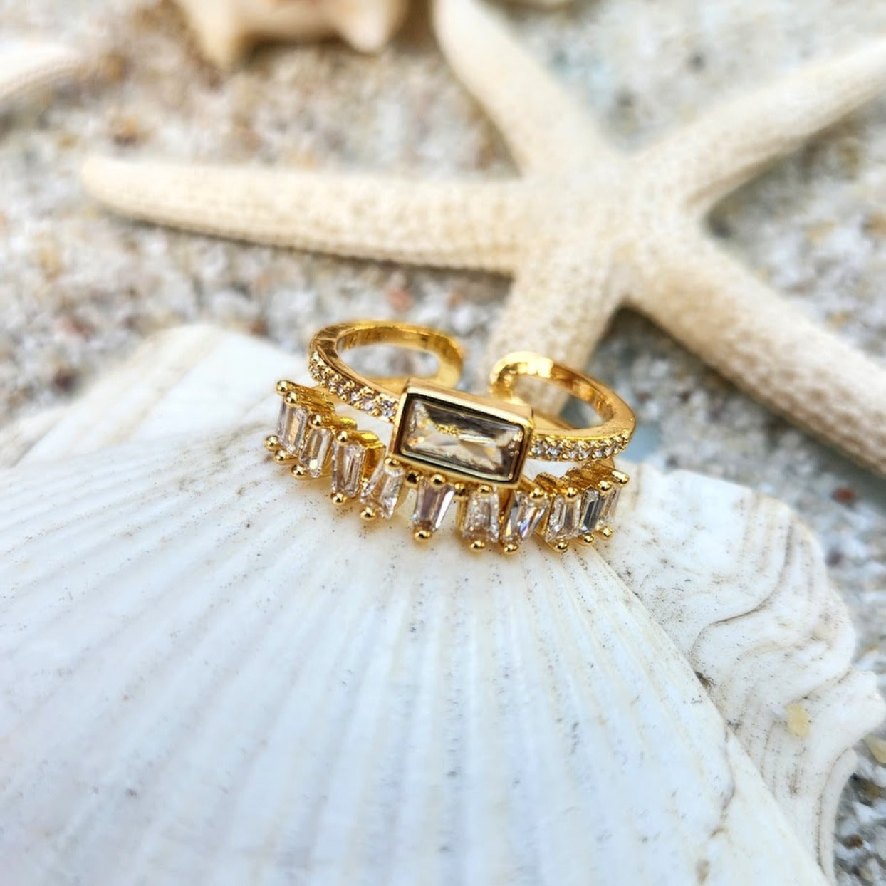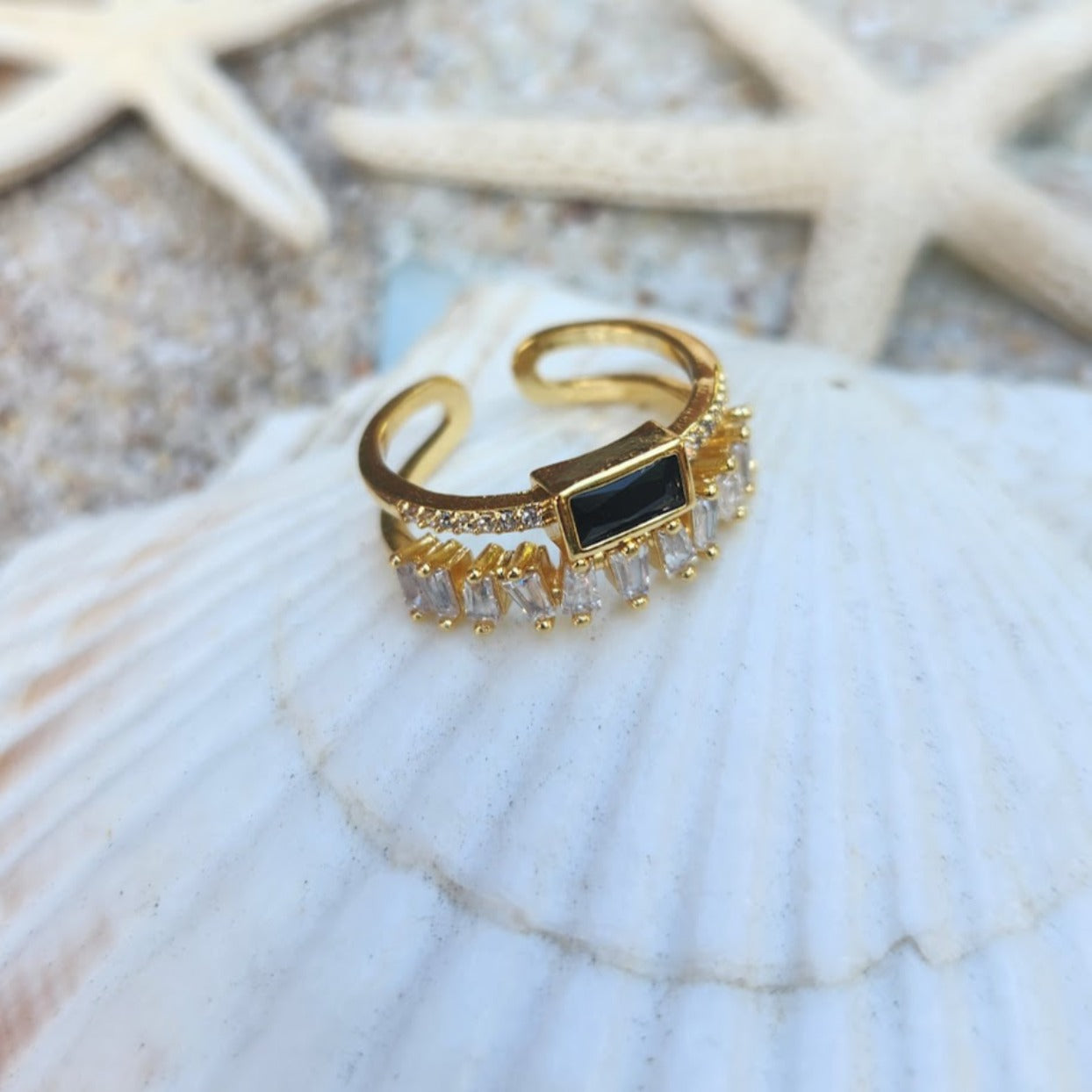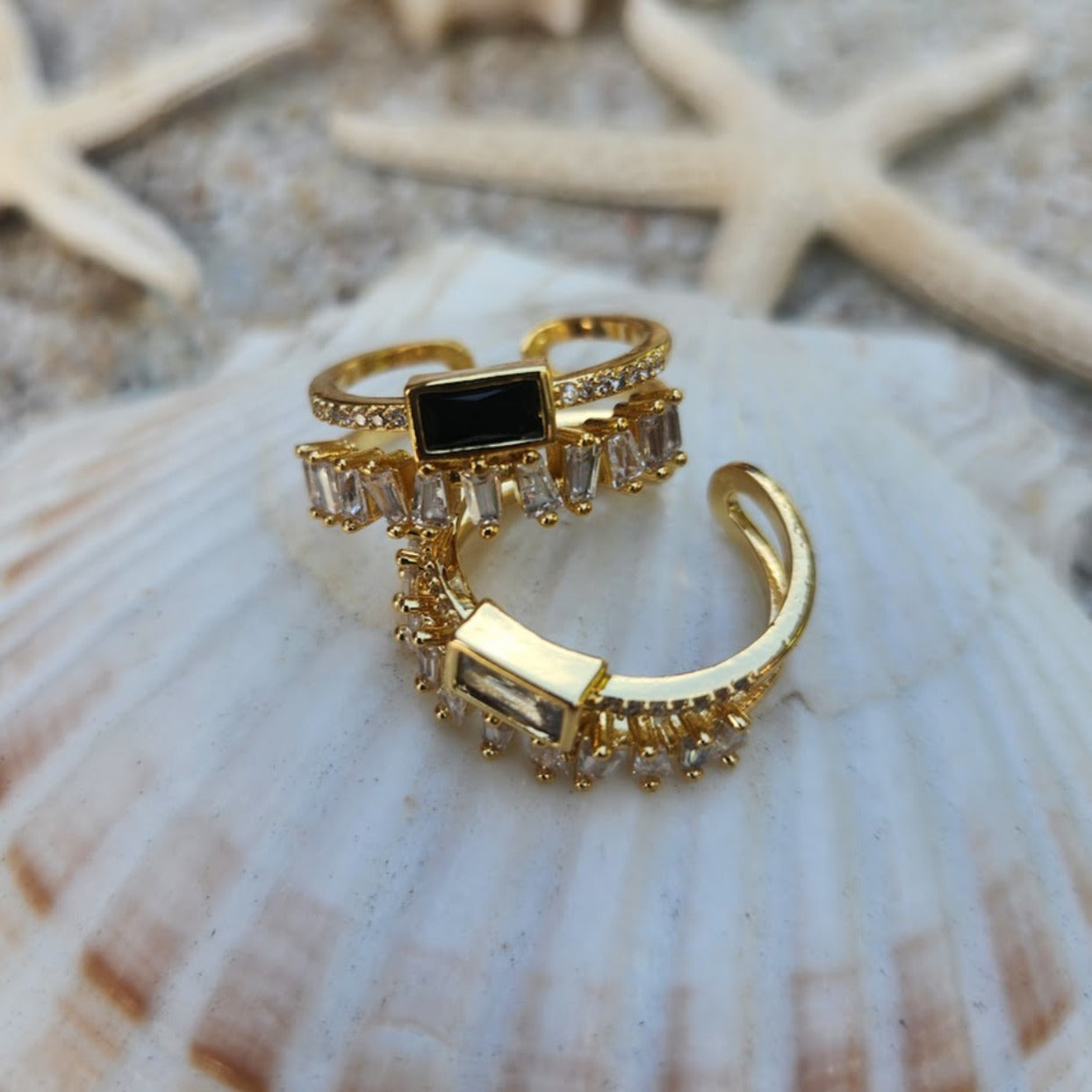 18k gold plated Black or Clear Crystal Cubic Zirconia - Easily Adjustable Unique Designed Ring