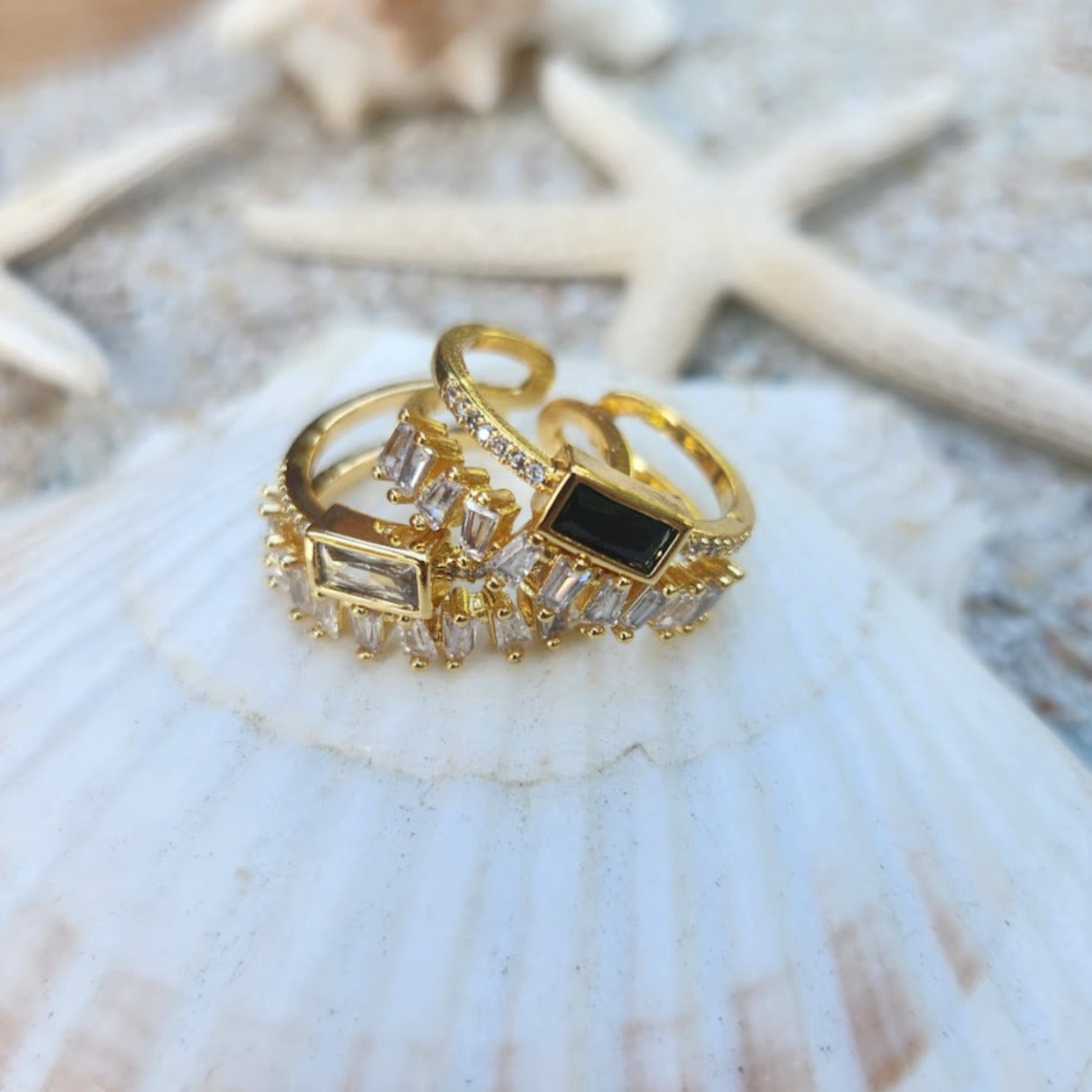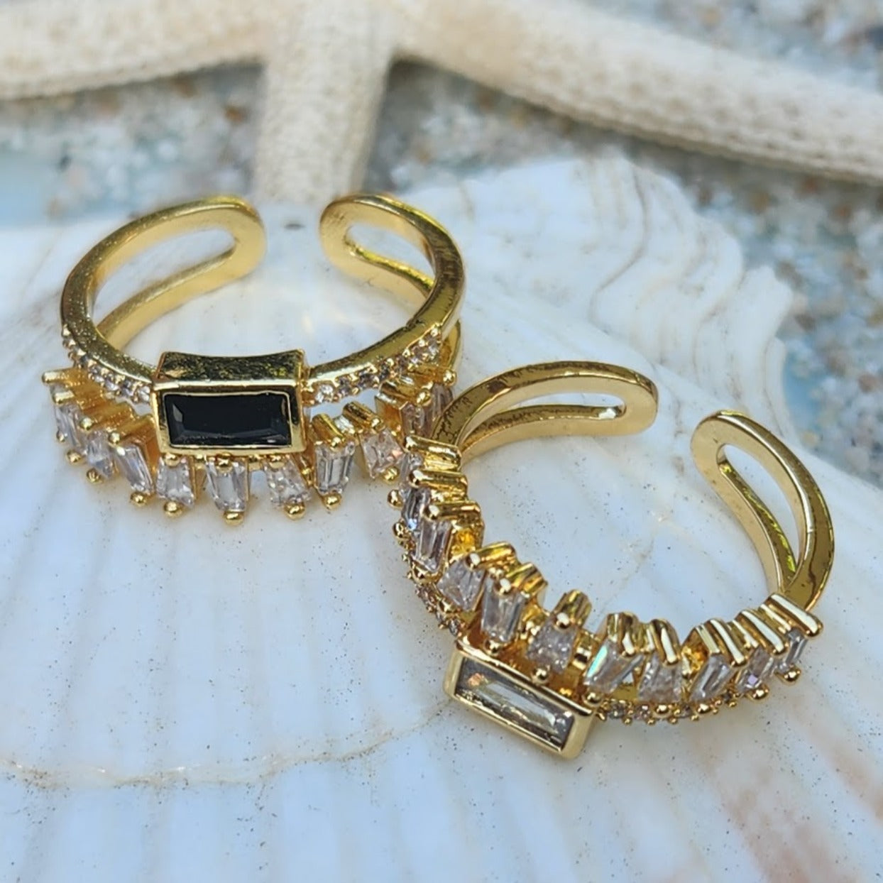 BLACK & WHITE - ADJUSTABLE BLACK OR CRYSTAL WATERPROOF GOLD RINGS