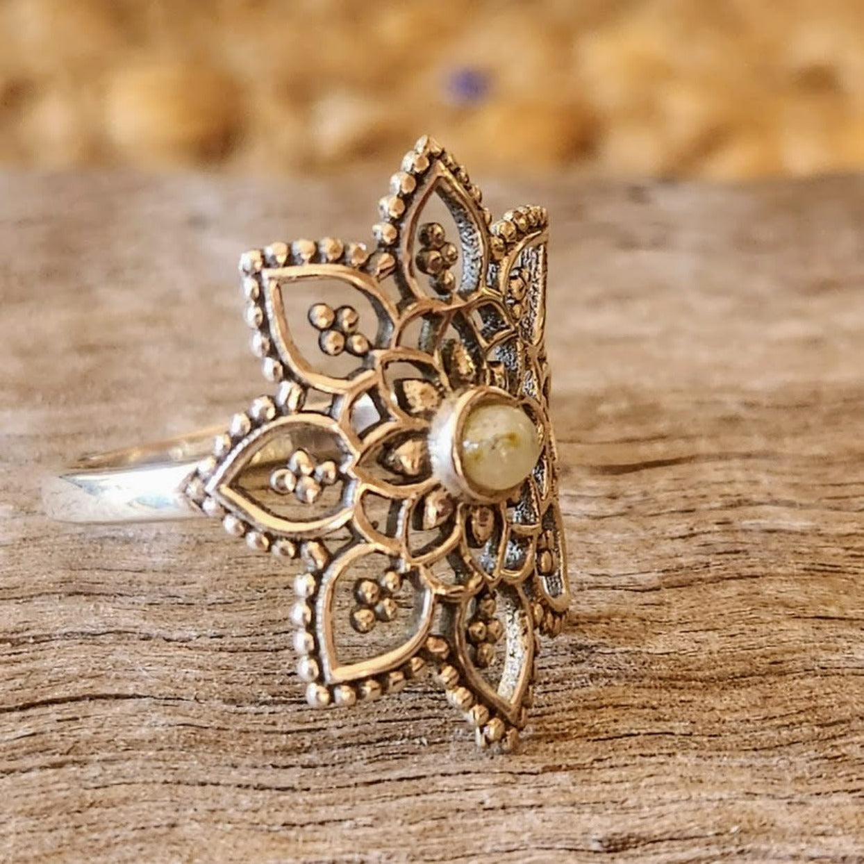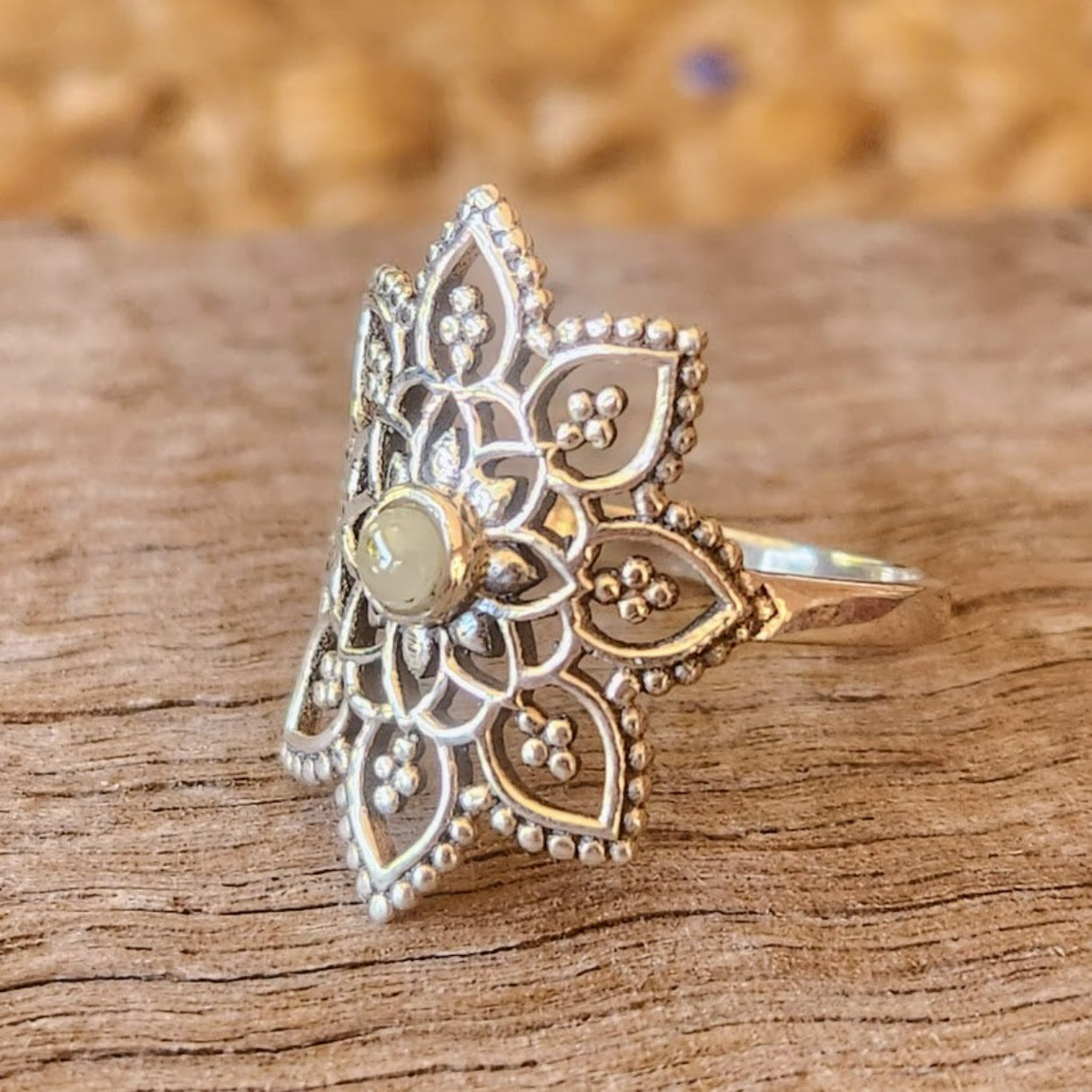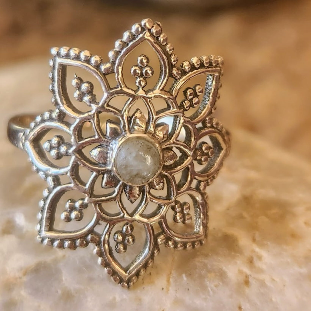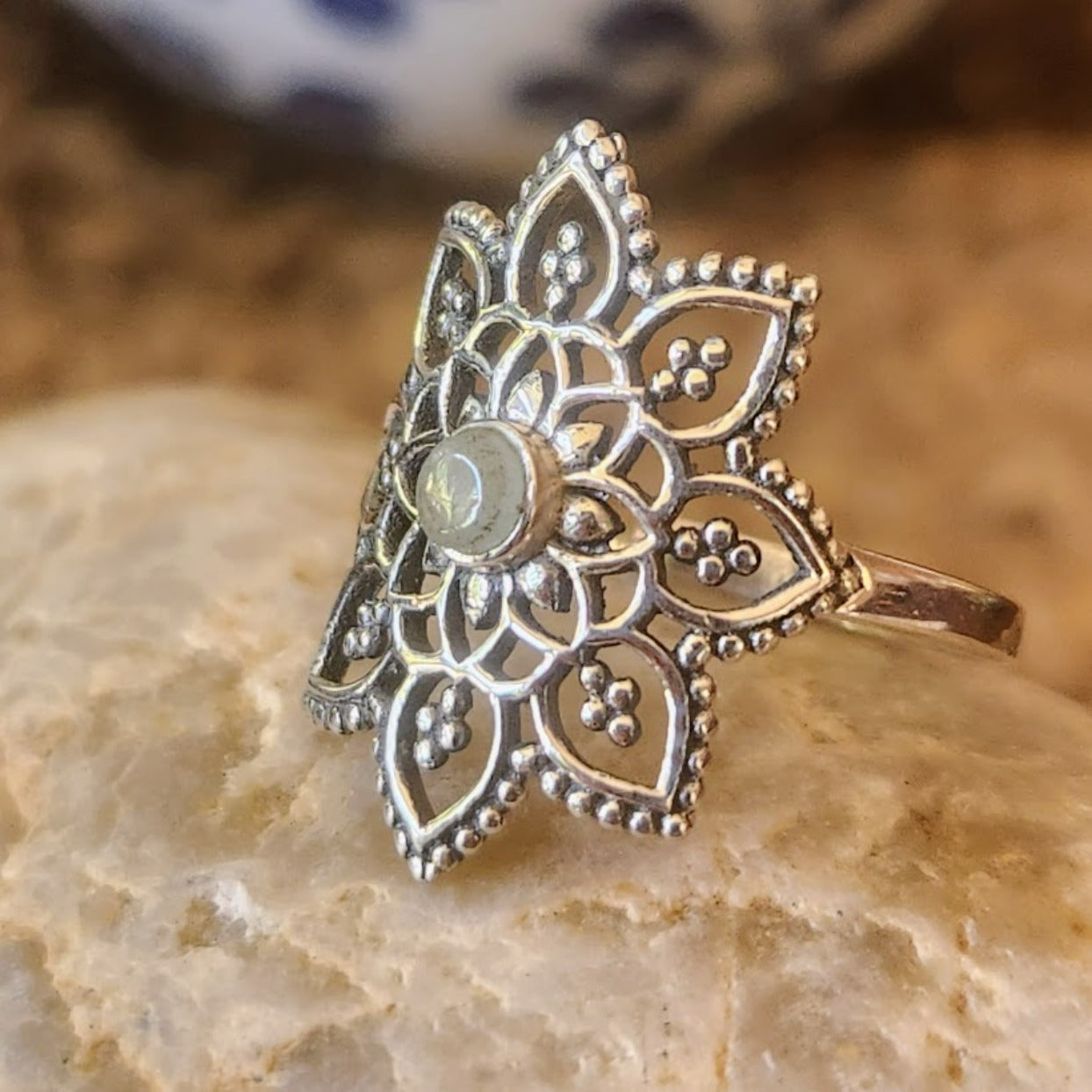 Moonstone Mandala Style 925 Sterling Silver Ring