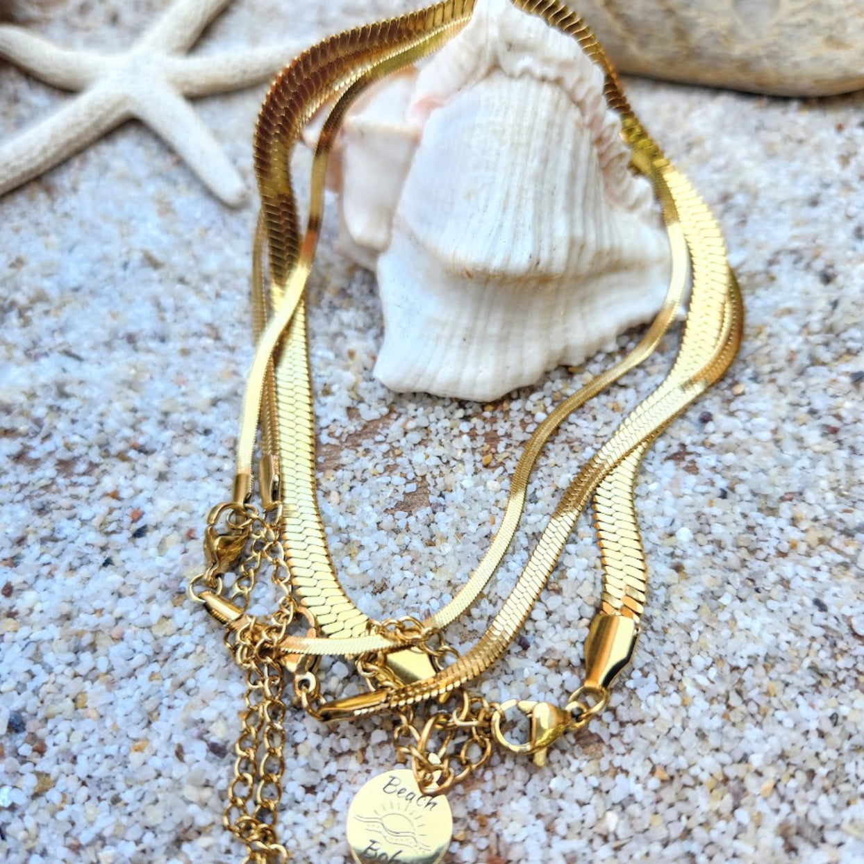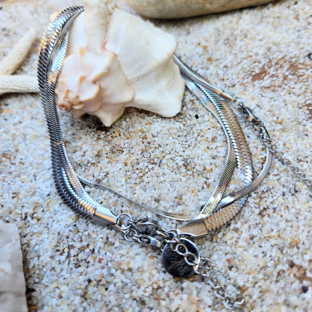 JEU DE TROIS (SET OF 3) 18K GOLD OR SILVER WATERPROOF SNAKE CHAIN ANKLETS