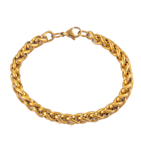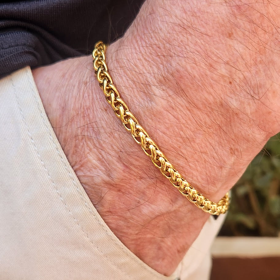 MEN'S 18K GOLD OR SILVER WATERPROOF WHEAT CHAIN BRACELET