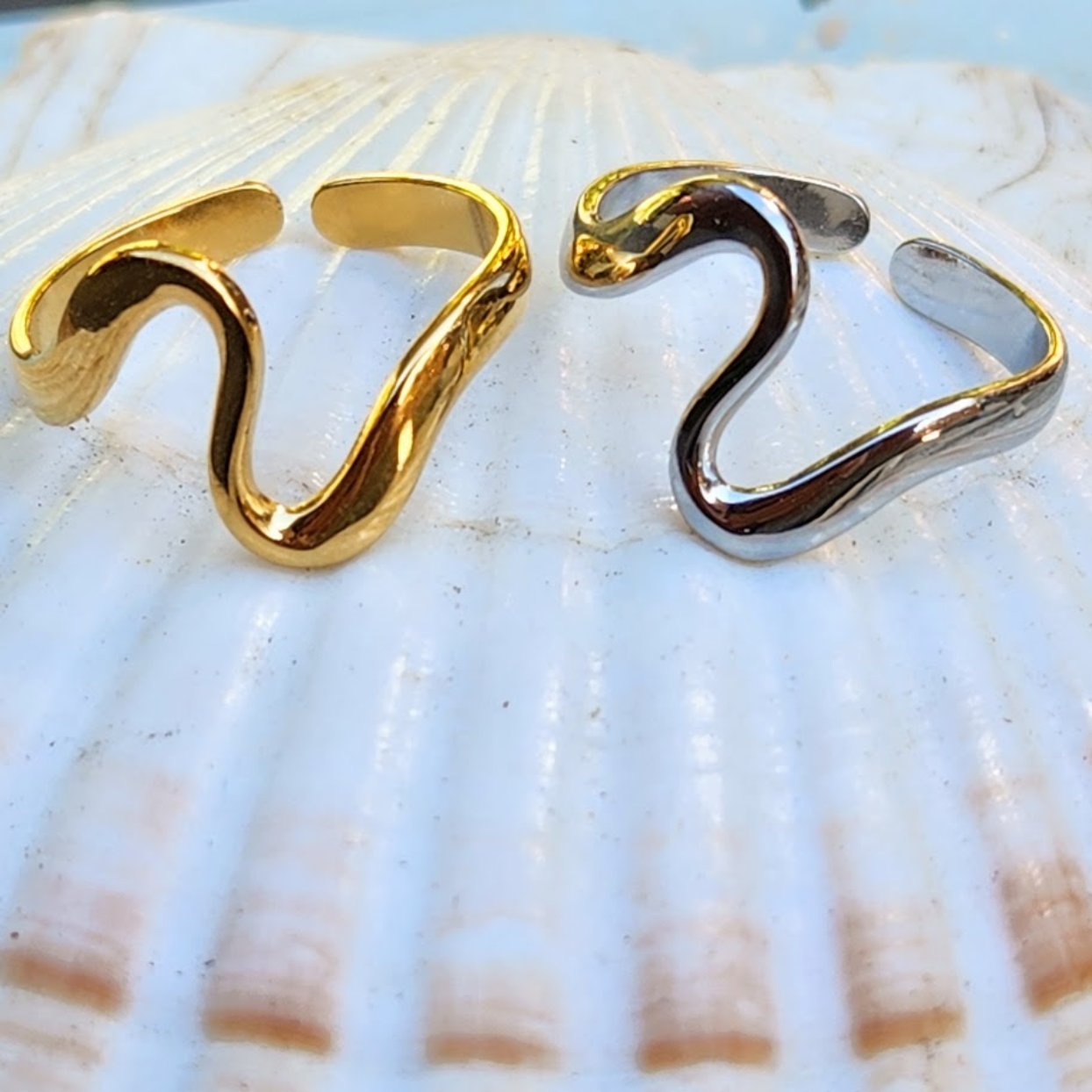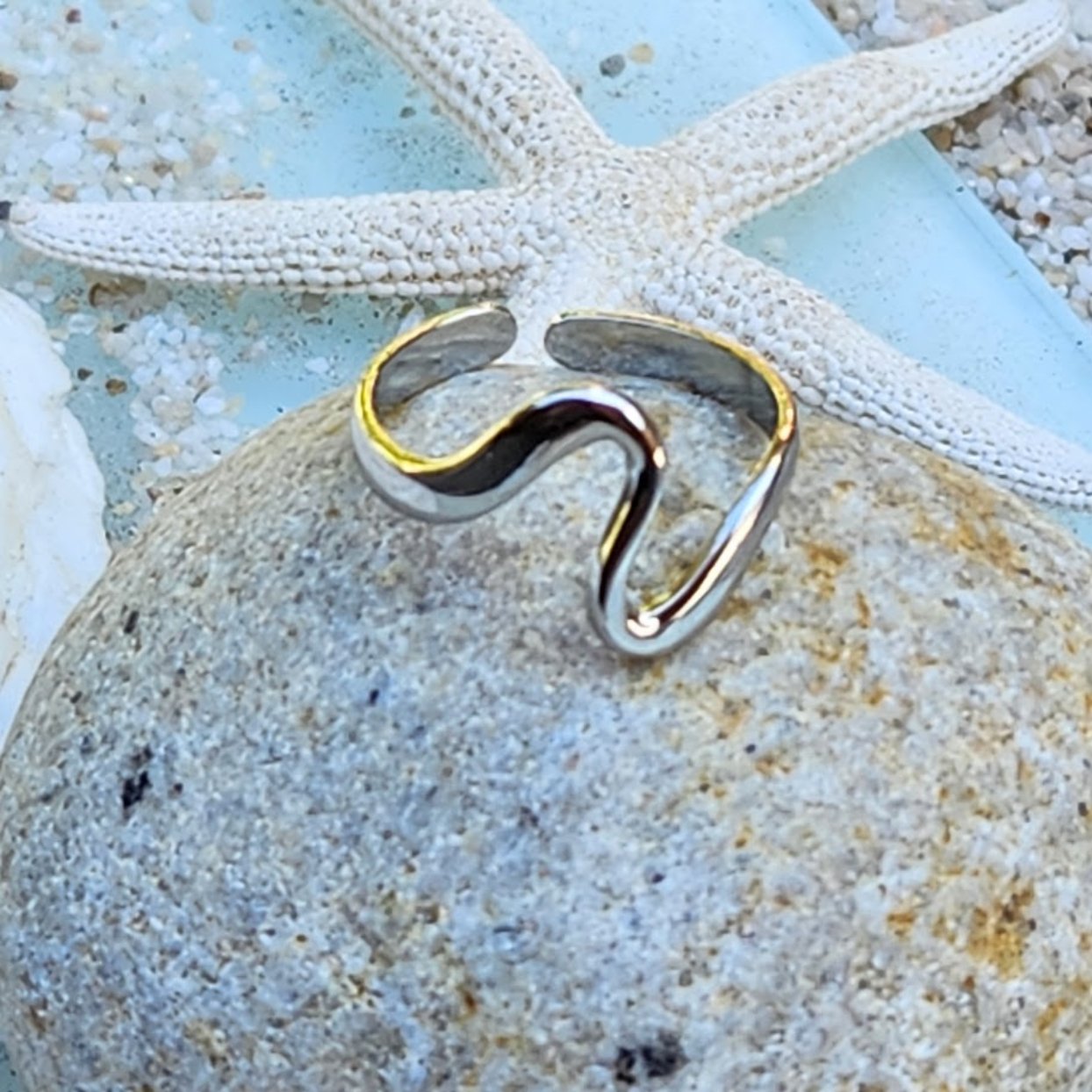 BEACH WAVES - ADJUSTABLE WATERPROOF GOLD/ SILVER RING