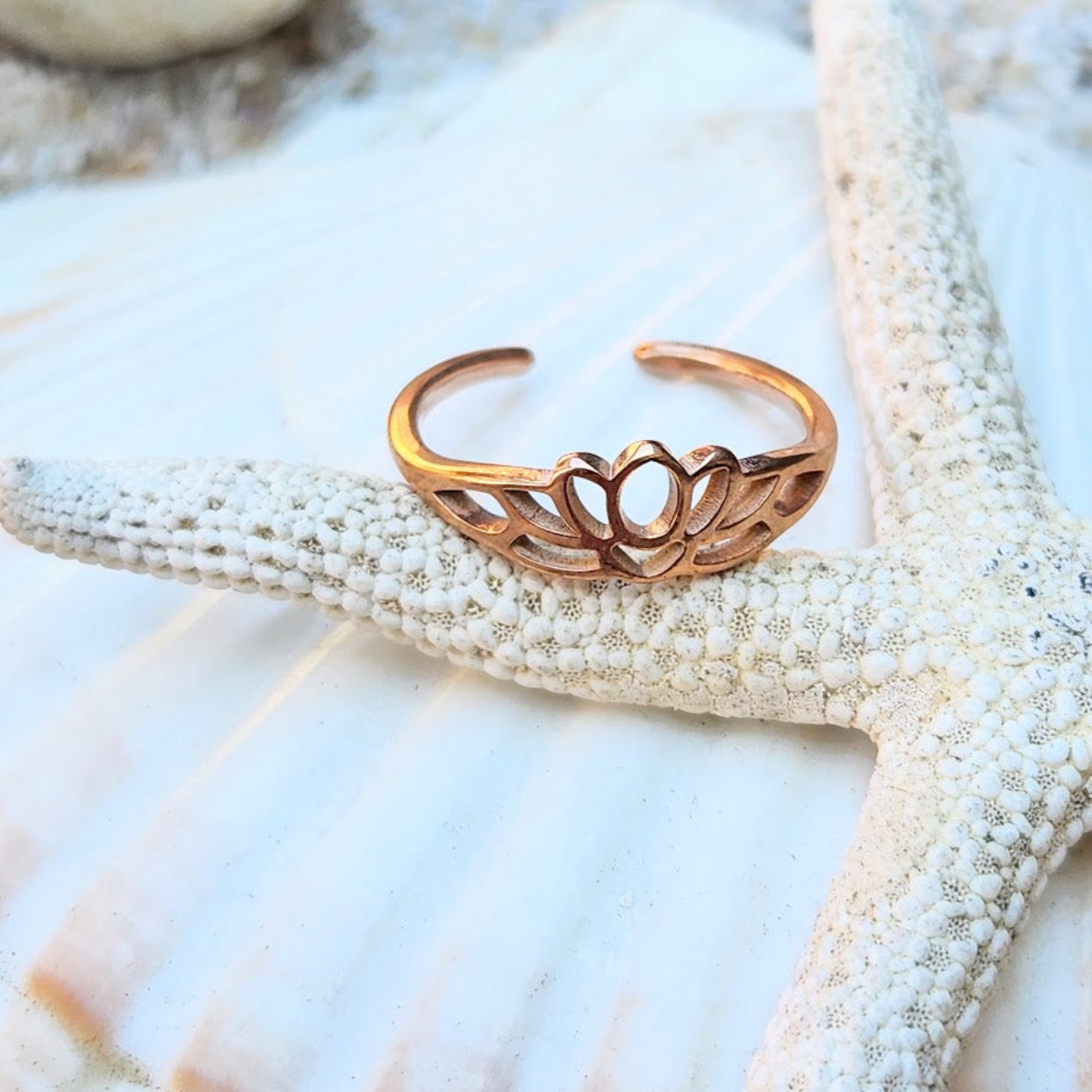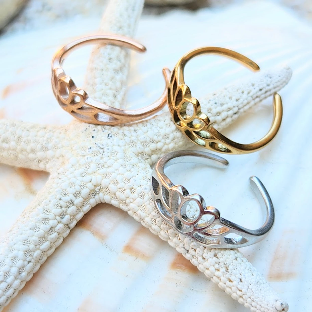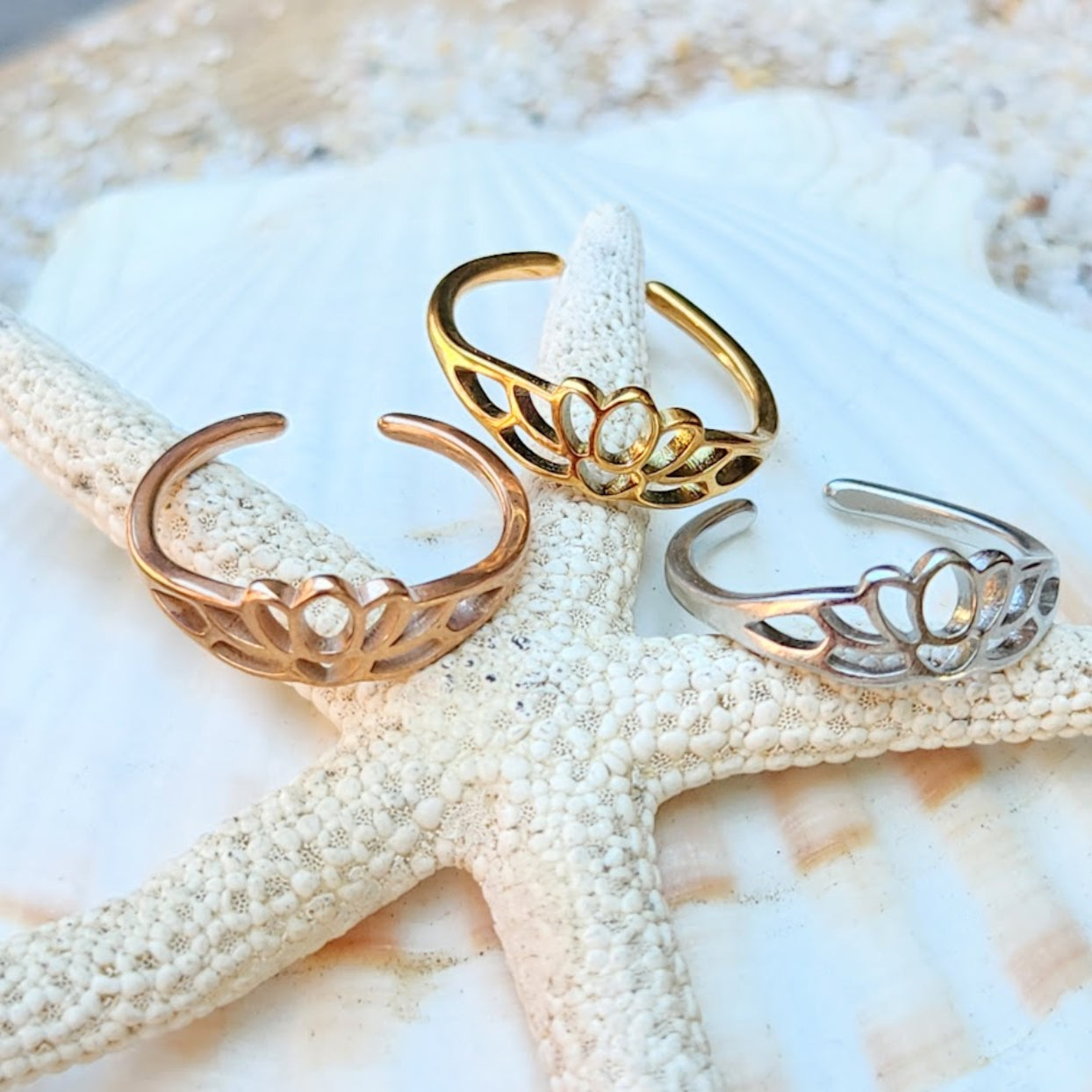 Summer Vibes, for Swimming... Waterproof Bohemian Lotus Toe Ring ... Choice off 18k gold plate / Silver / Rose Gold Bohemian Toe Rings Or Midi Ring... strength of medical grade 316 stainless steel.