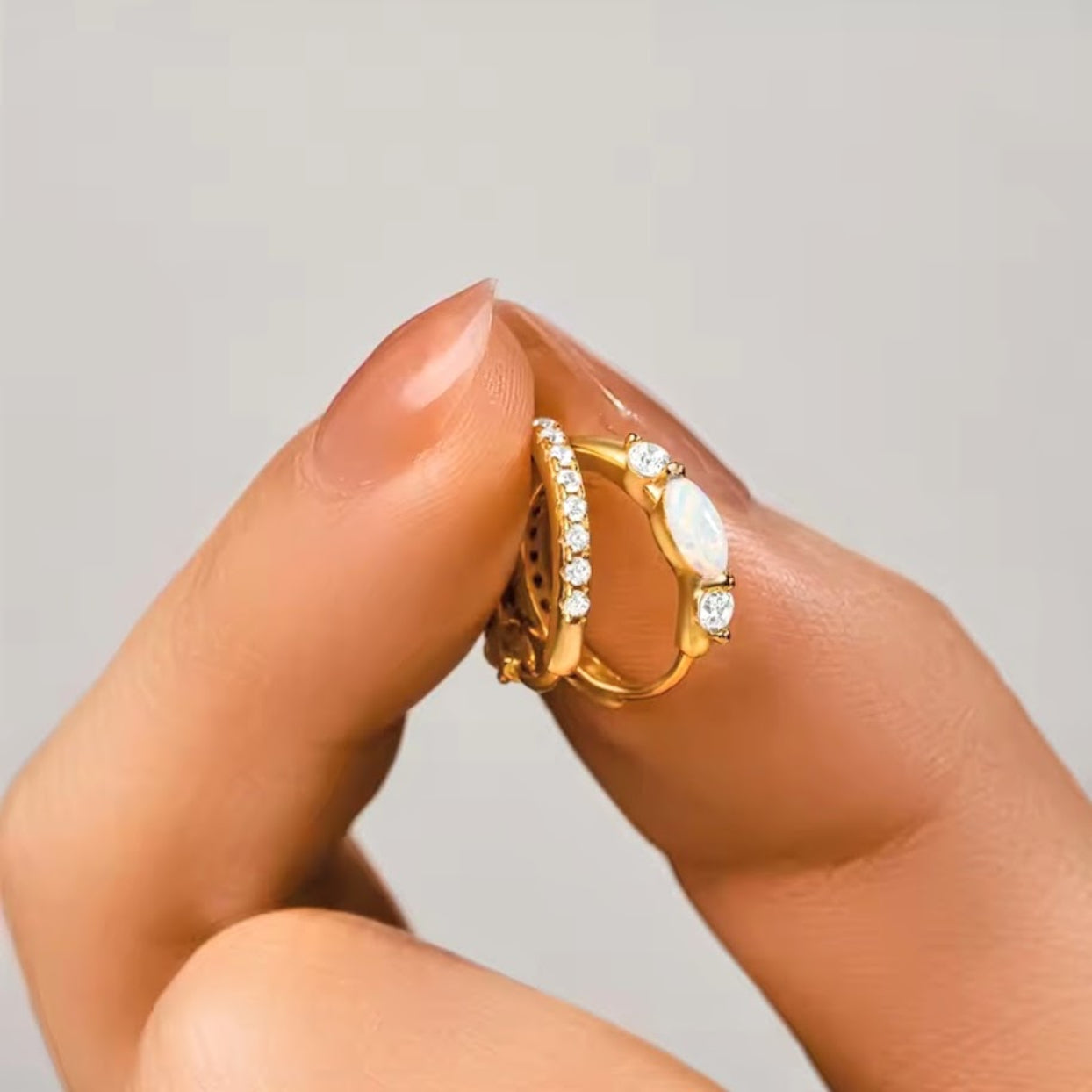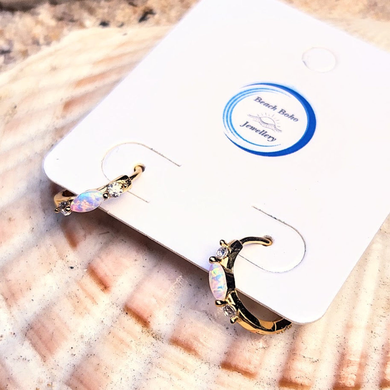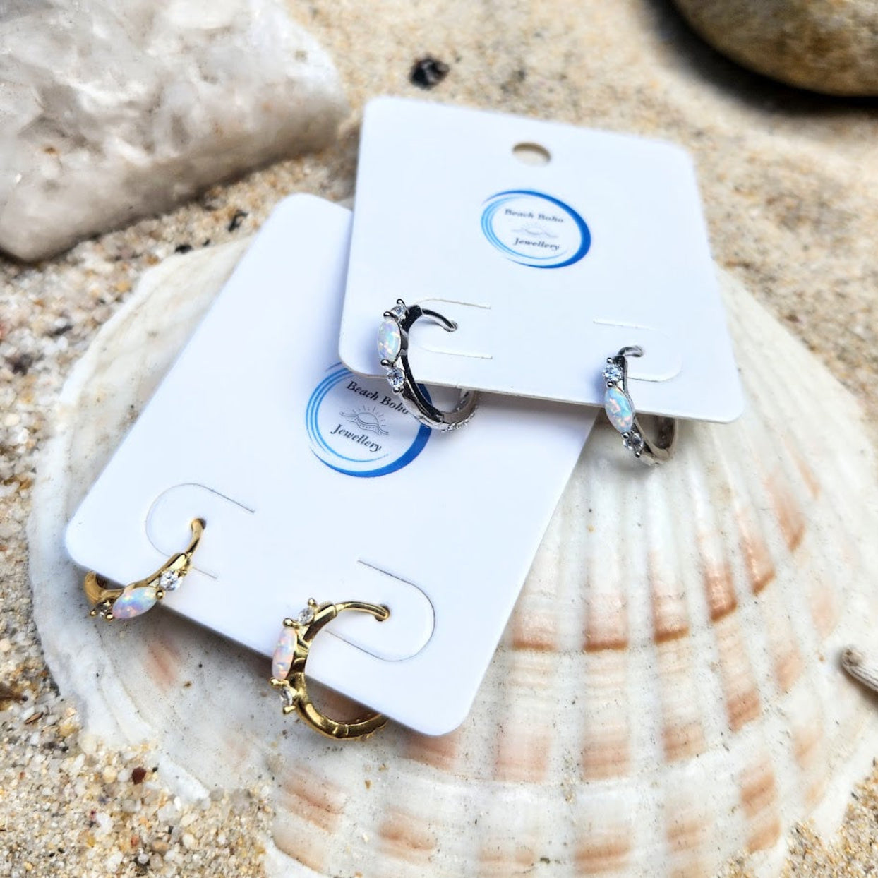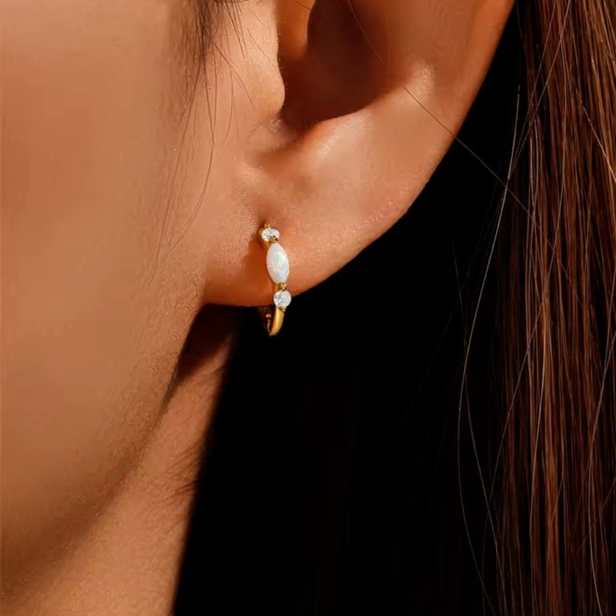 CLARITY HOOPS - OPAL & CZ 925 HOOP EARRINGS GOLD OR SILVER