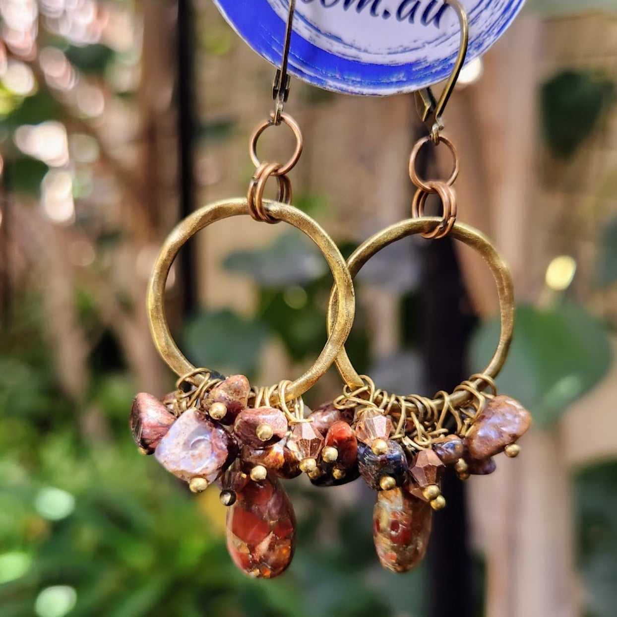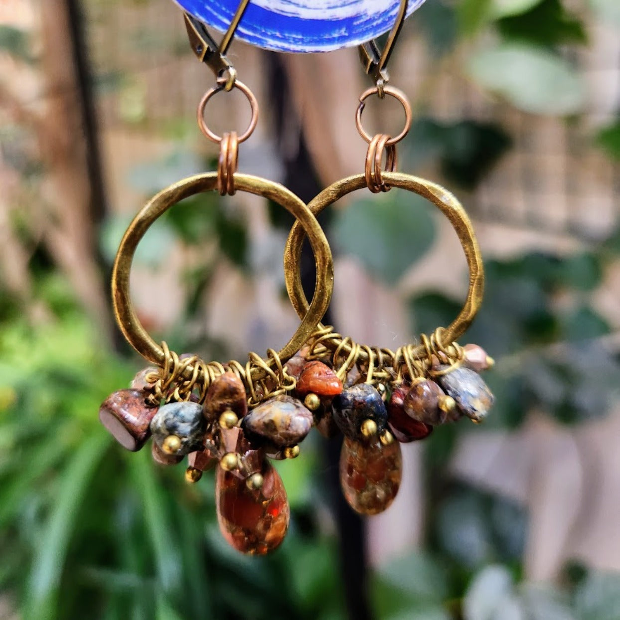 Handmade Mojave Turquoise (Style of Copper Turquoise) and Agate Mixed Stones / with Copper Crystals / Copper and Brass Tribal Style Dangles