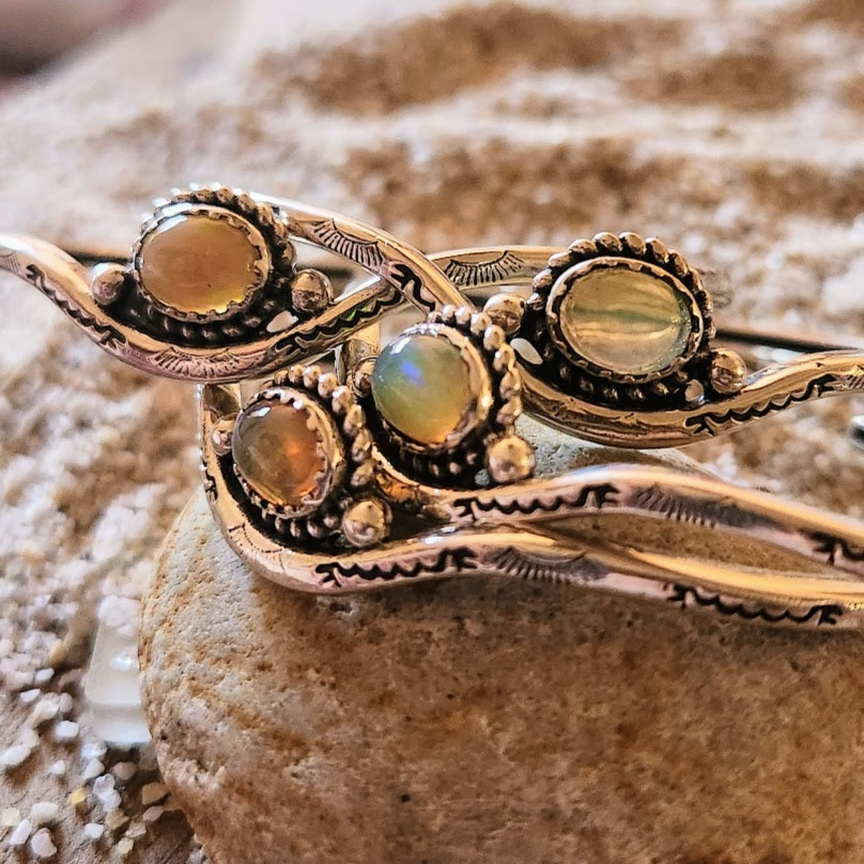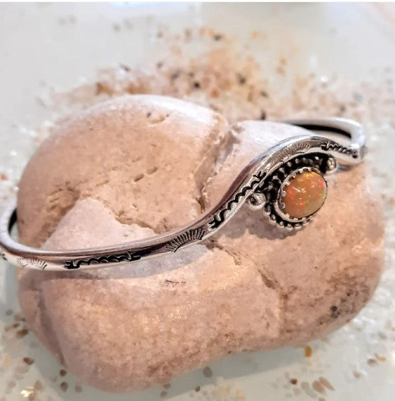 Uniquely Handmade Navajo Cuff Bracelets Pure Sterling Silver Available in Turquoise Or Australia Opal with Stunning Etched Design
