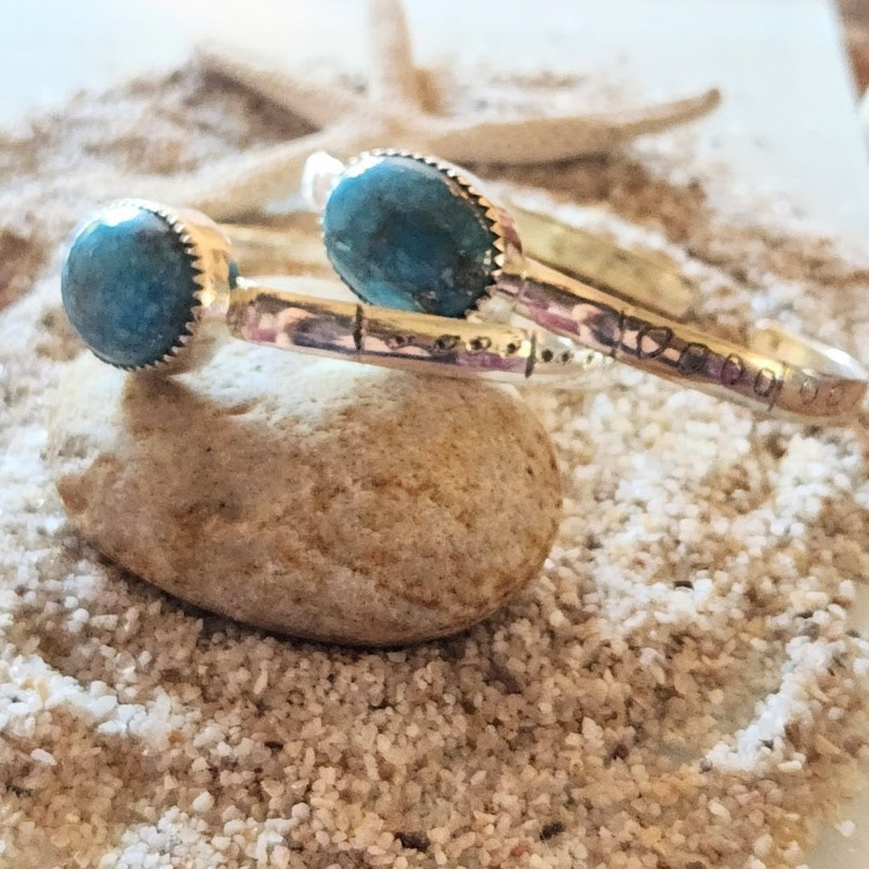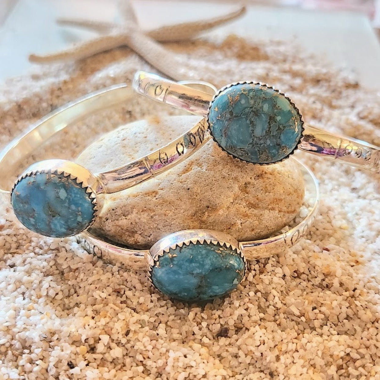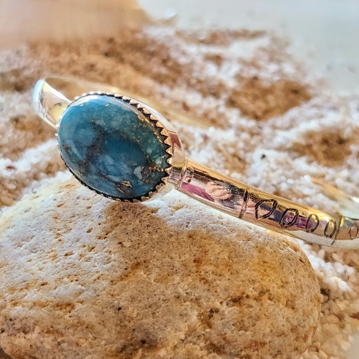 Handcrafted Navajo Styled Blue Turquoise Engraved 925 Sterling Silver Cuff / Each Piece Made with Natural Turquoise and Unique