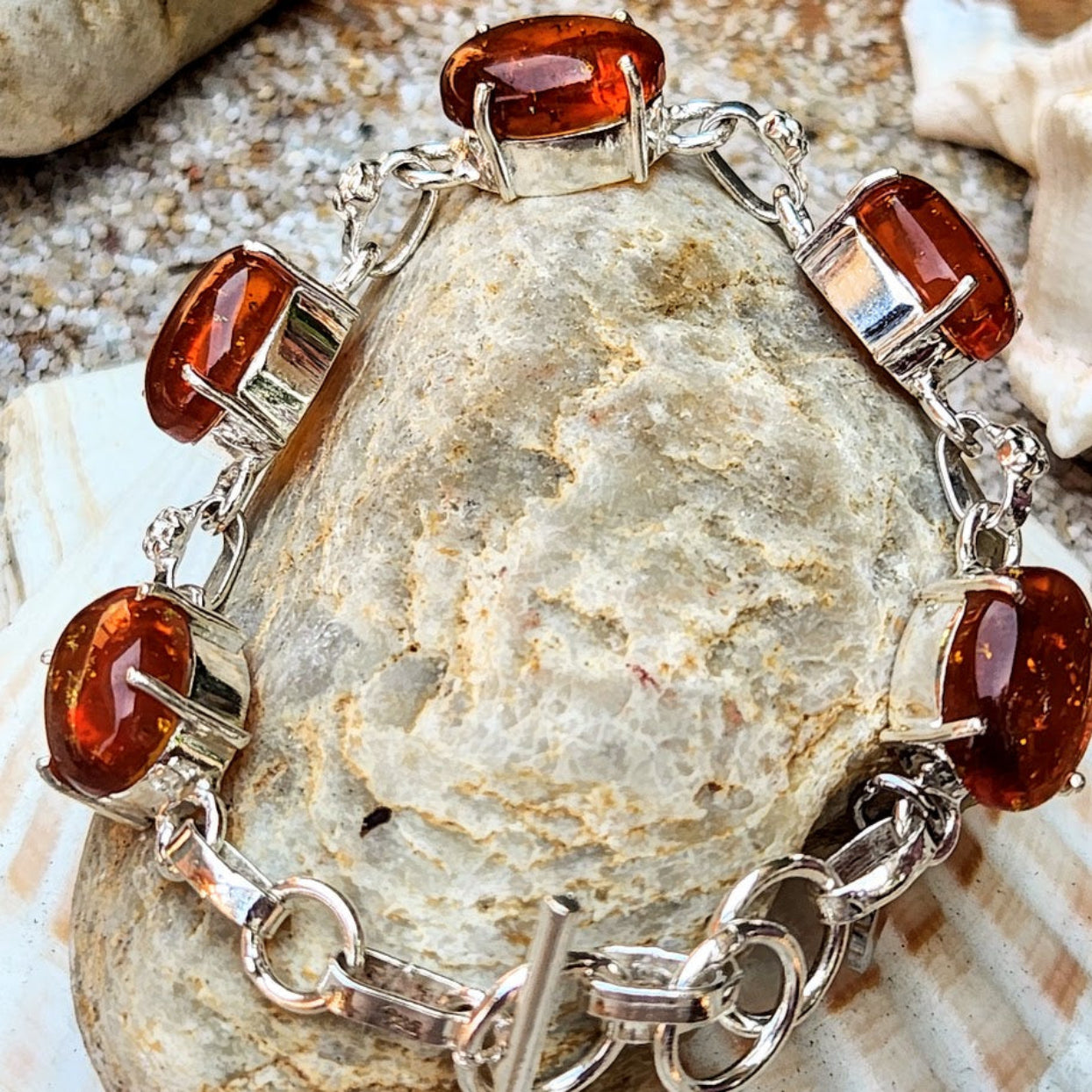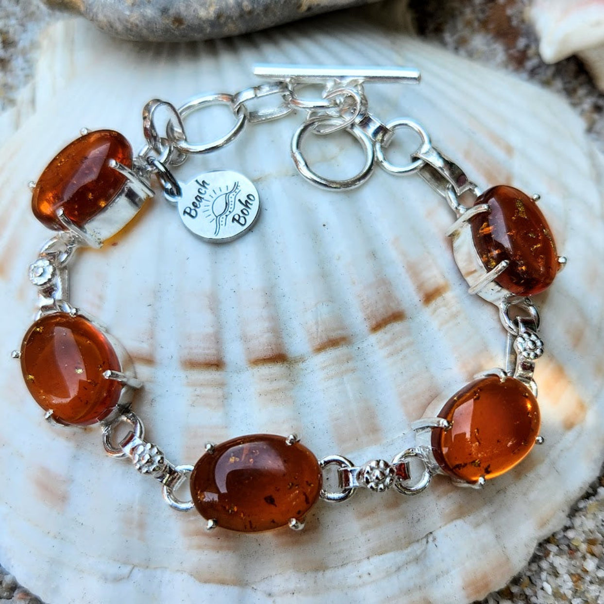 Beautiful Handmade Golden Baltic Amber Charm Toggle Bracelet