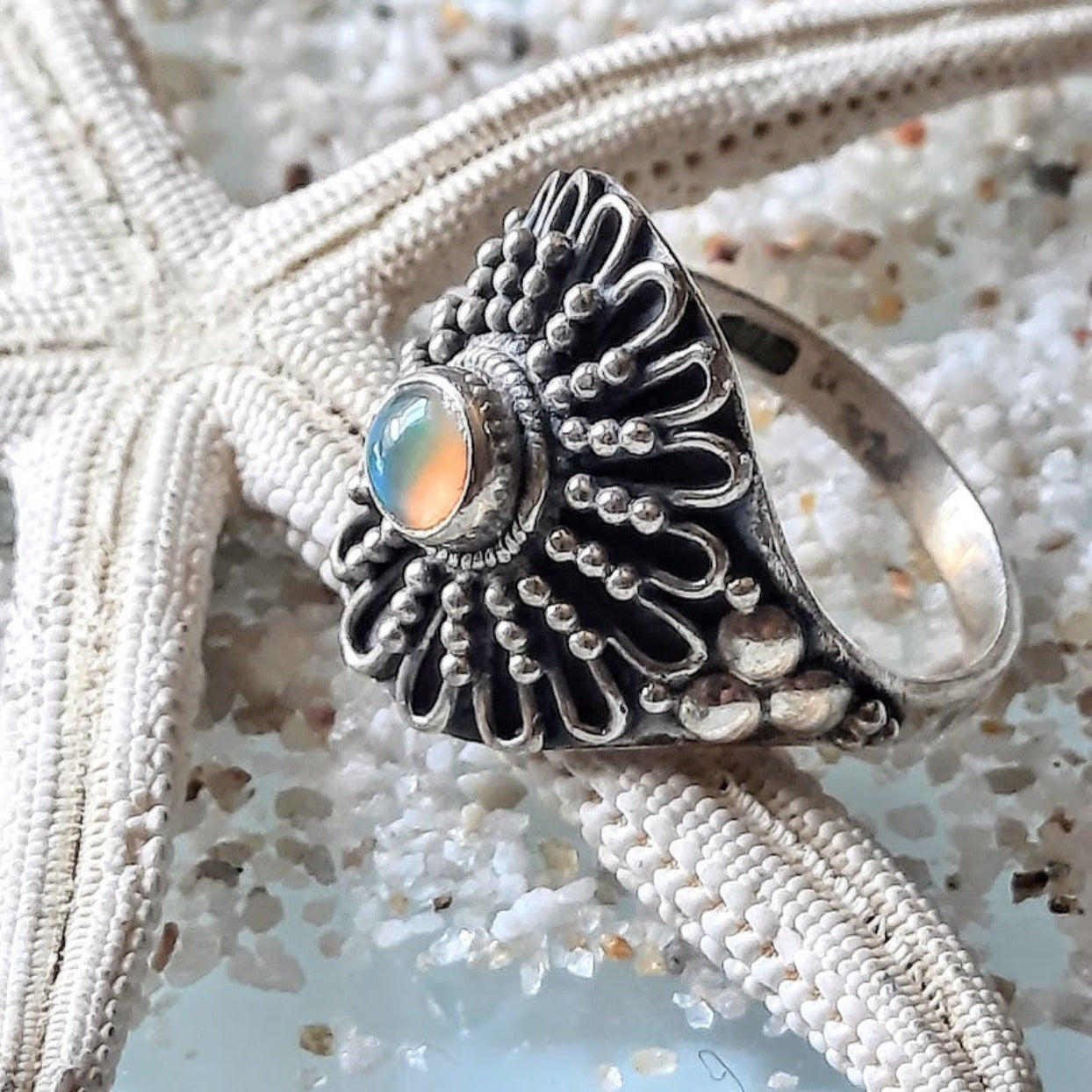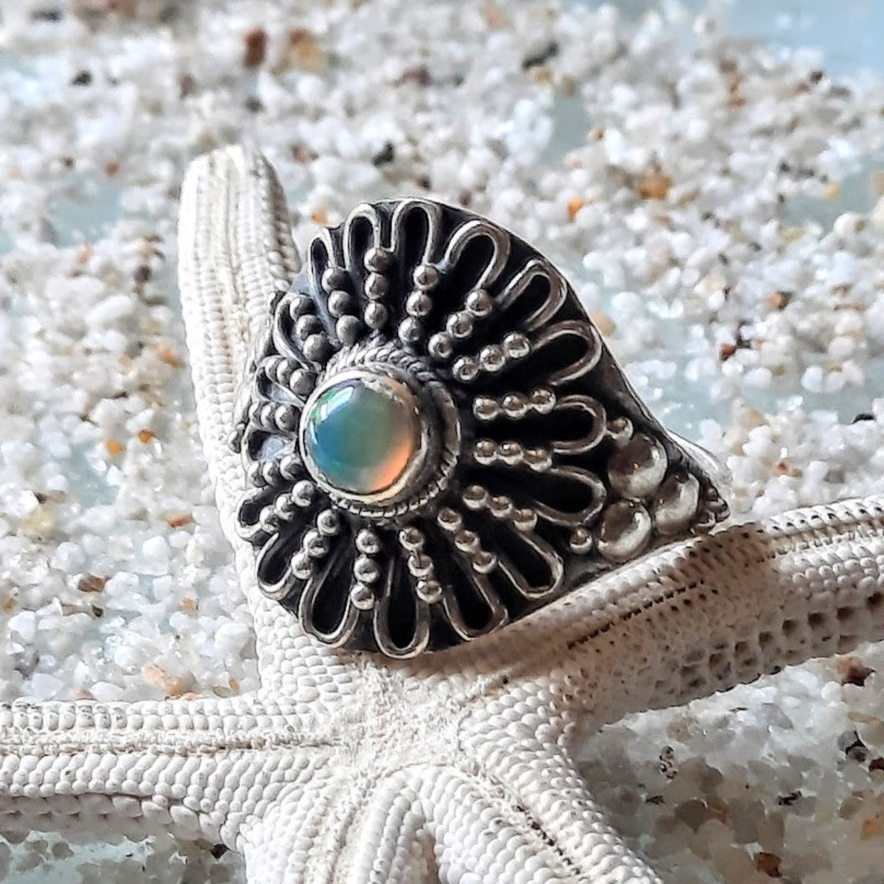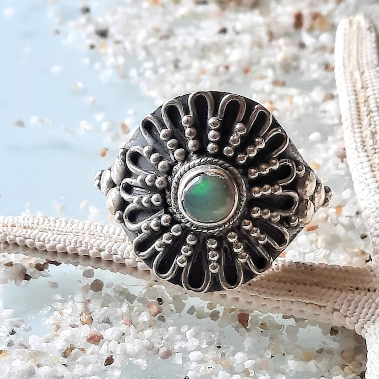 Opal Flower Ring 925 Sterling Silver Boho Ring