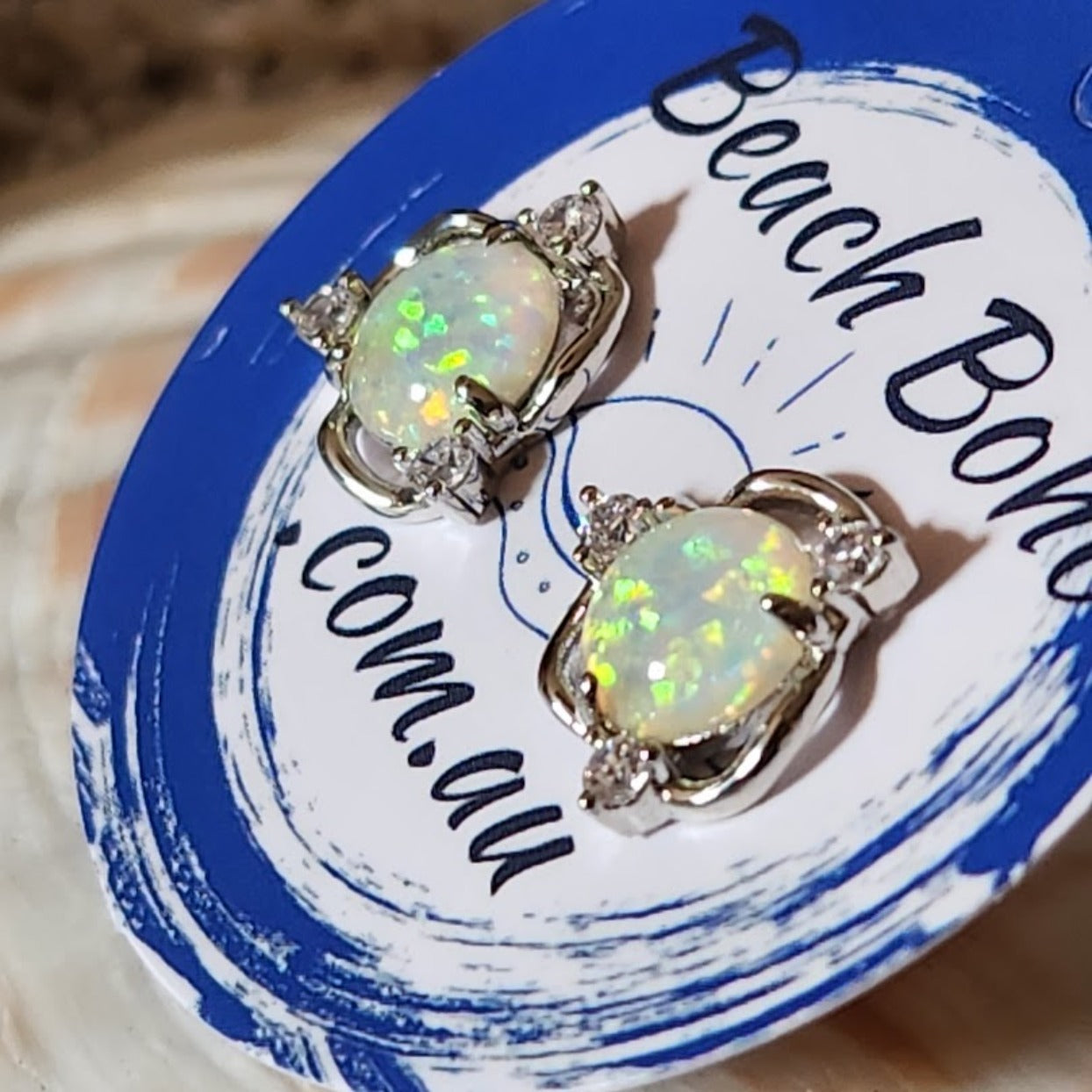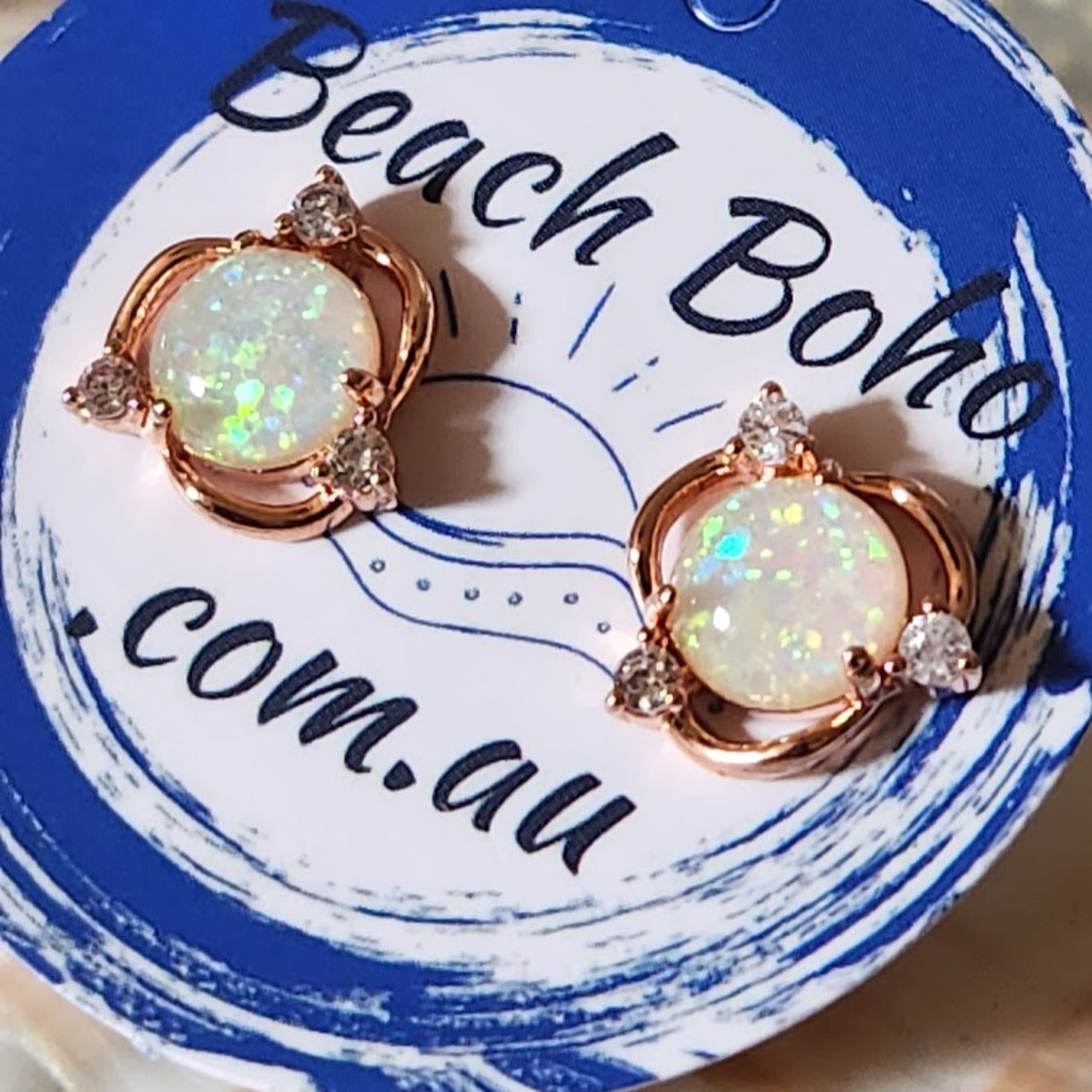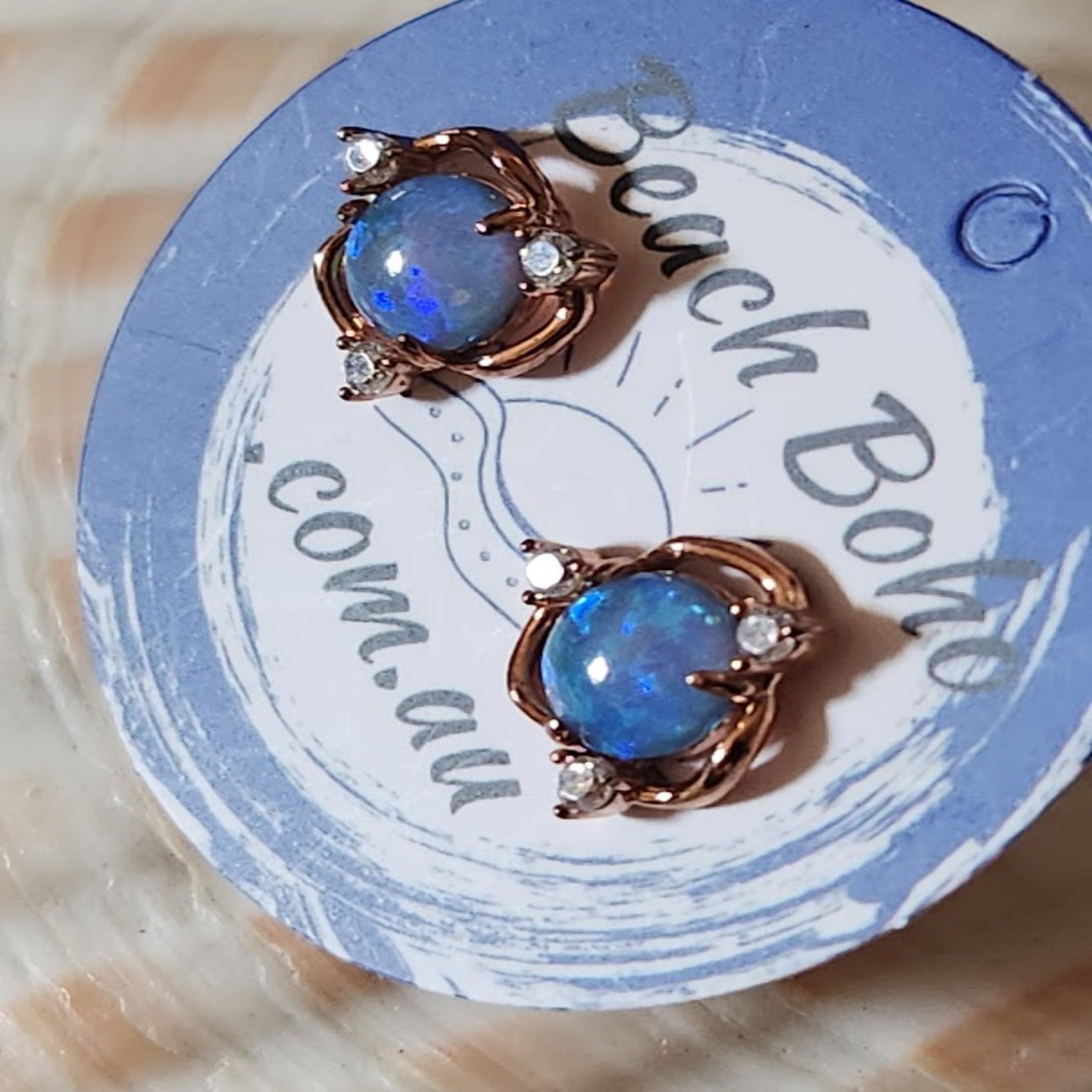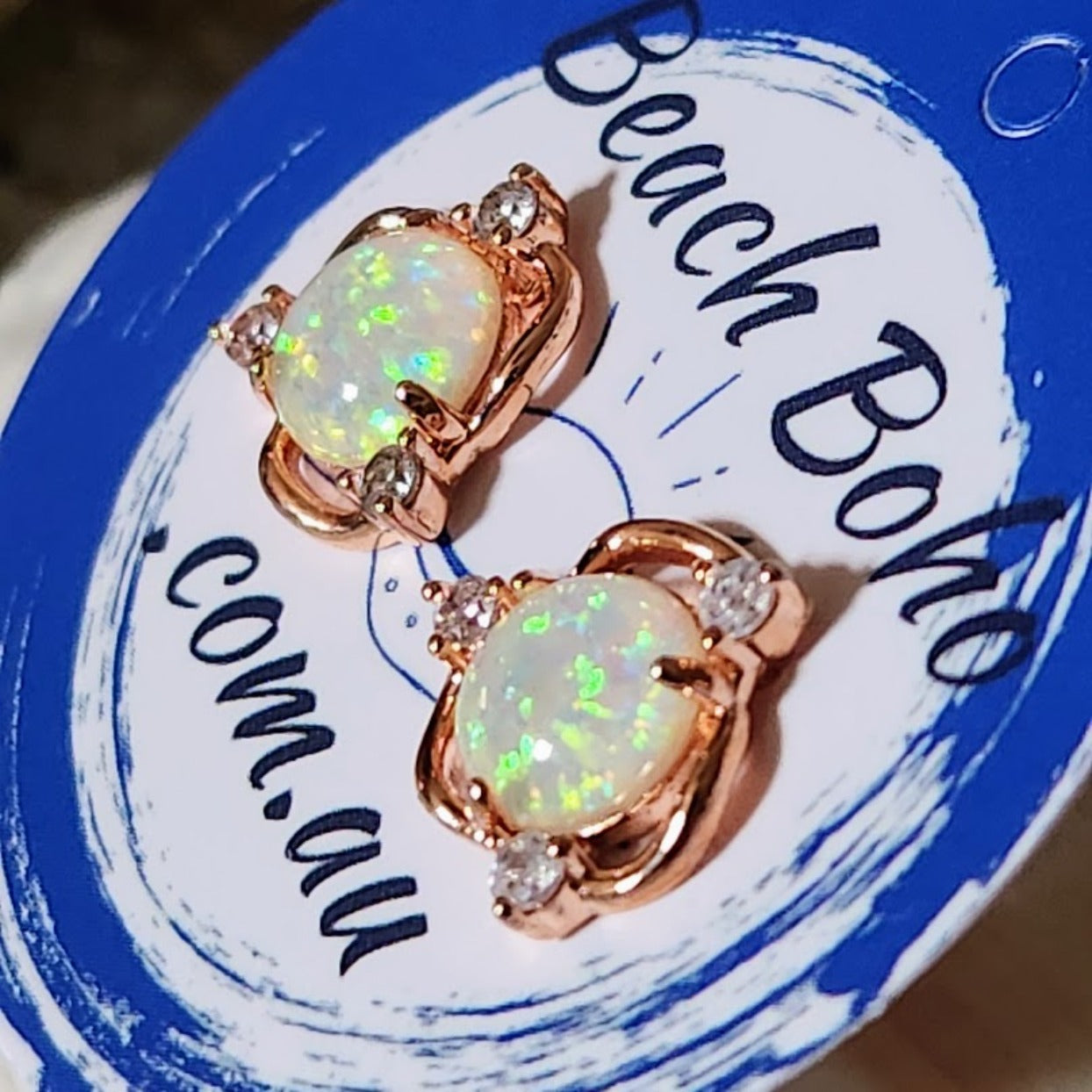 Opalite Blue or White Rose Gold together with Silver and White Opalite Cubic Zirconia Stud Earrings