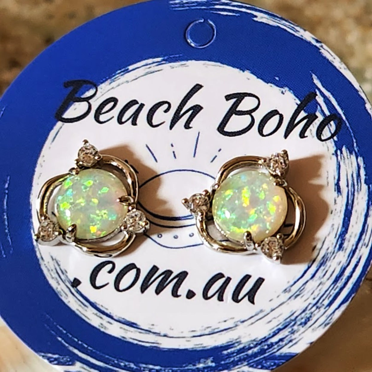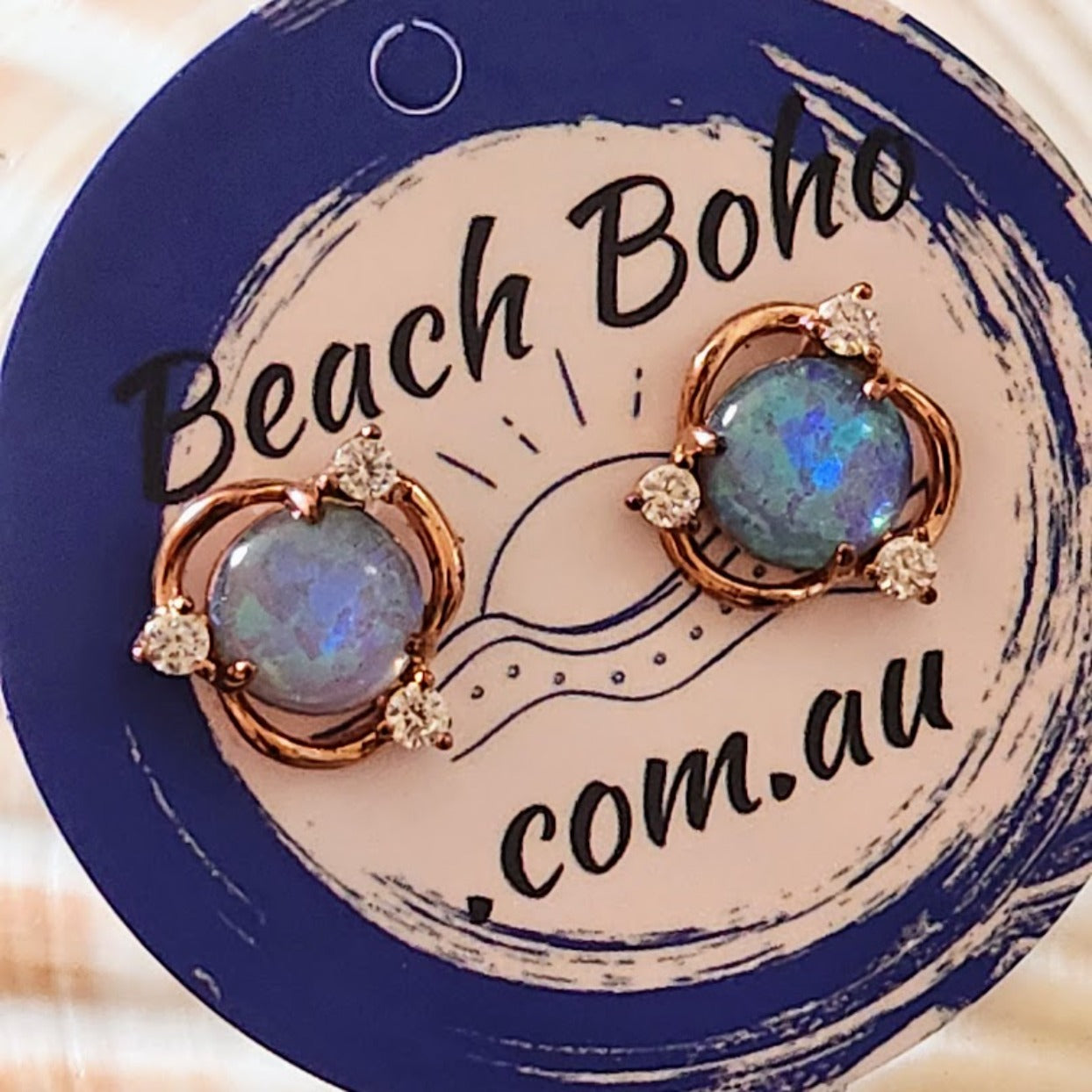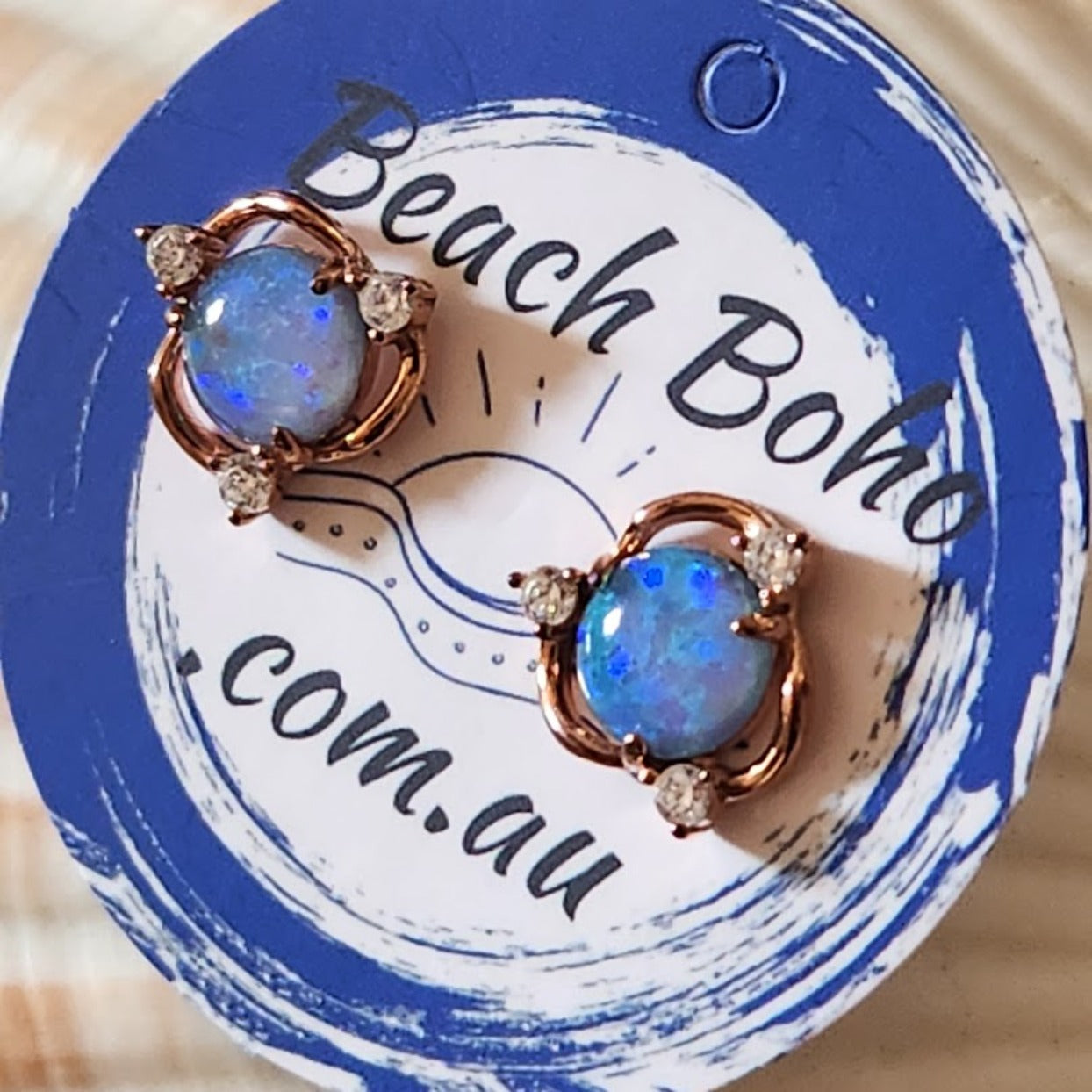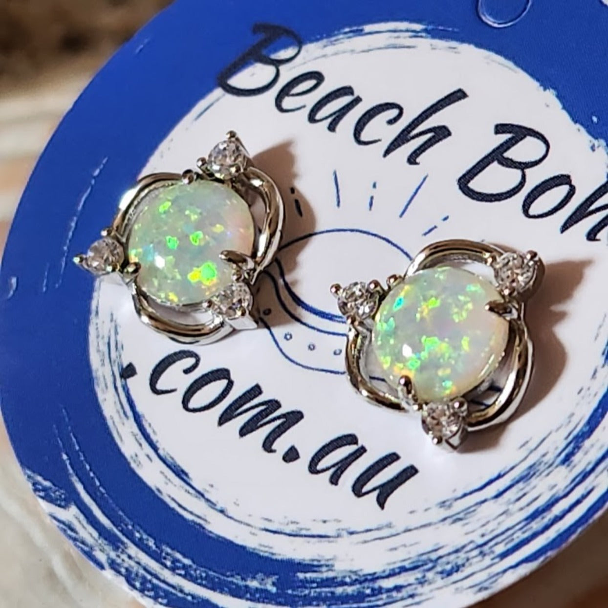 Opalite Blue or White Rose Gold together with Silver and White Opalite Cubic Zirconia Stud Earrings