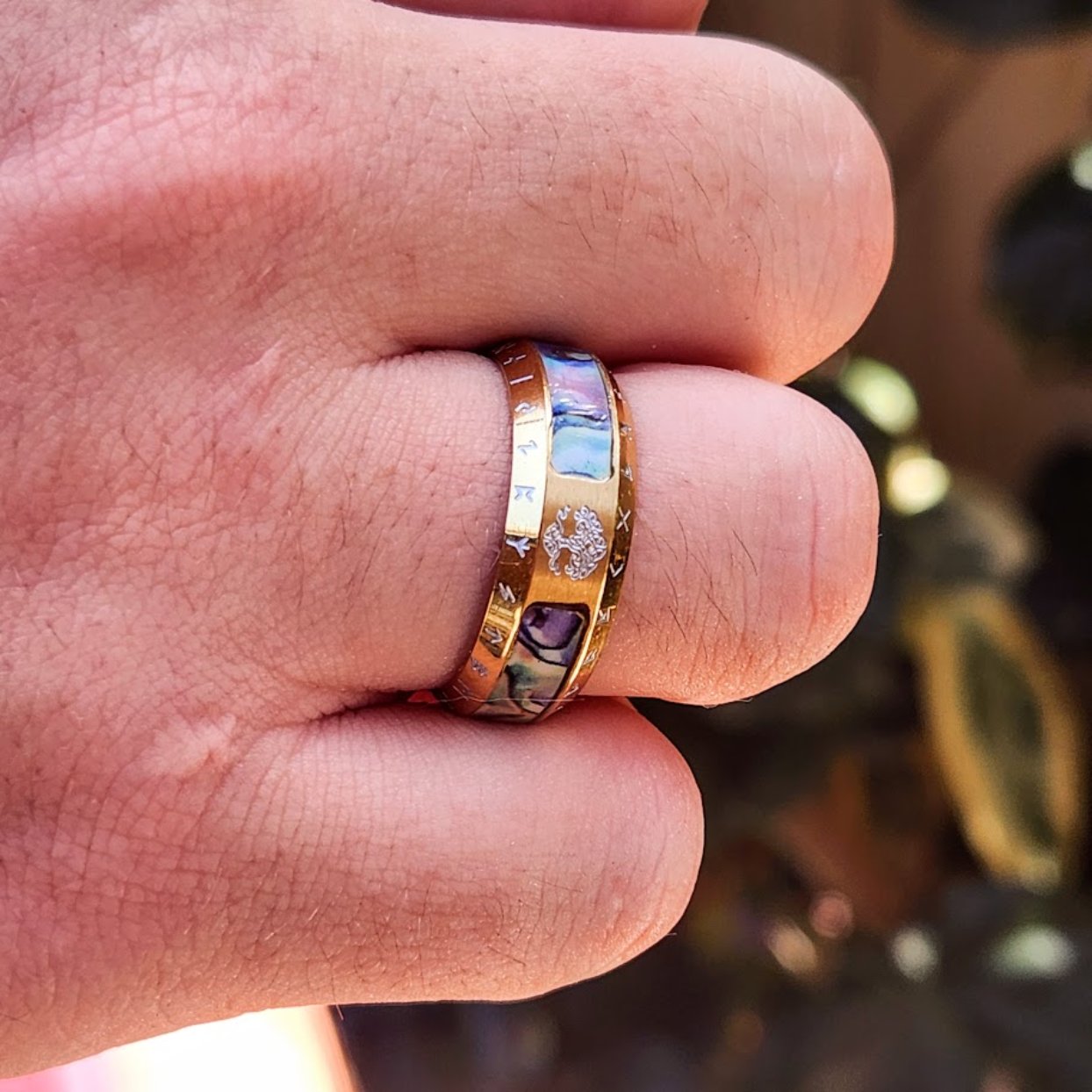 PAUA SHELL TREE OF LIFE RUNE WATERPROOF 18K GOLD OR SILVER MEN'S RING
