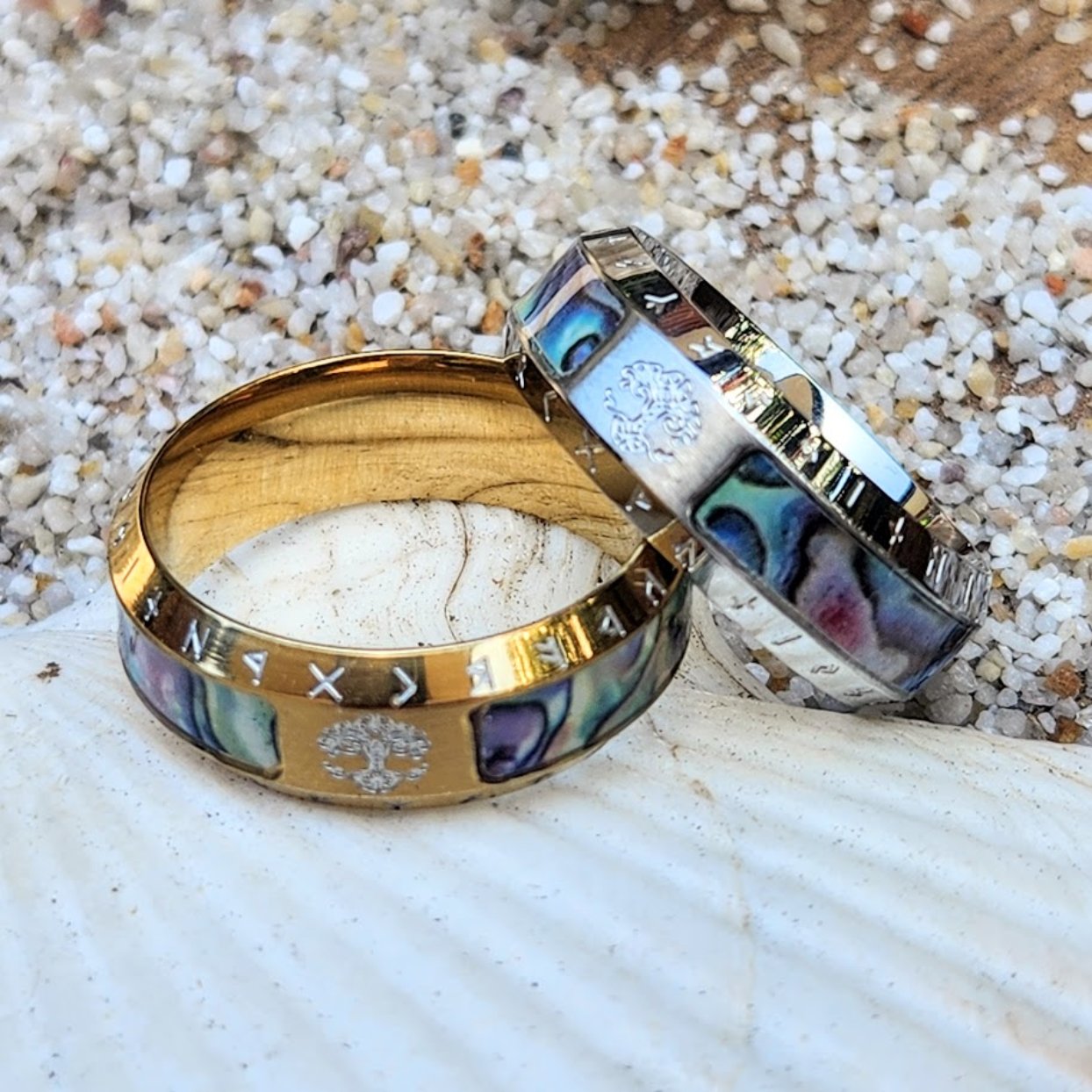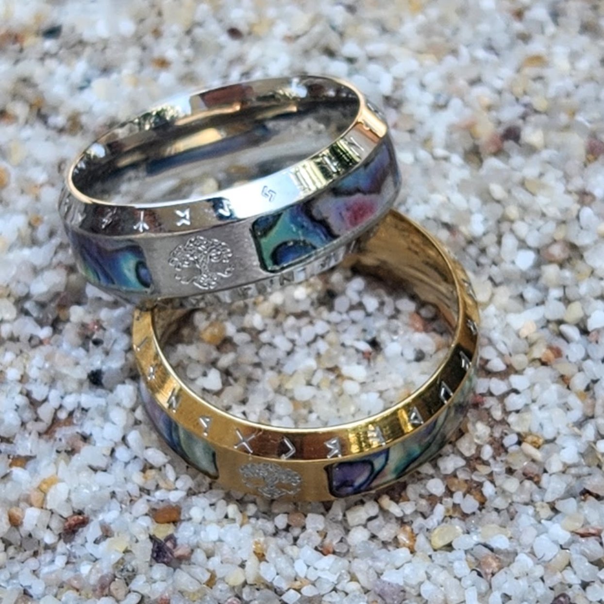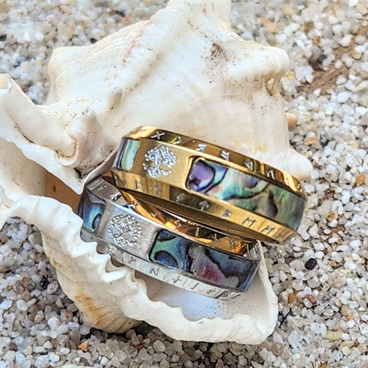 Paua Shell Tree of Life / with Rune engraving (Abalone) Inlay Titanium Waterproof Men's Ring