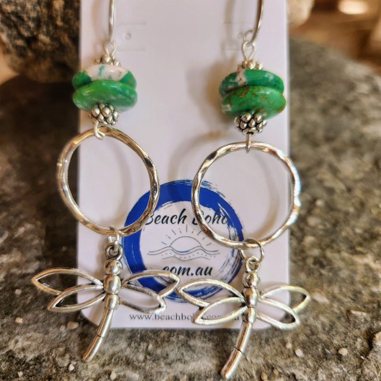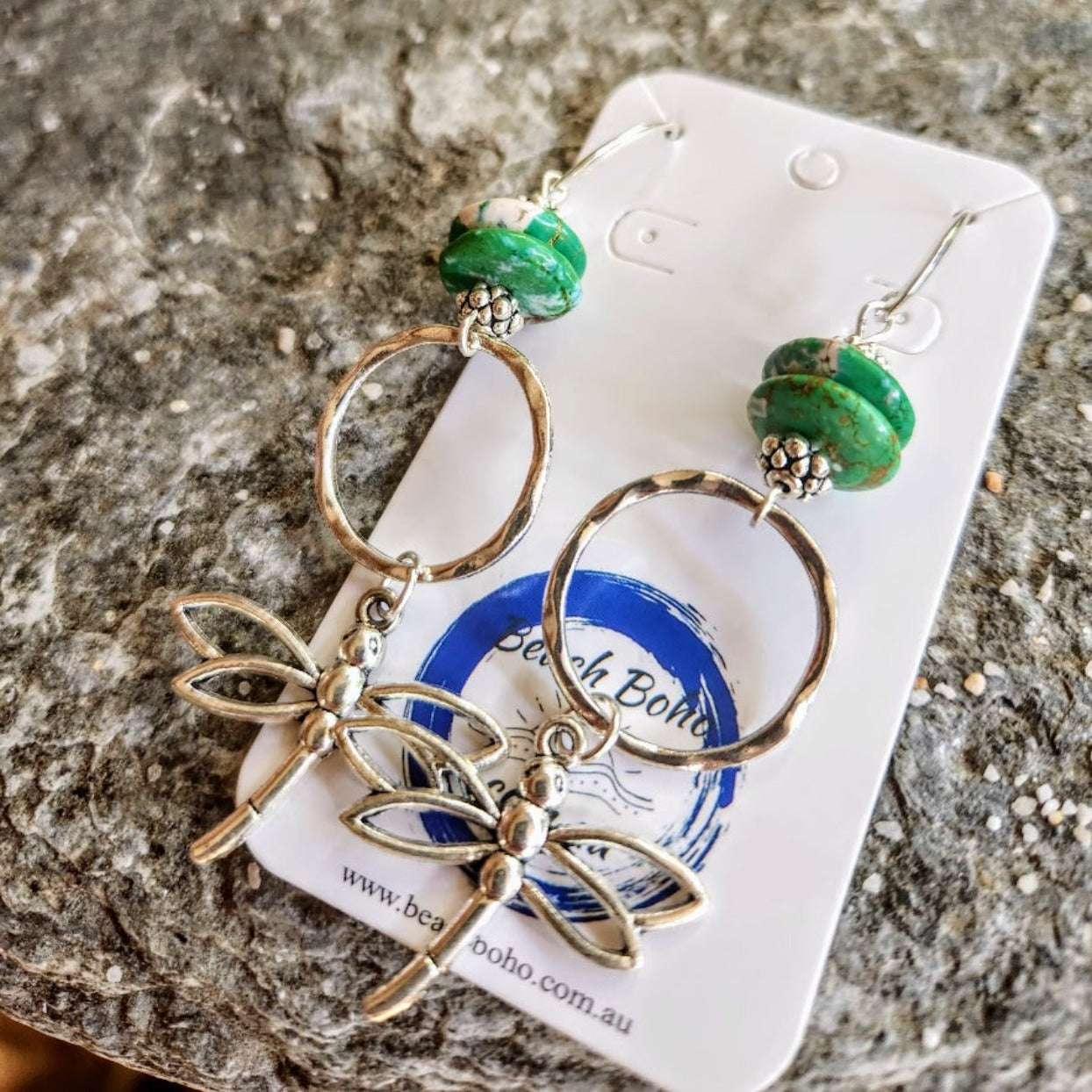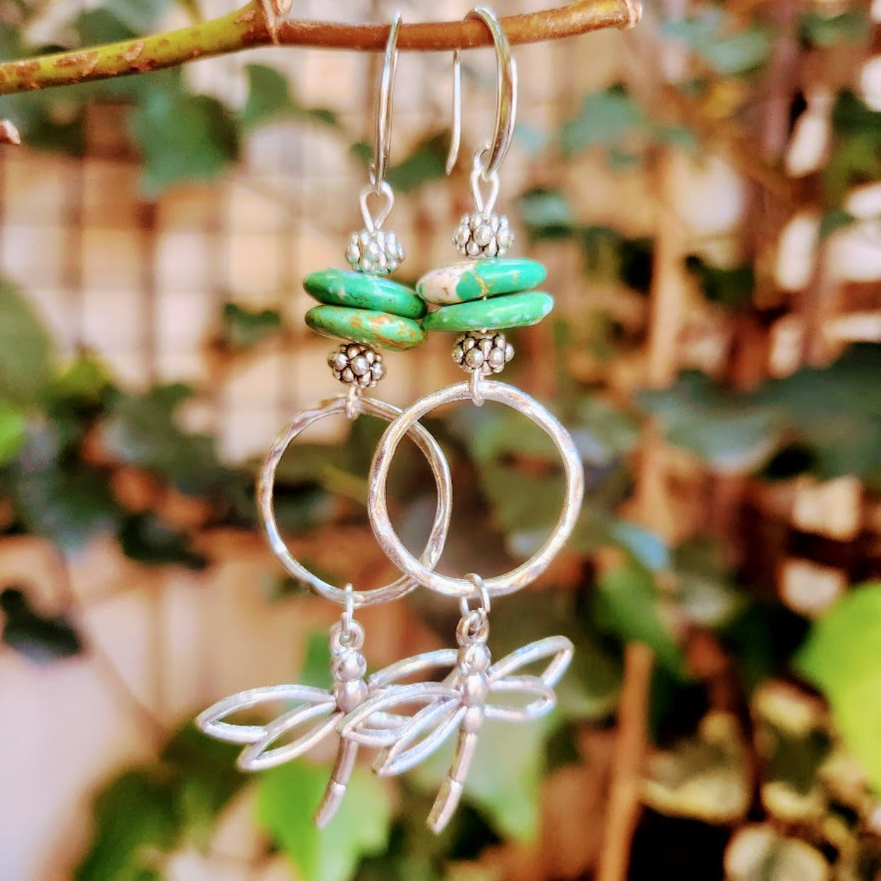 Handmade Silver Dragonfly Boho Turquoise Hook Dangles