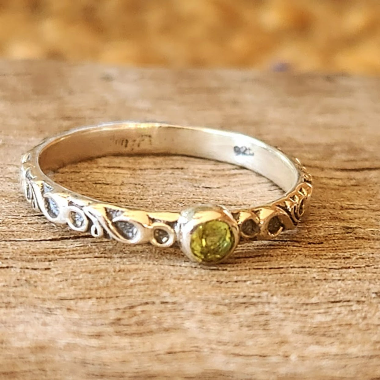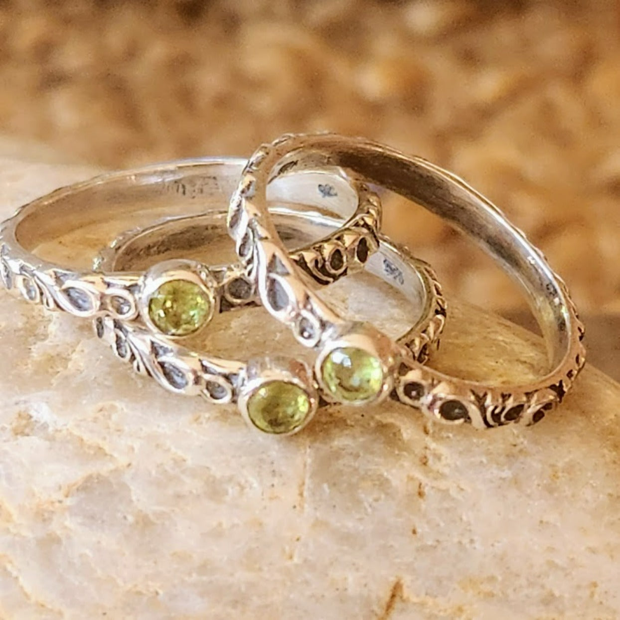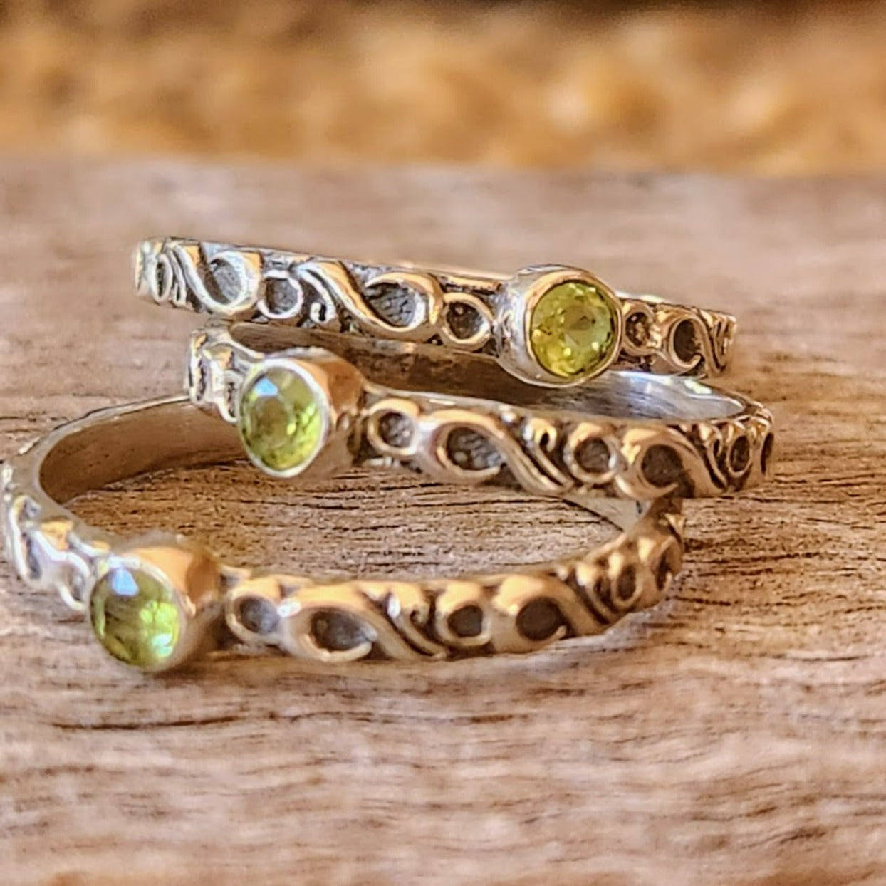 Peridot Crystal 925 Silver Waves Stacking Ring ... Beautiful Wave Detailing around each ring