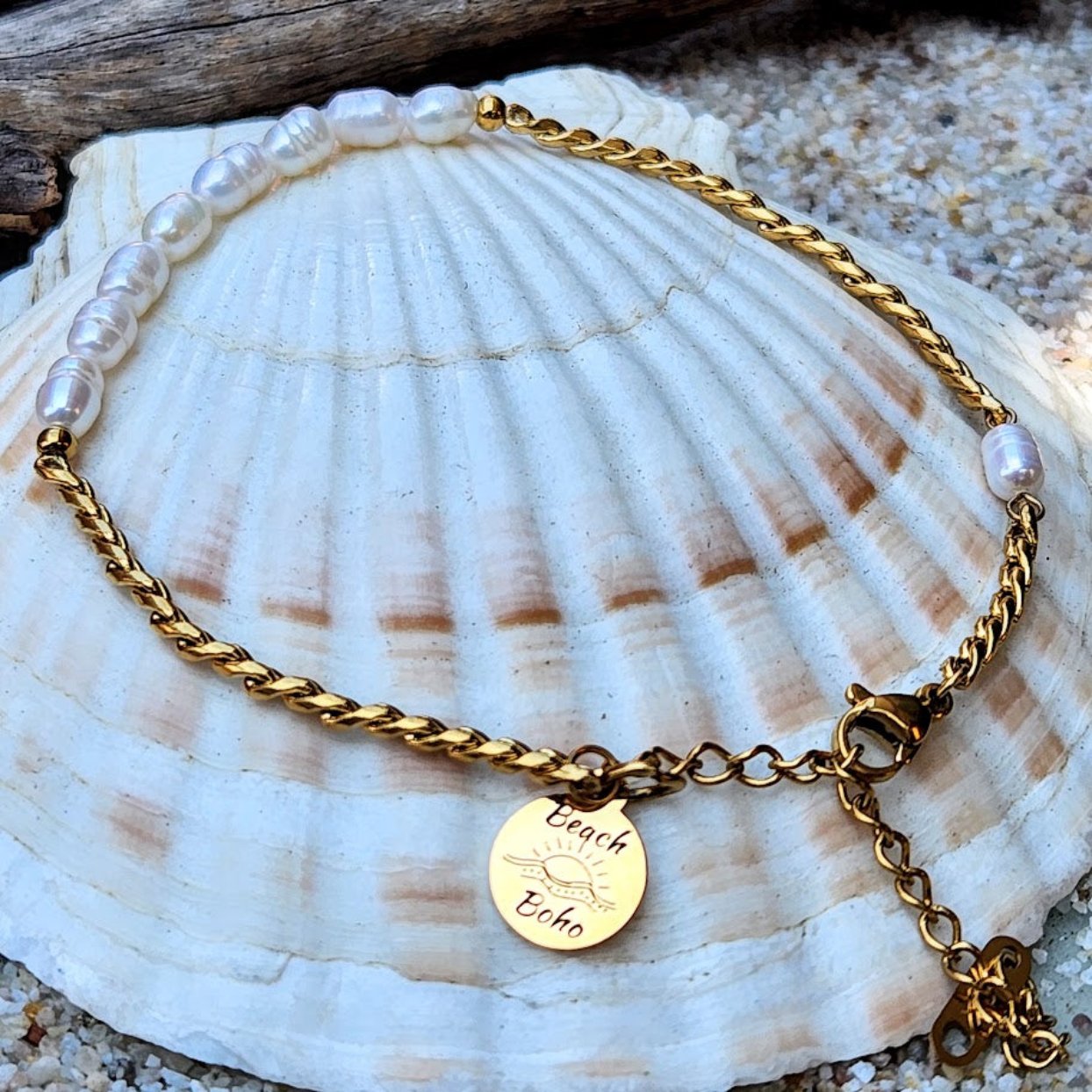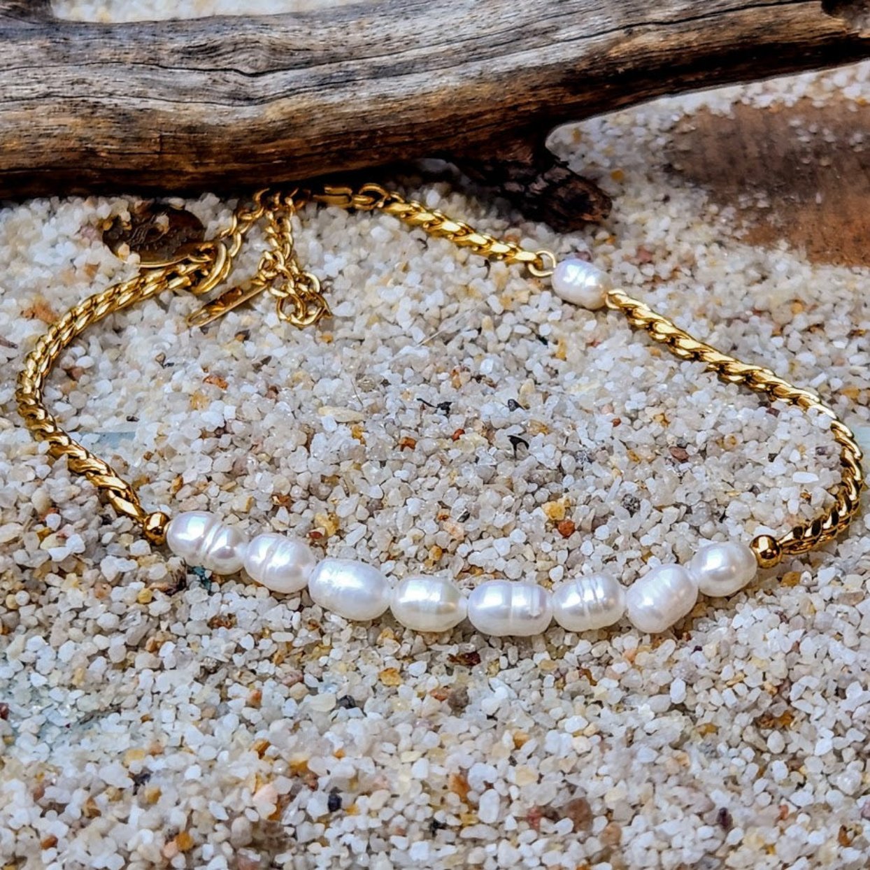 PRETTY BAROQUE ANKLET - PETITE PEARL WATERPROOF 18K GOLD ANKLET