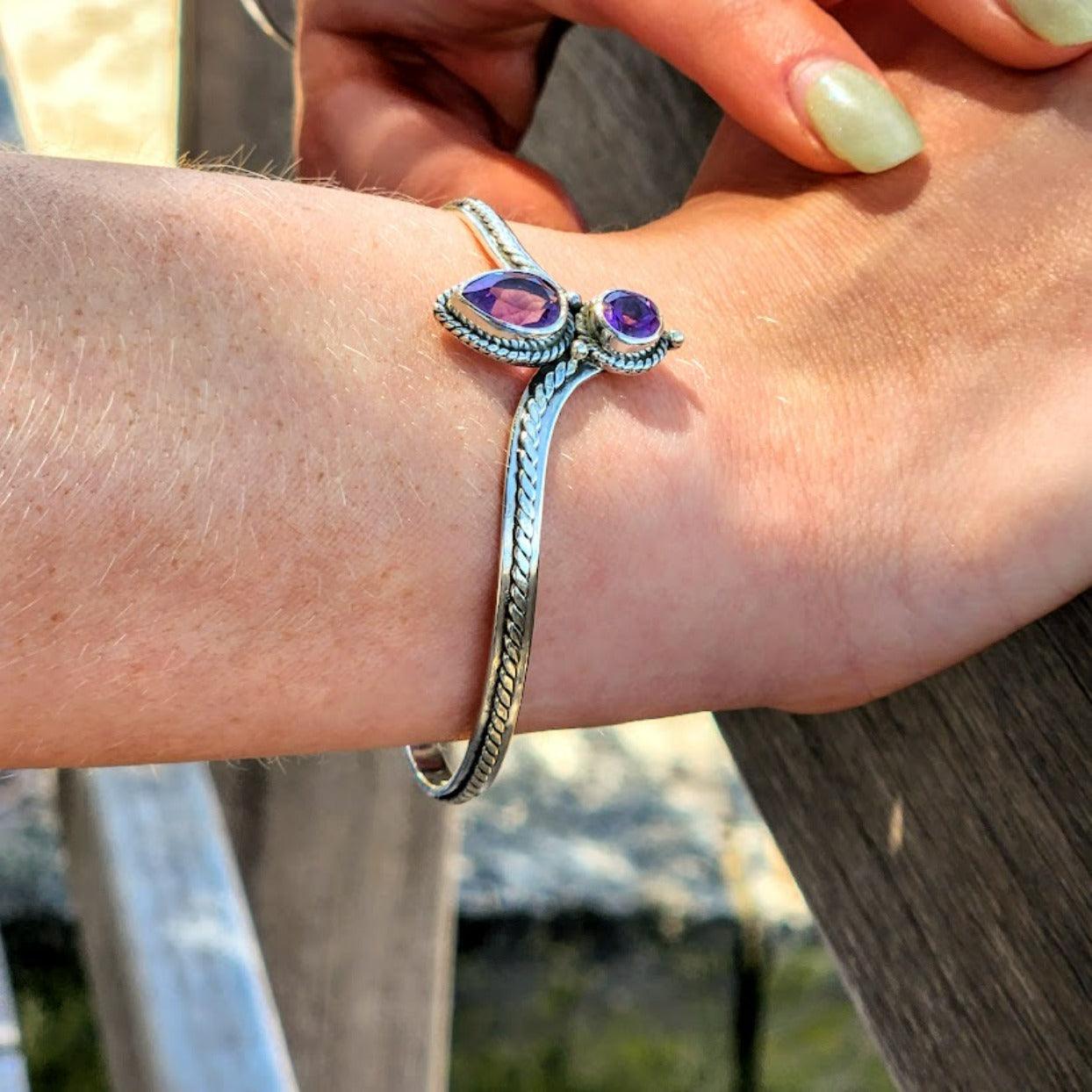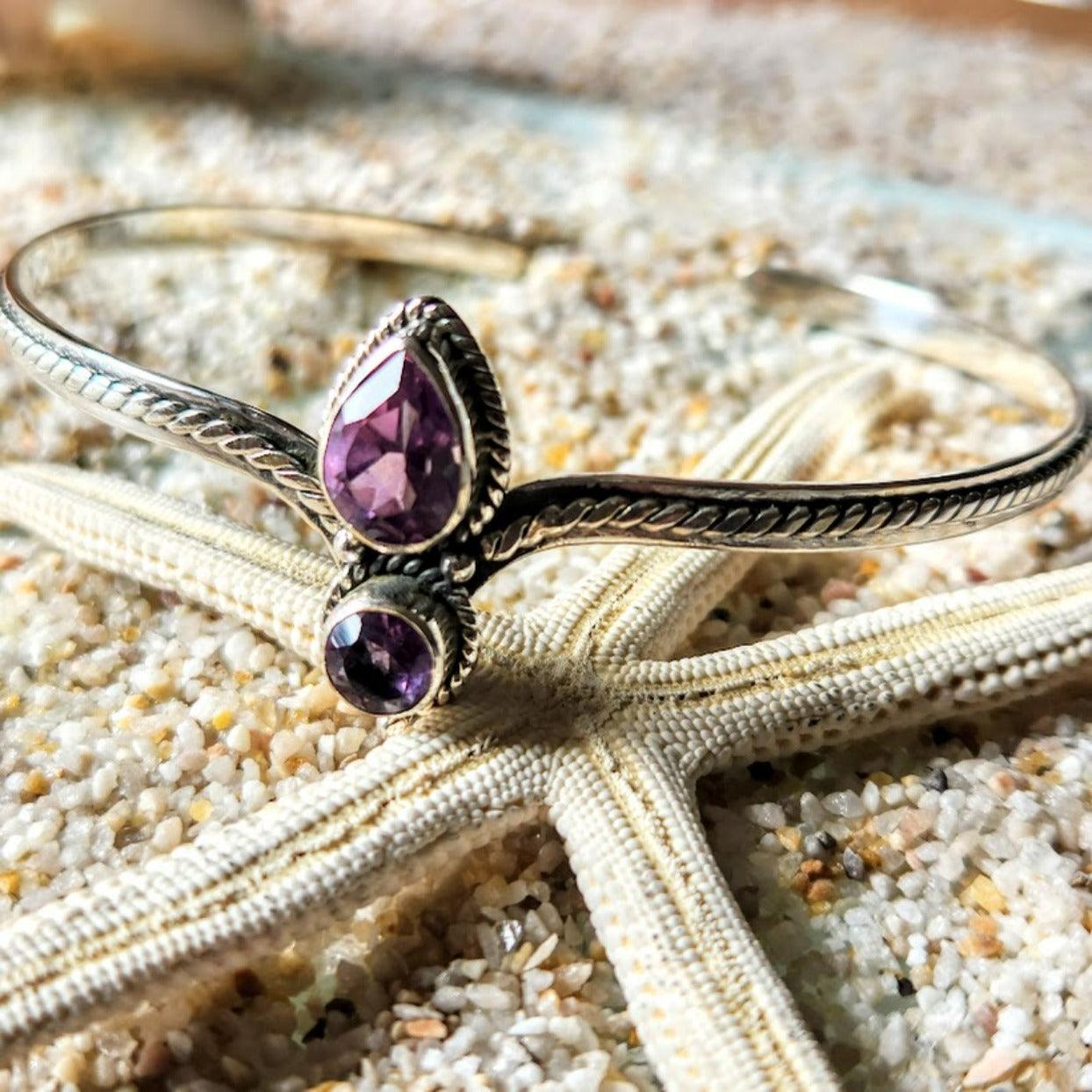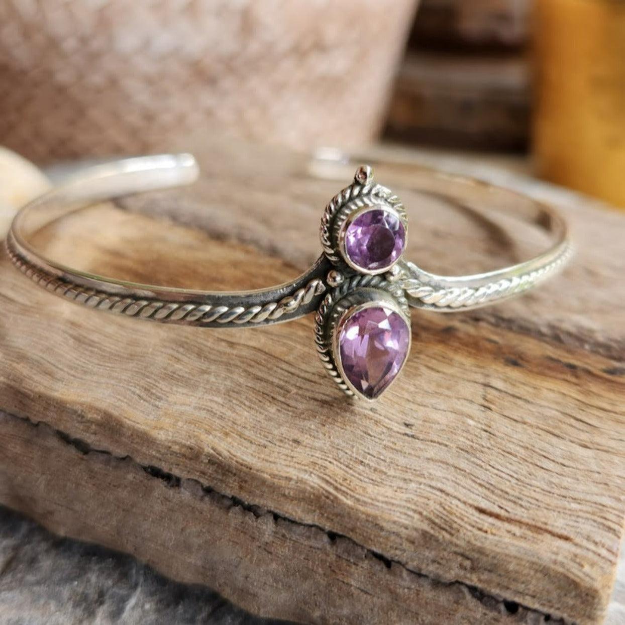 Handmade Teardrop & Round Crystal Amethyst 925 Sterling Silver Bracelet