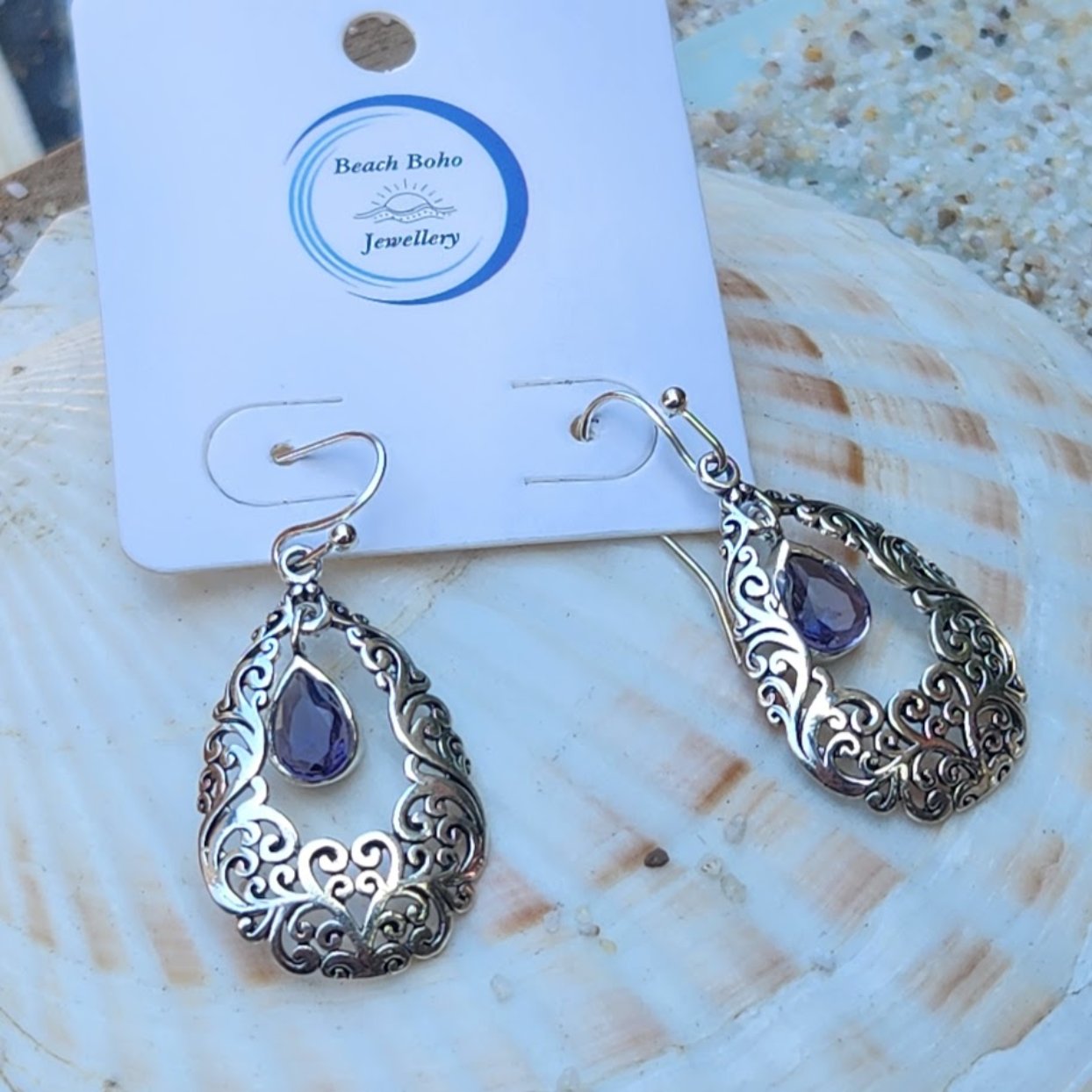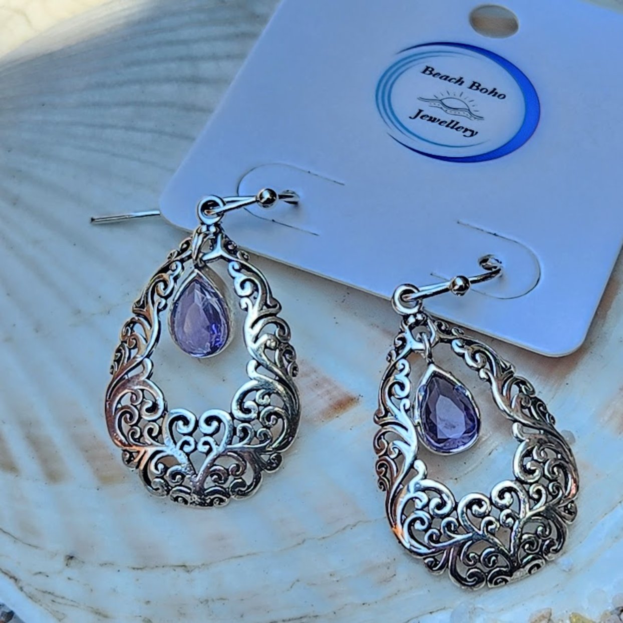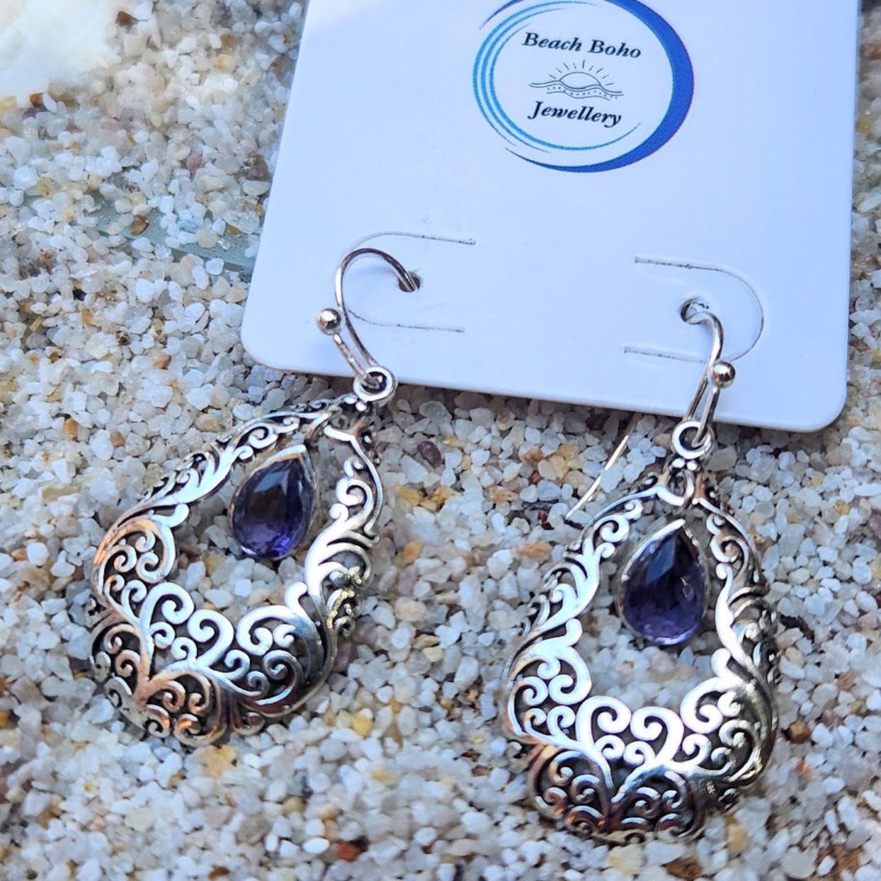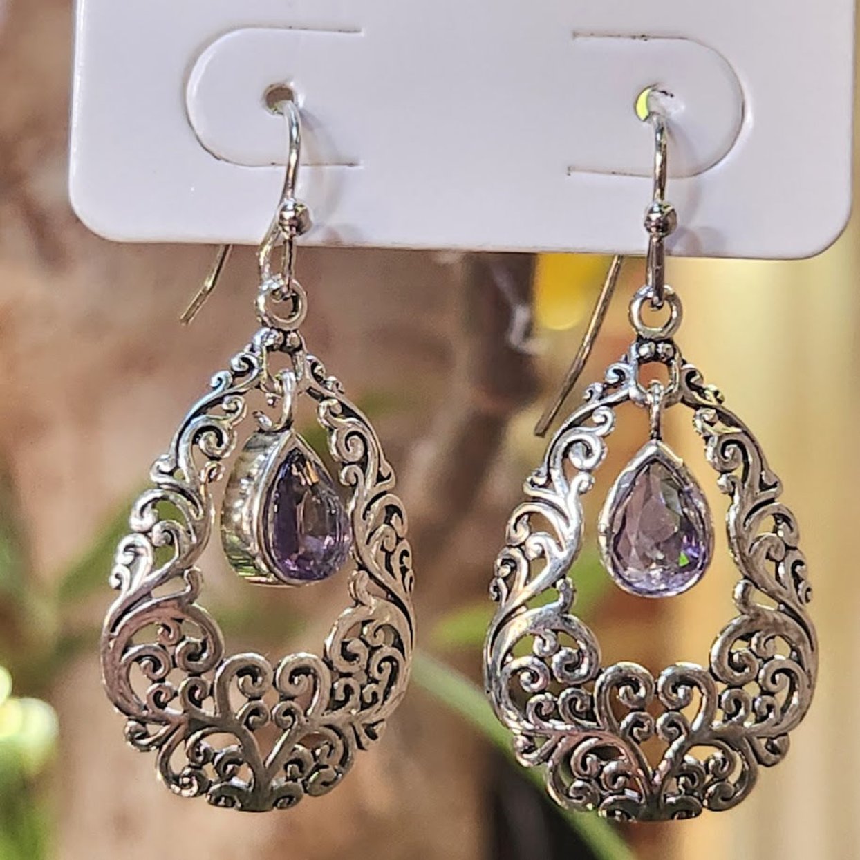 AMETHYST FILIGREE SILVER DROPS - SILVER EARRINGS