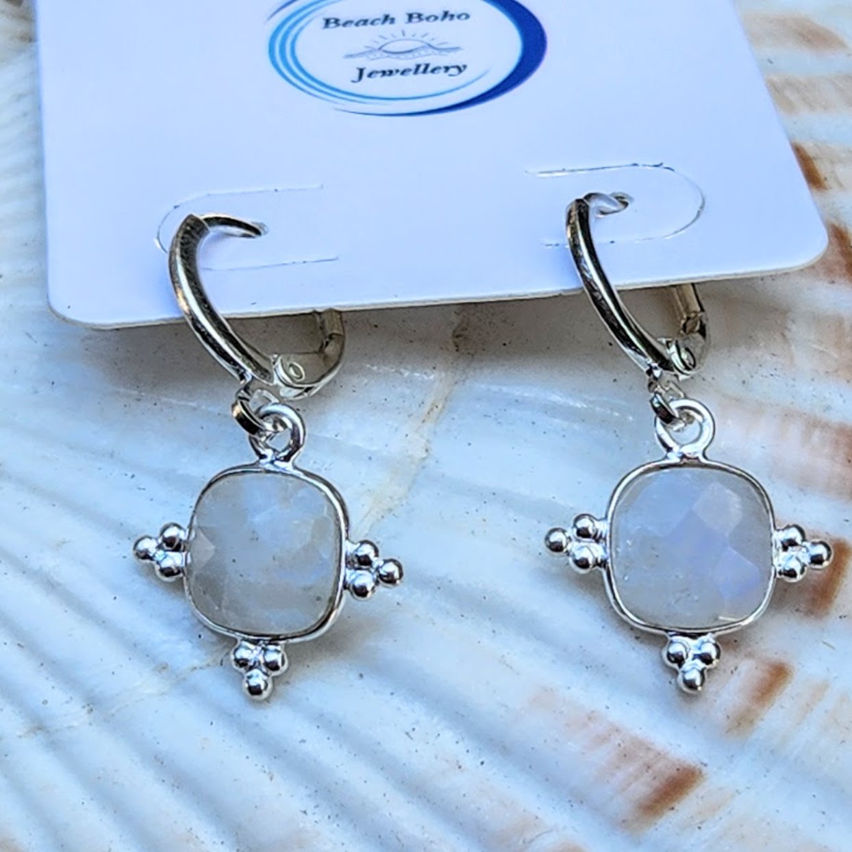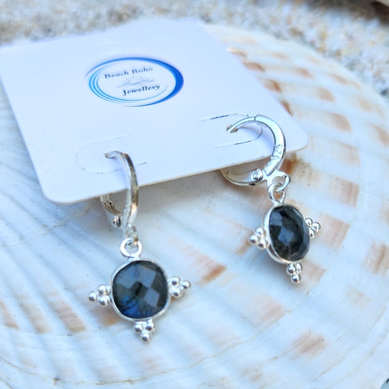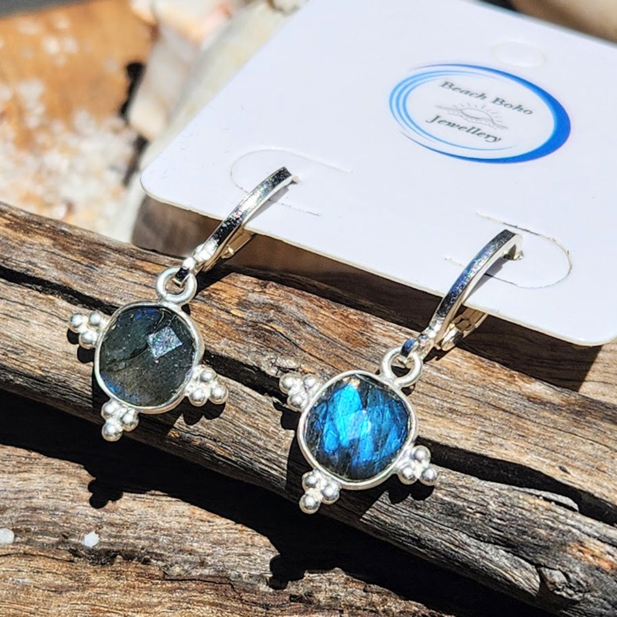 Labradorite Or Moonstone 925 Sterling Silver Handcrafted Close Hook Earrings